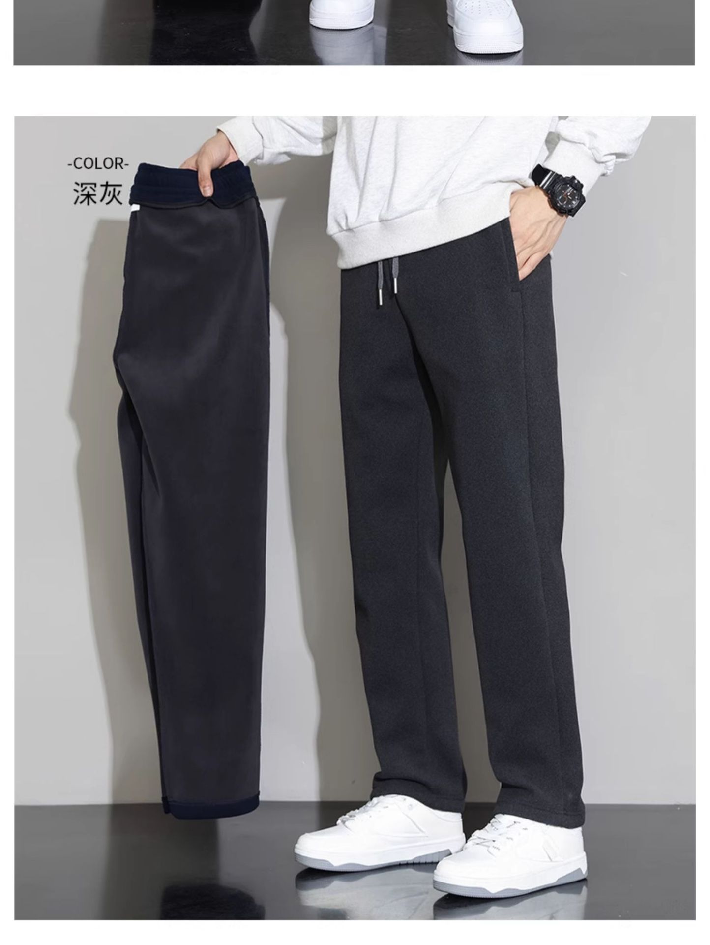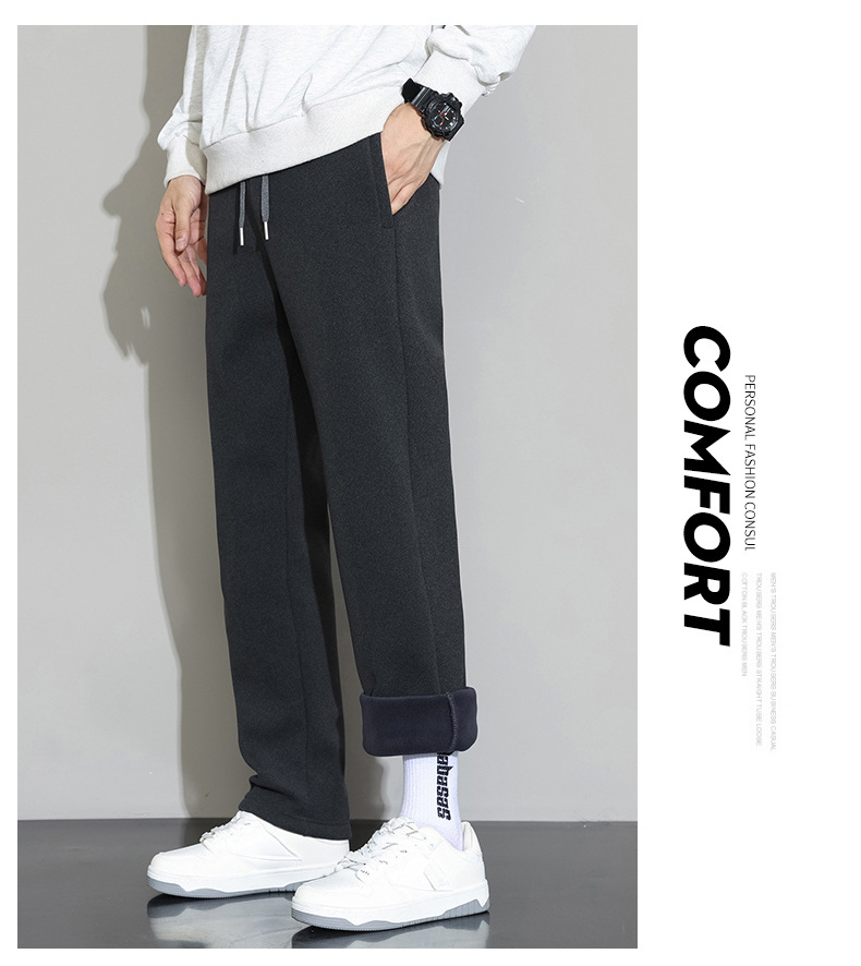 NASA 블랙 캐주얼 바지 남자 겨울 2024 새로운 패션 브랜드 기모 두꺼운 긴 바지 느슨한 스트레이트 바지