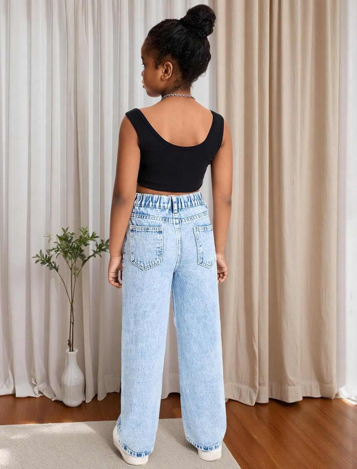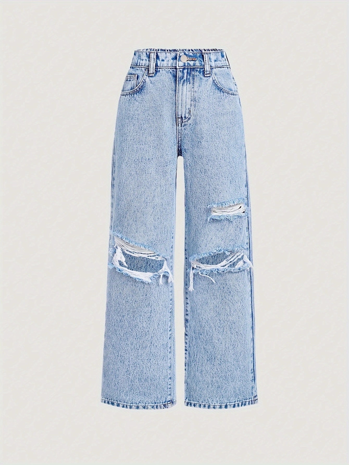 국경을 넘는 아마존 소원 독립 스테이션 10대 소녀 2021 새로운 루즈한 찢어진 디자인 와이드 팬츠스토어 가기