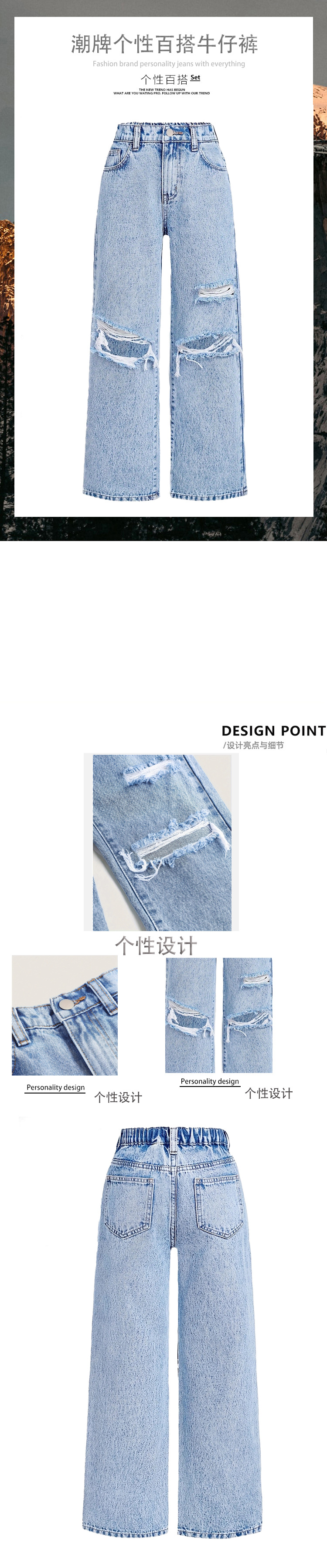 국경을 넘는 아마존 소원 독립 스테이션 10대 소녀 2021 새로운 루즈한 찢어진 디자인 와이드 팬츠