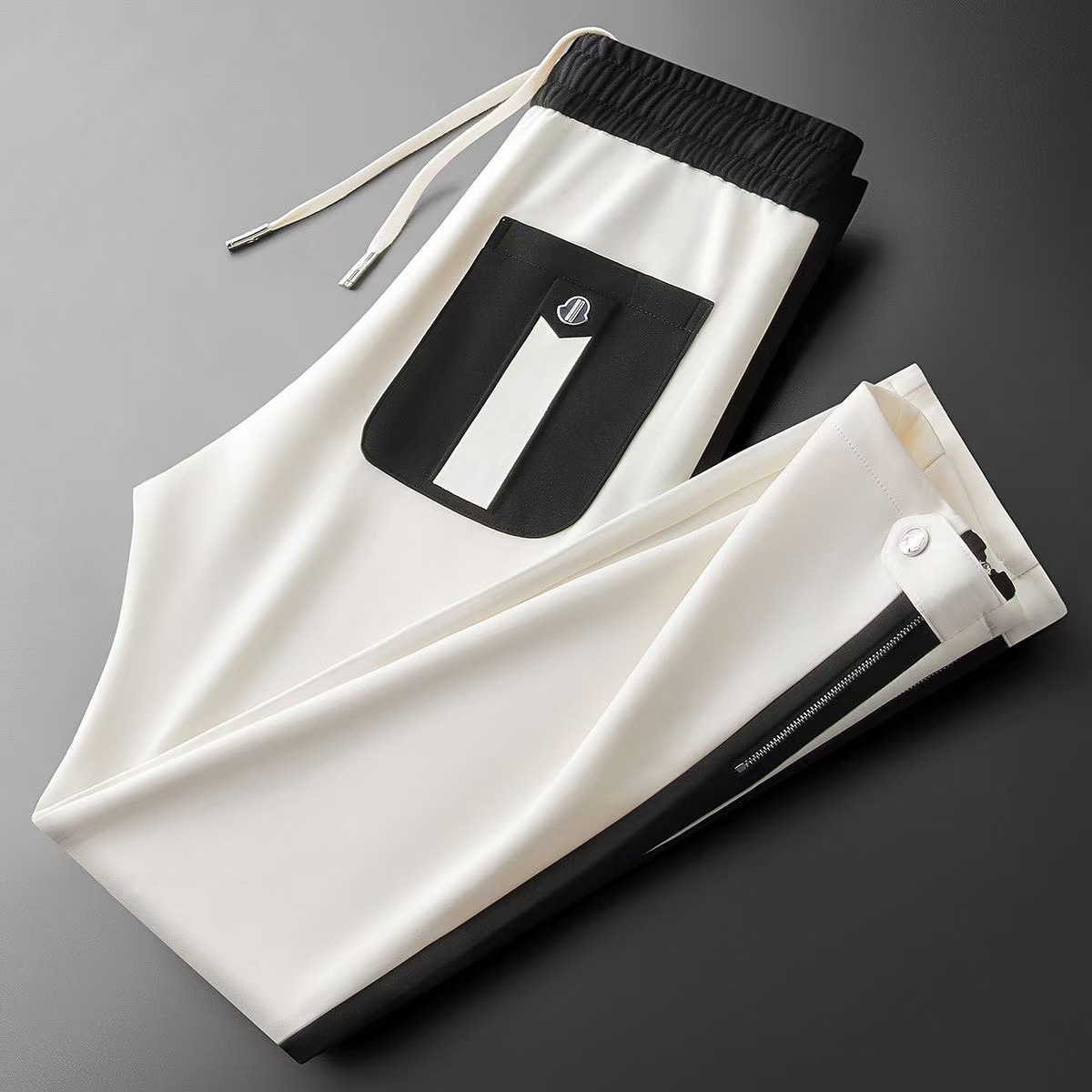 가벼운 럭셔리 가을과 겨울 패션 트렌디 한 브랜드 땀 바지 대조적 인 색상 바느질 공간 면화 바지 남자 스트레이트 스포츠 땀 바지 캐주얼 바지