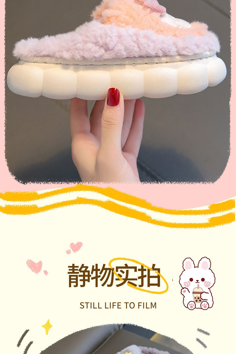 어린이 면 슬리퍼 겨울 2024 새로운 실내 소녀 울 슬리퍼 가방 소년 아기 미끄럼 방지 따뜻한 홈 신발스토어 가기