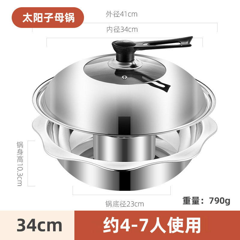 2~3인용 가정용 스테인리스 중간냄비, 상업용 특수 중간 원형 냄비
