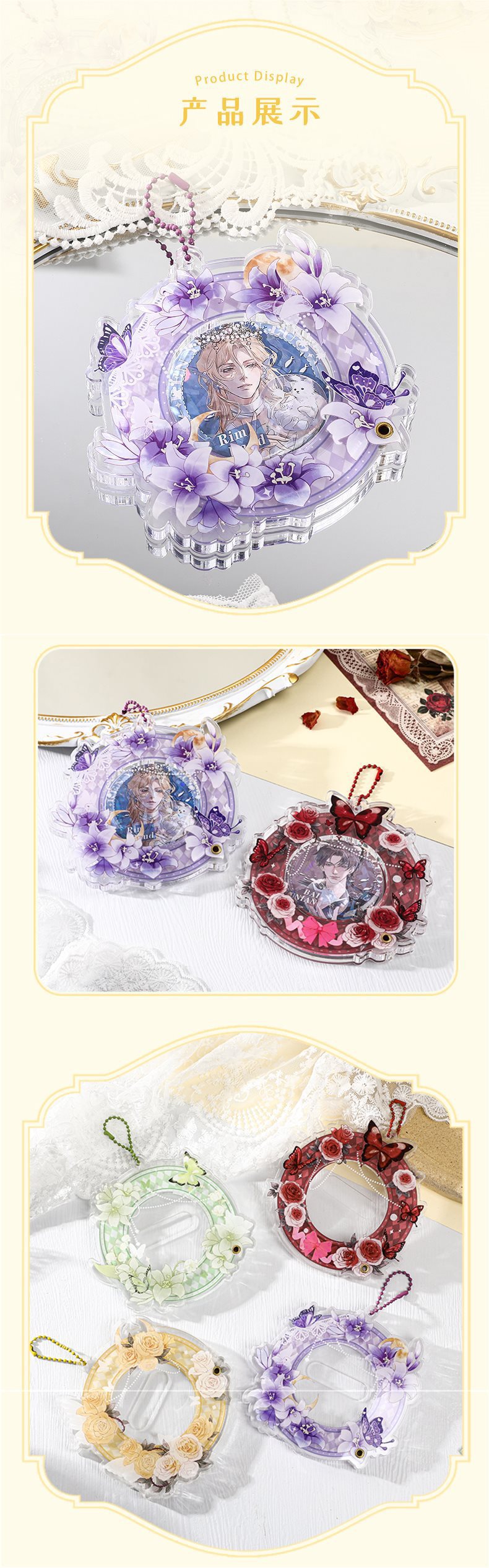 HHM108 꽃 원래 골동품 58mm Yum 벽돌 Yum Toca 벽돌 아크릴 밸리 뷰티 애니메이션 배지 디스플레이
