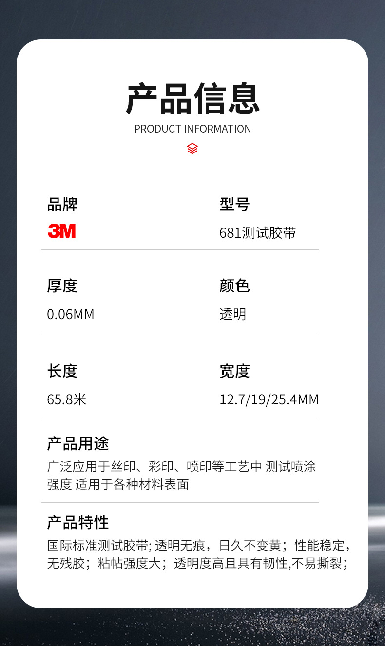 3M681 스카치 투명 테스트 테이프 실리콘 웨이퍼 세라믹 유리 코팅 잉크 접착 백 테스트 필름
