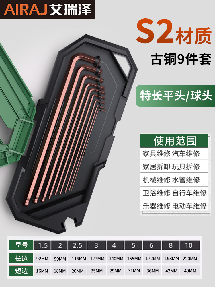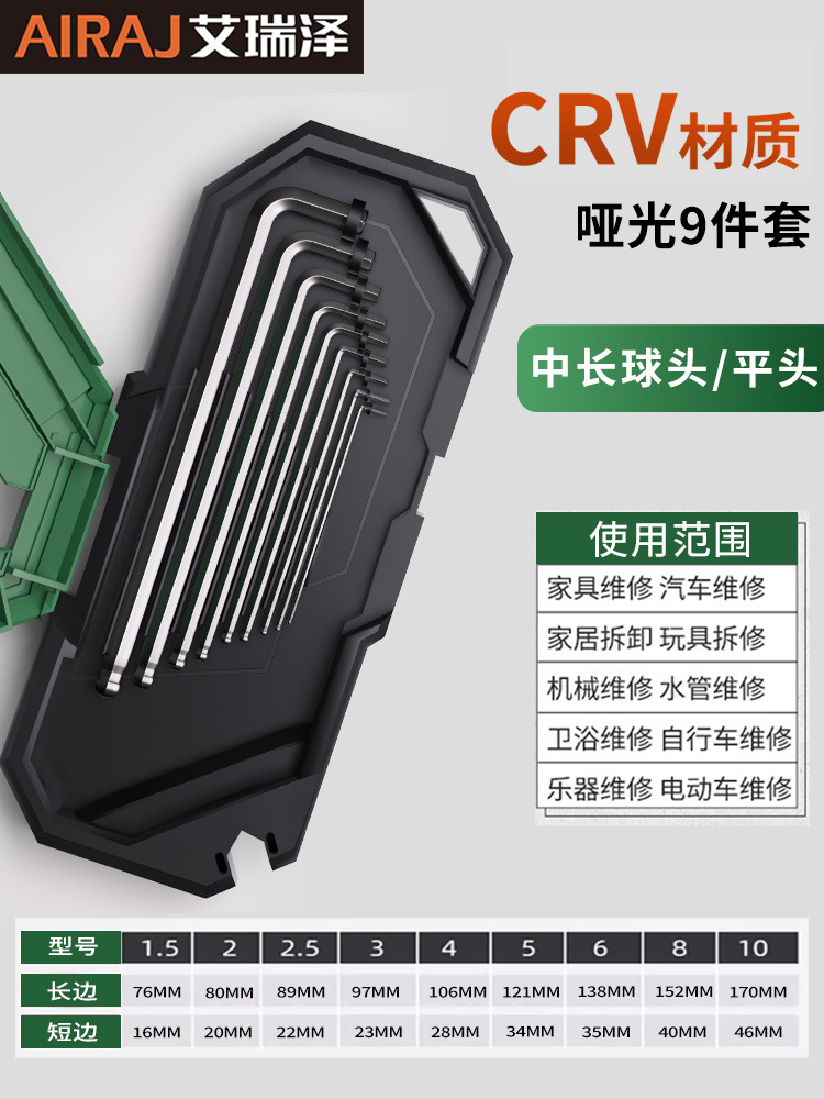 아이루이지 육각 렌치 세트, 무광택 플랫 헤드 볼 헤드, 플러스 연장형 육각 렌치 세트스토어 가기