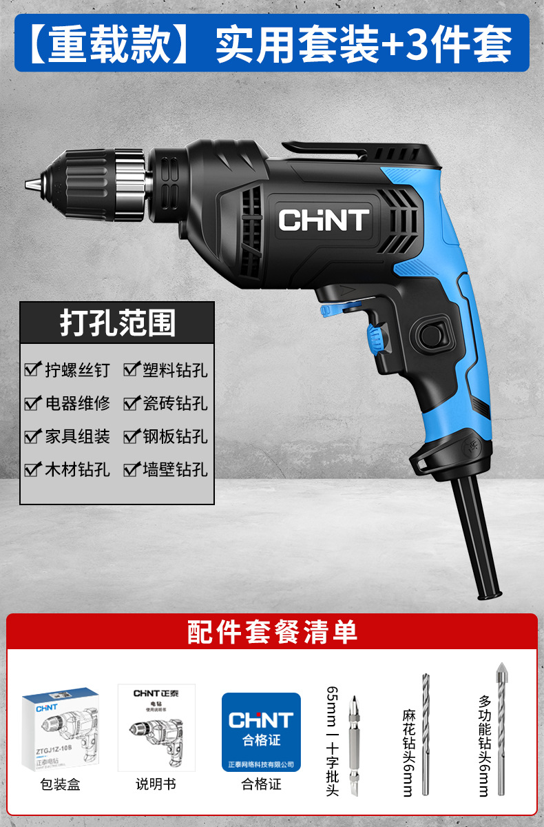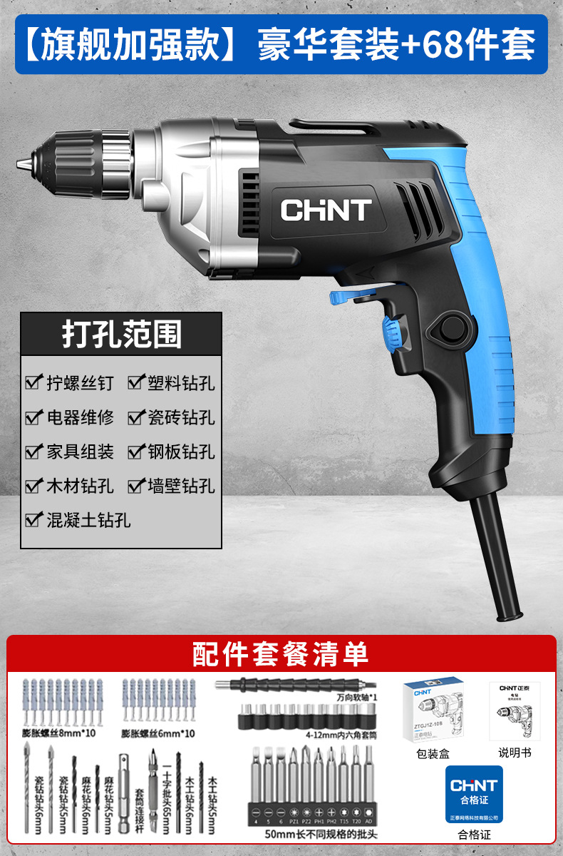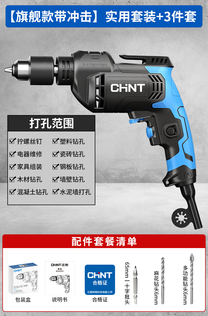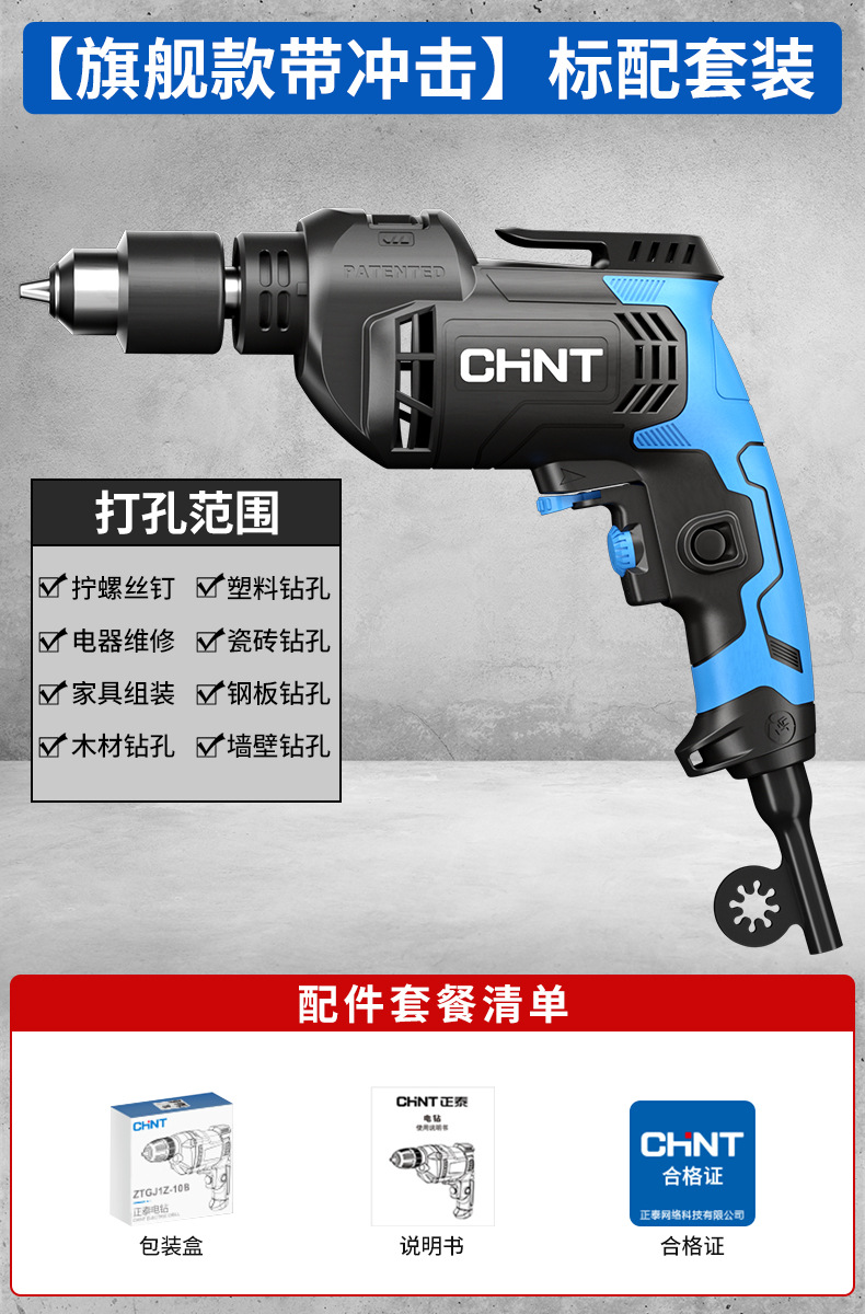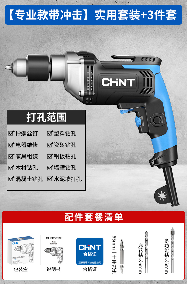 Chint 손 전기 드릴 가정용 다기능 220v 전기 스크루 드라이버 도구 전기 손 건 드릴 드라이버 충격 전기 드릴