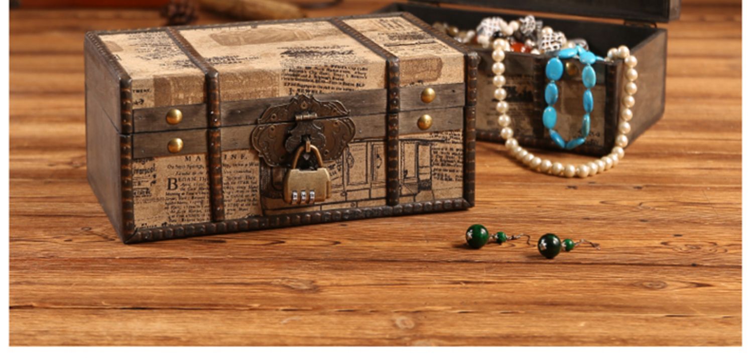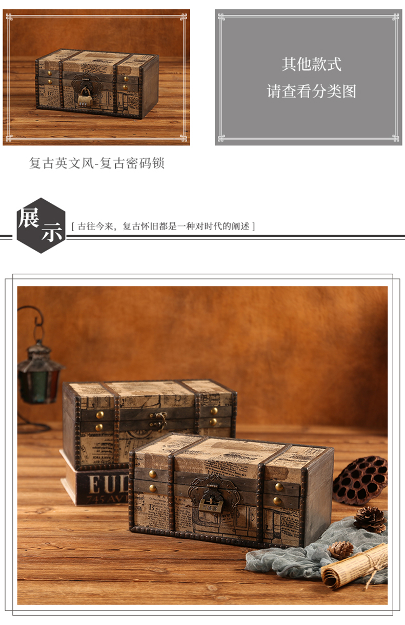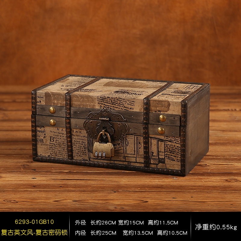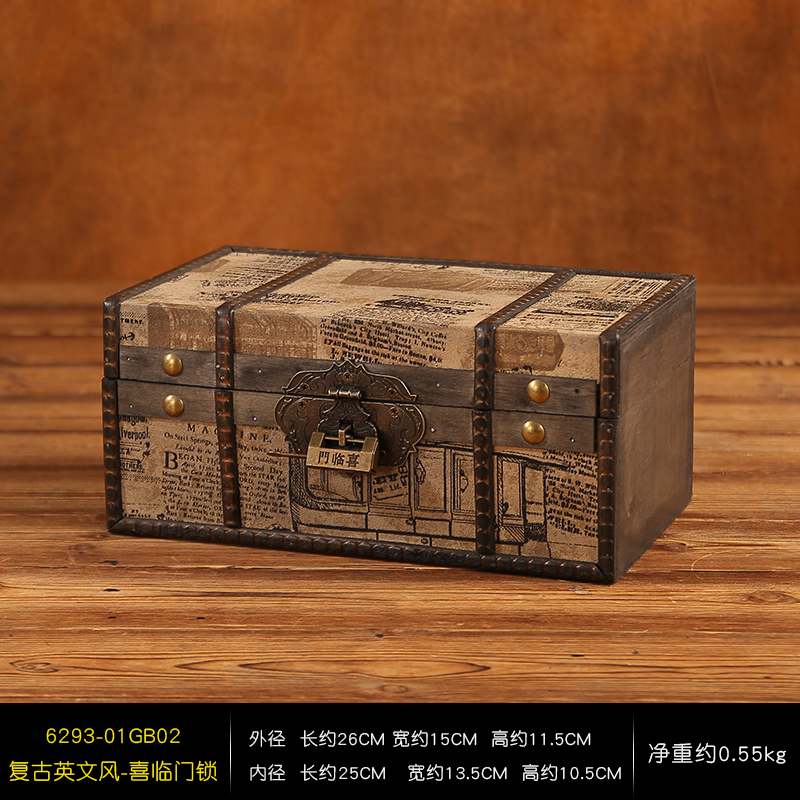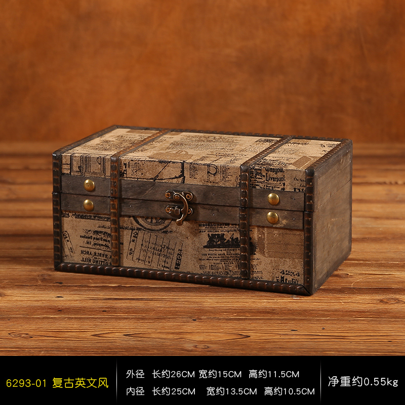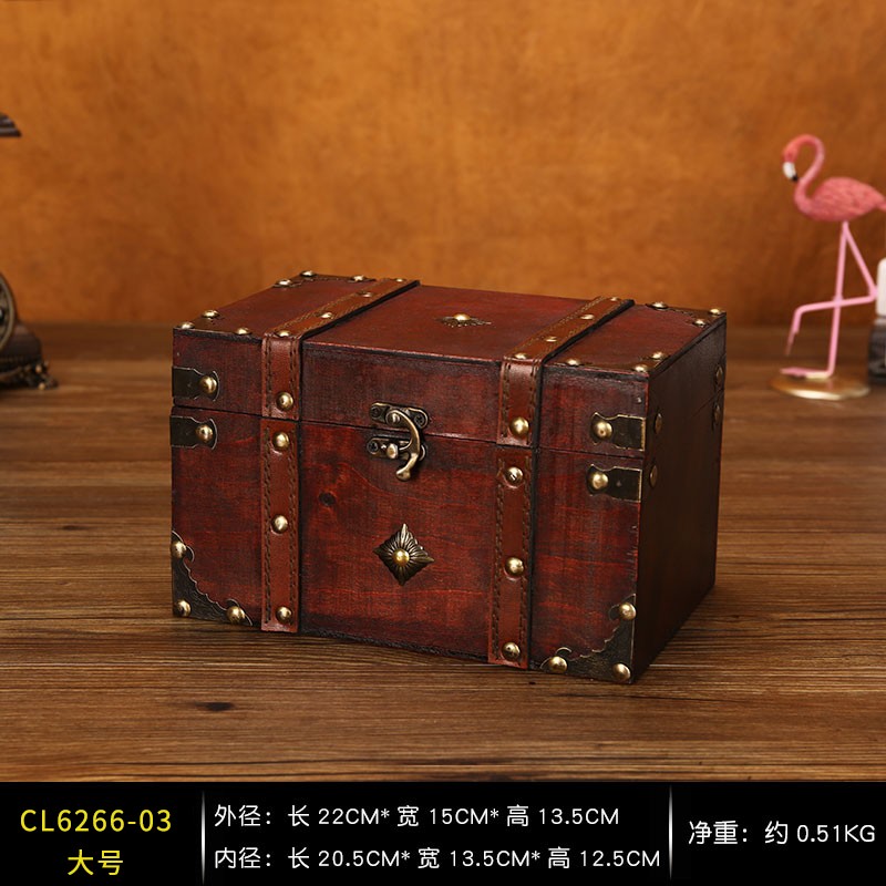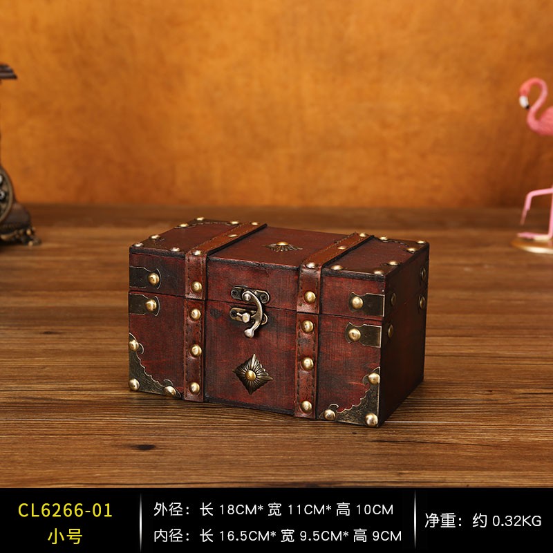 클래식 가죽 작은 나무 상자 가정용 데스크탑 인증서 메이크업 보관 상자 잠금 보석 상자 빈티지 보물 상자스토어 가기