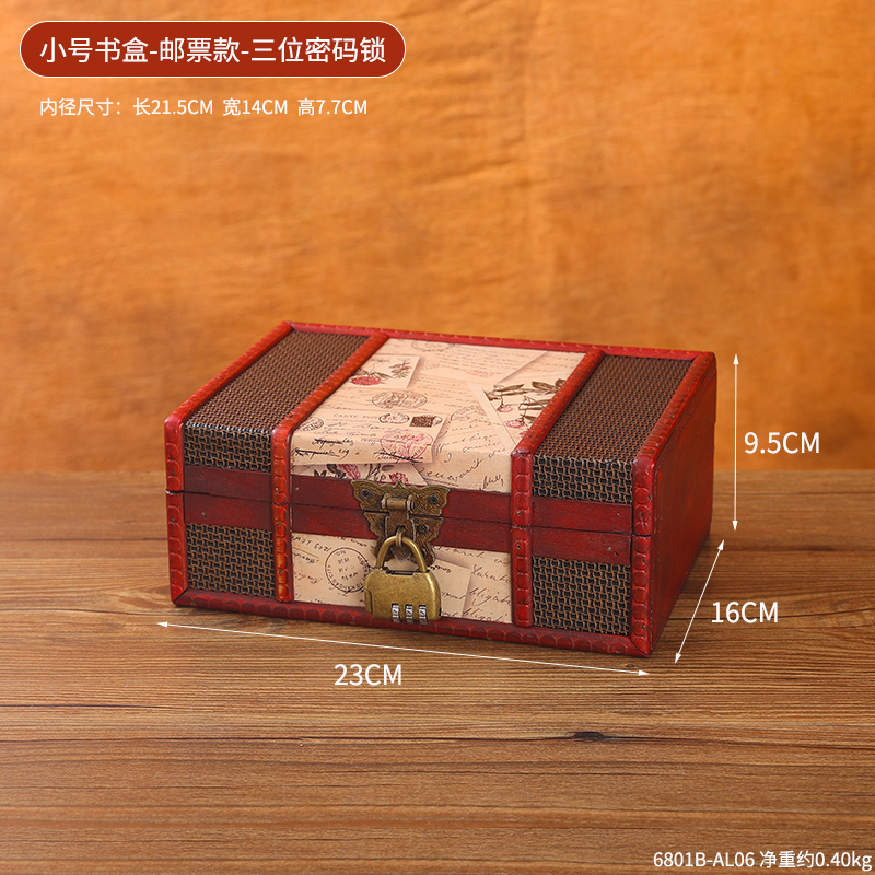 • ♥❤❥❣작은 책 상자 - 우표(이중 구멍 나비 버클 포함) + 복고풍 3자리 콤비네이션 자물쇠 [모델]❣❥❤