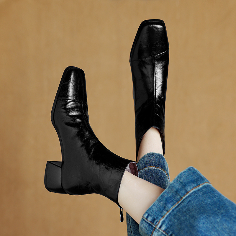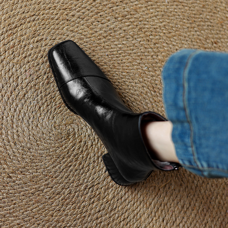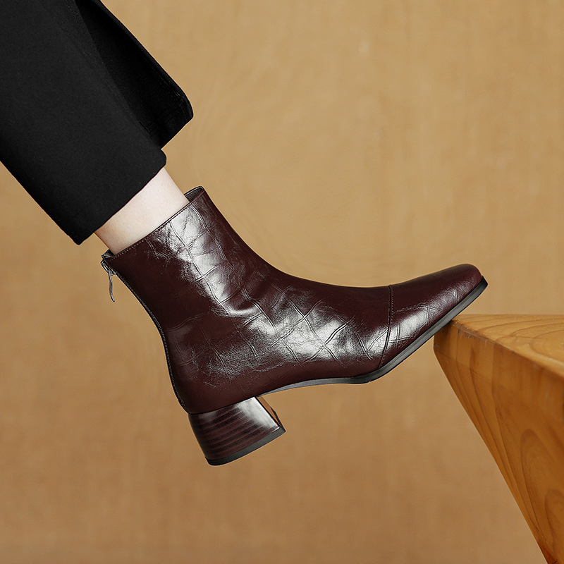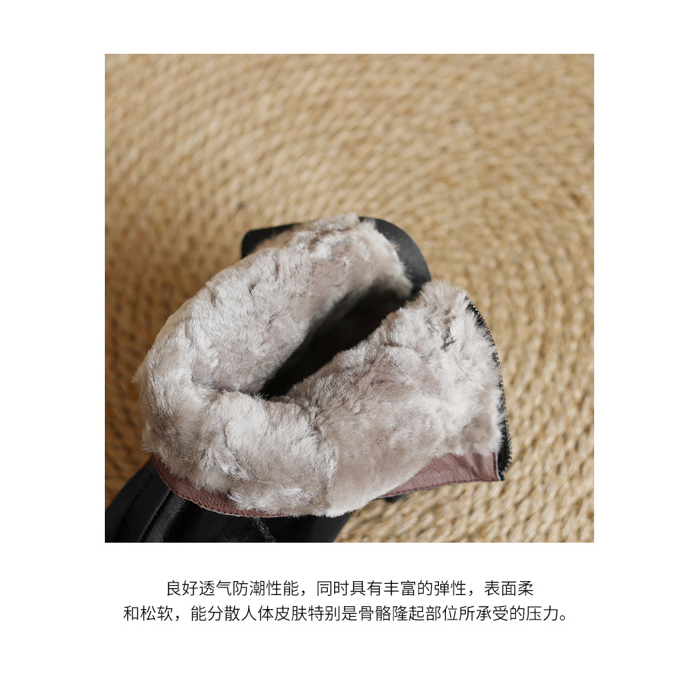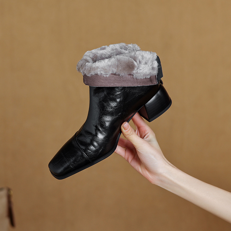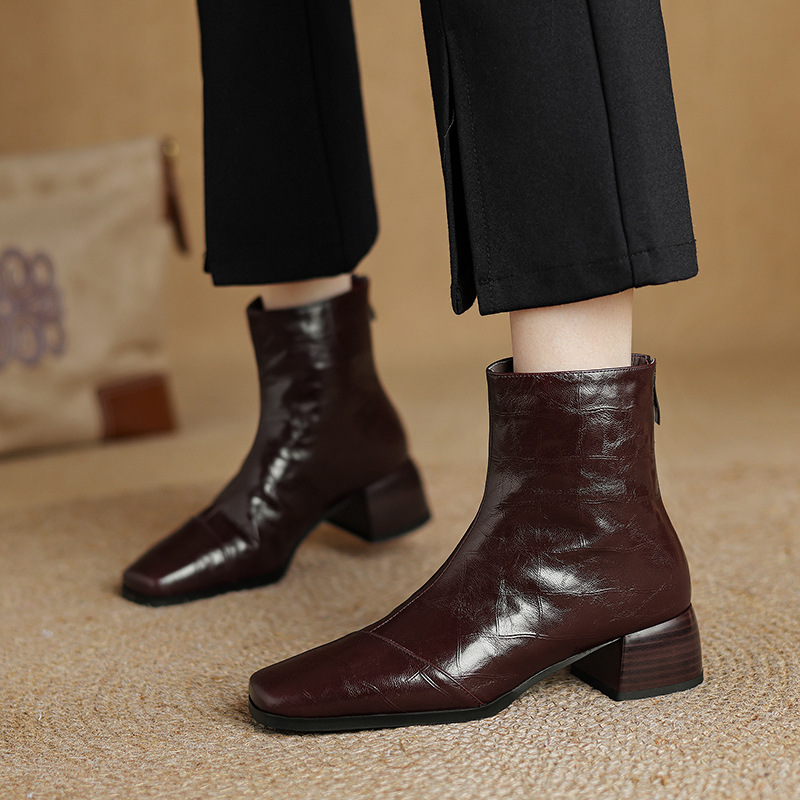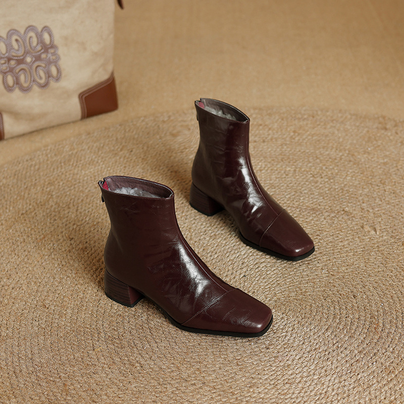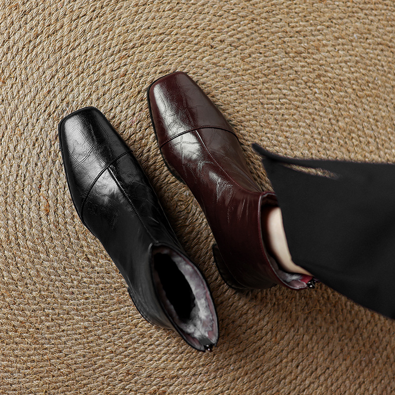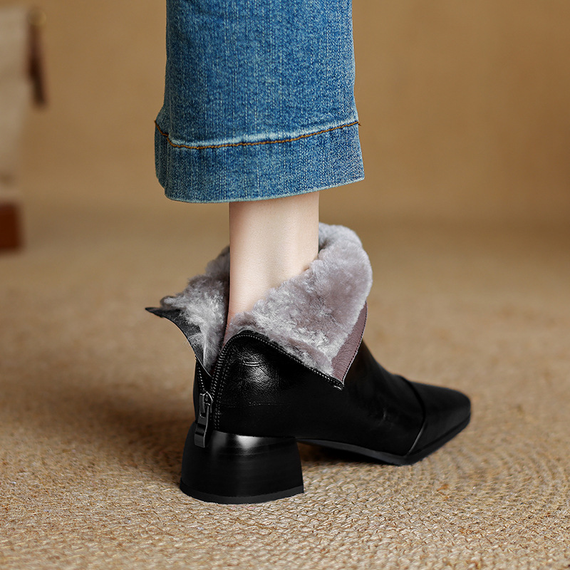 빈티지 거친 미드 힐 울 따뜻한 짧은 부츠 여성의 2024 년 겨울 새 마틴 부츠 Cowhide 리어 지퍼 스노우 부츠스토어 가기