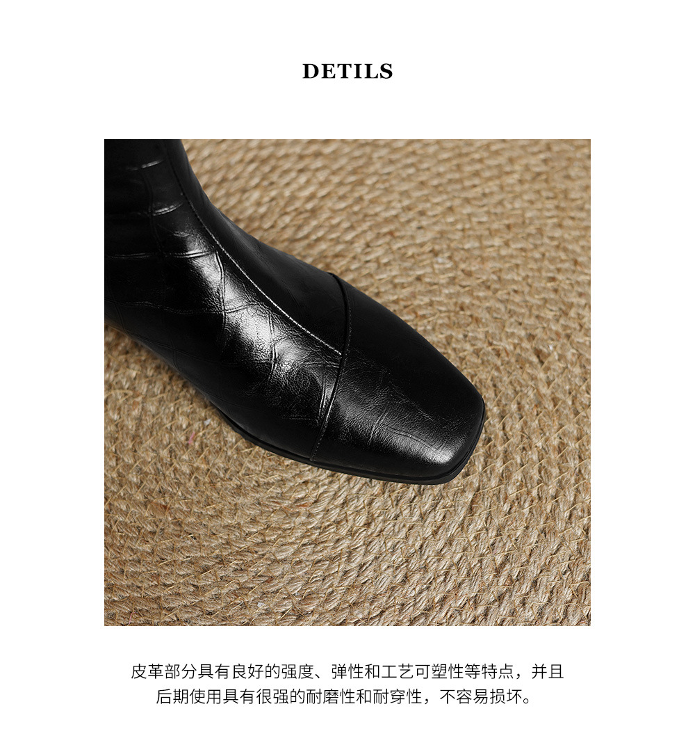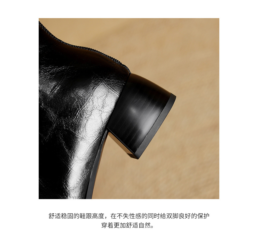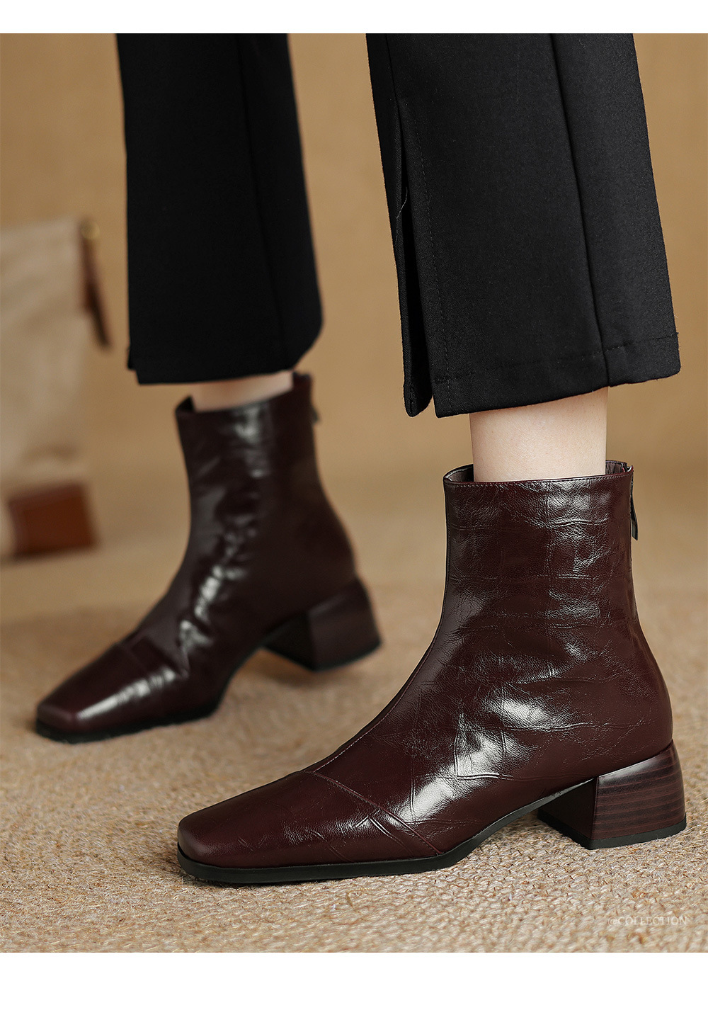 빈티지 거친 미드 힐 울 따뜻한 짧은 부츠 여성의 2024 년 겨울 새 마틴 부츠 Cowhide 리어 지퍼 스노우 부츠