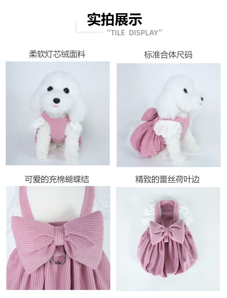 애완 동물 의류 가을, 겨울 새로운 코듀로이 호박 스커트 견인 버클 테디 비숑 개 고양이 따뜻한 레이스 스커트스토어 가기