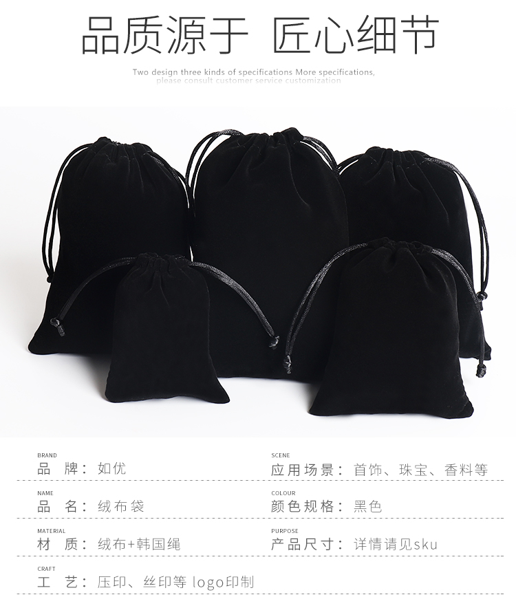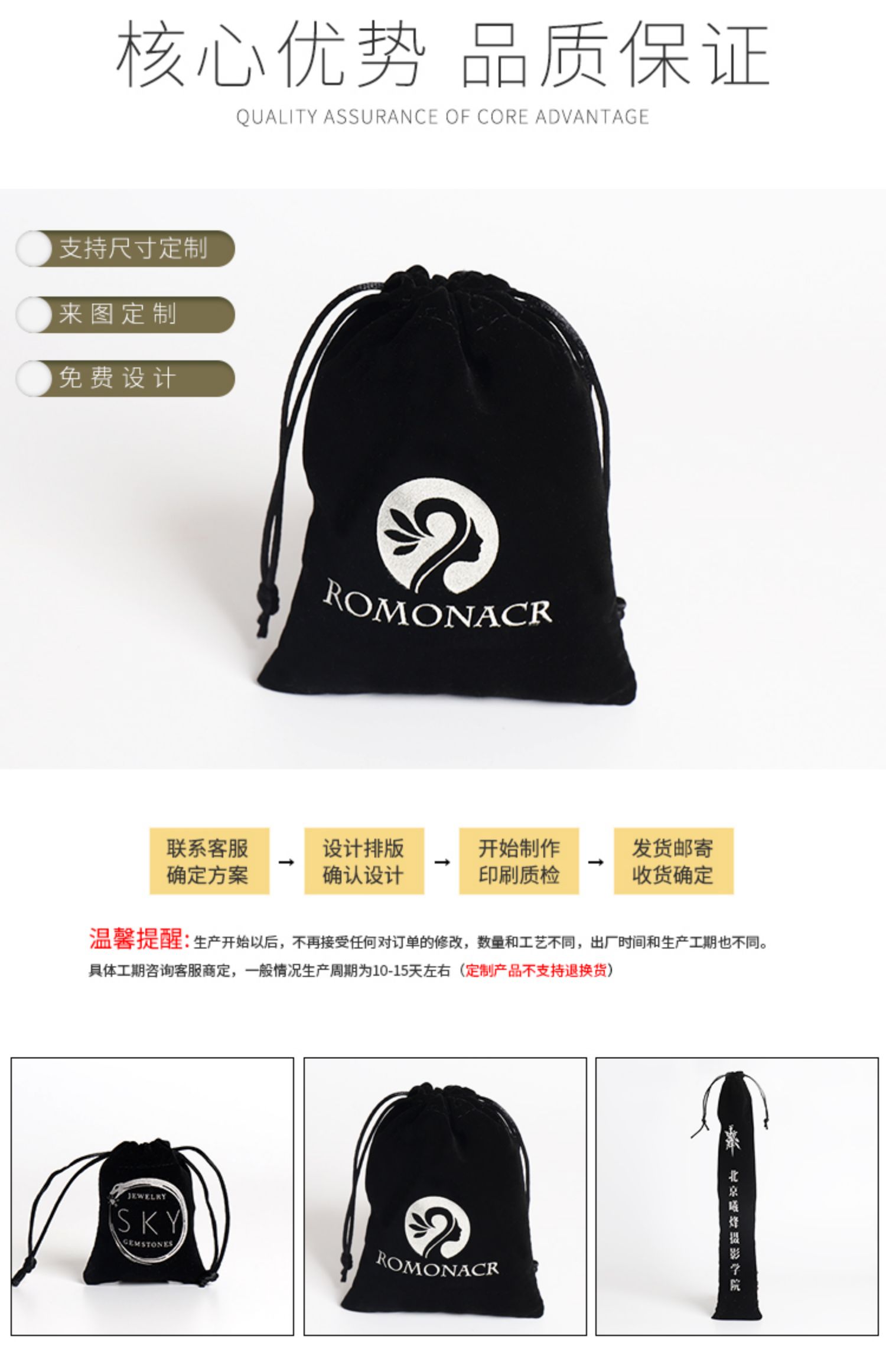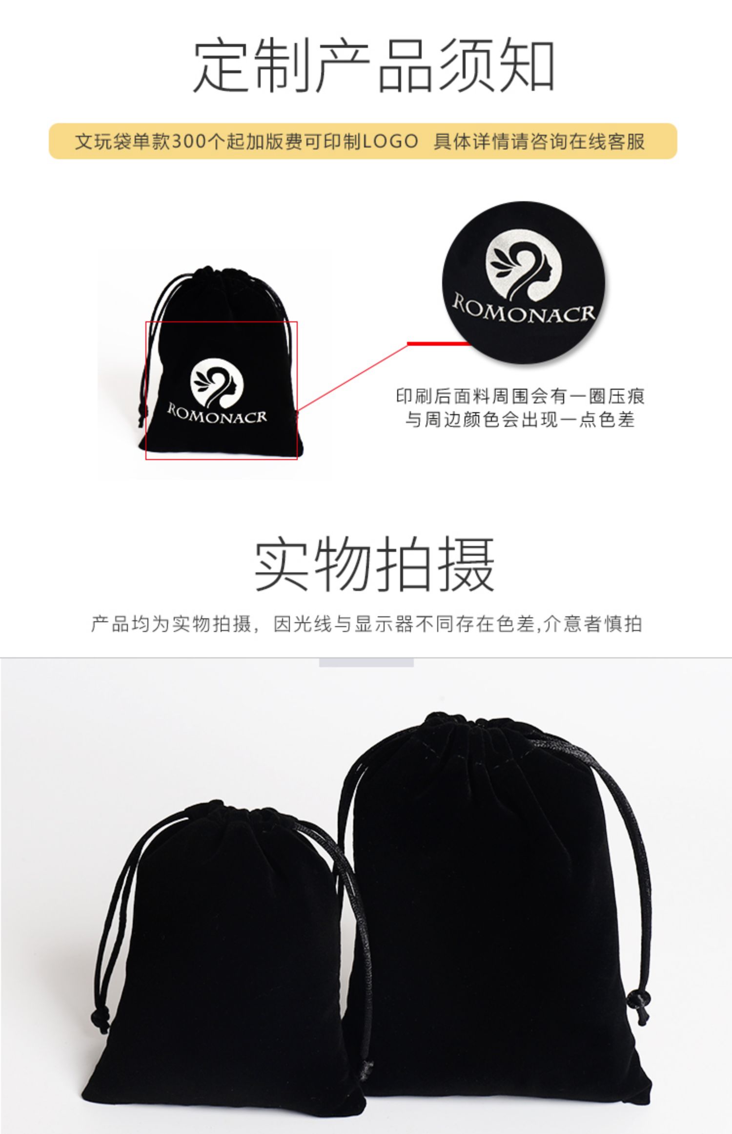검은 플란넬 가방 보석 drawstring 가방 씰 저장 가방 작은 천 가방 텍스트 재생 포장 가방 천 가방 제조 업체스토어 가기