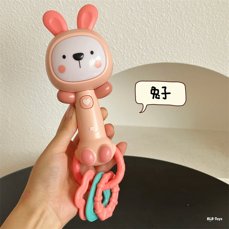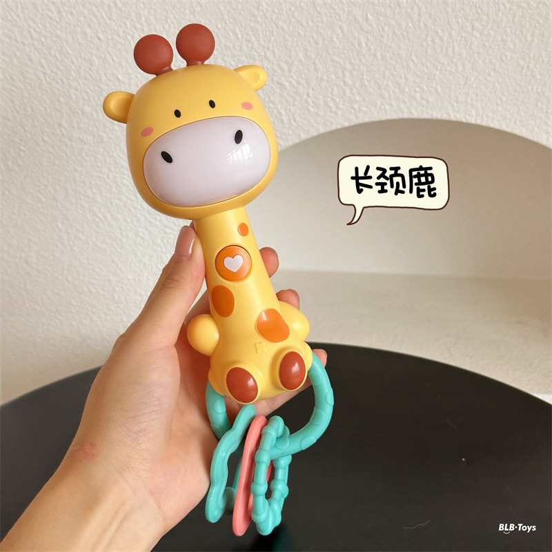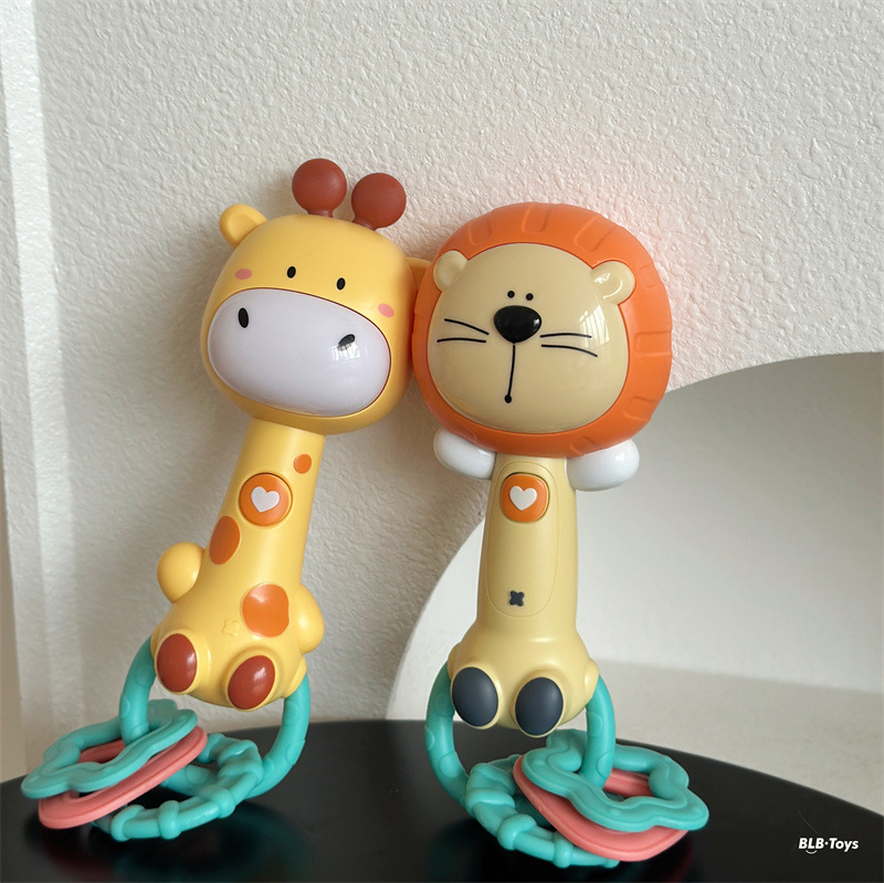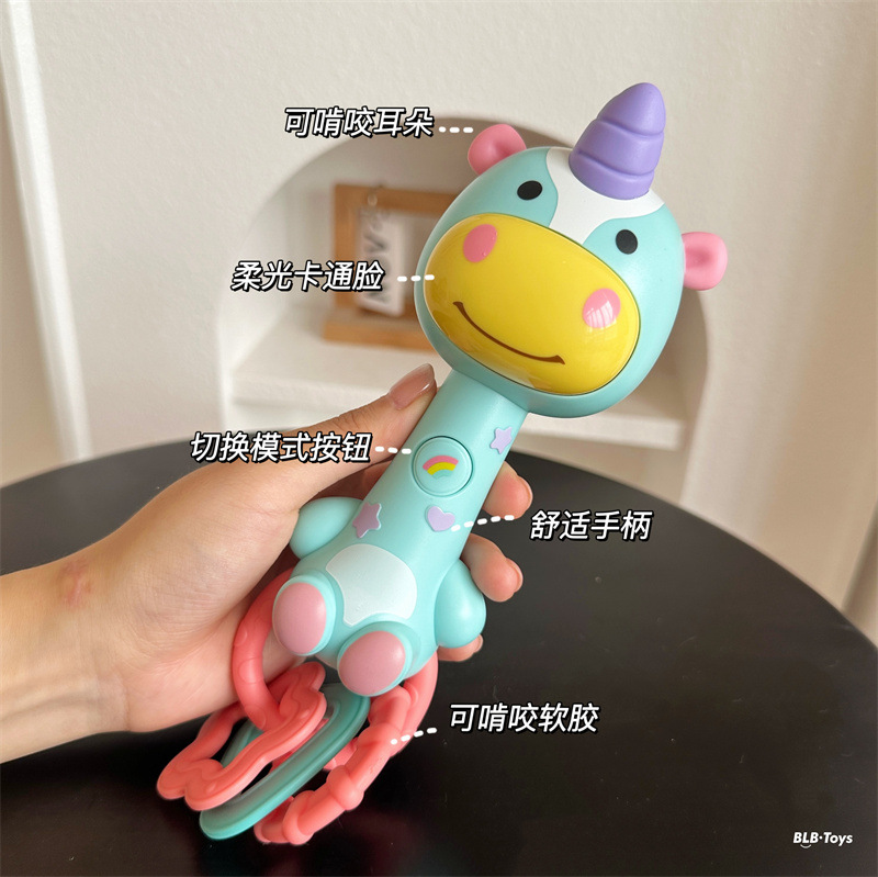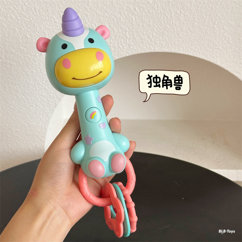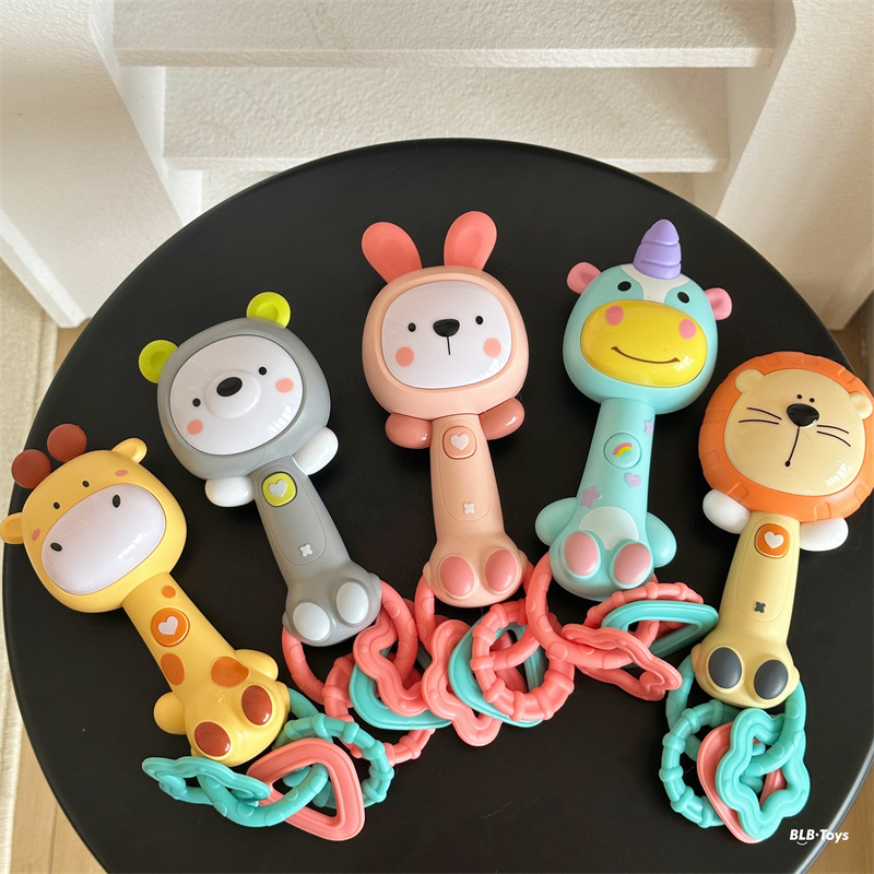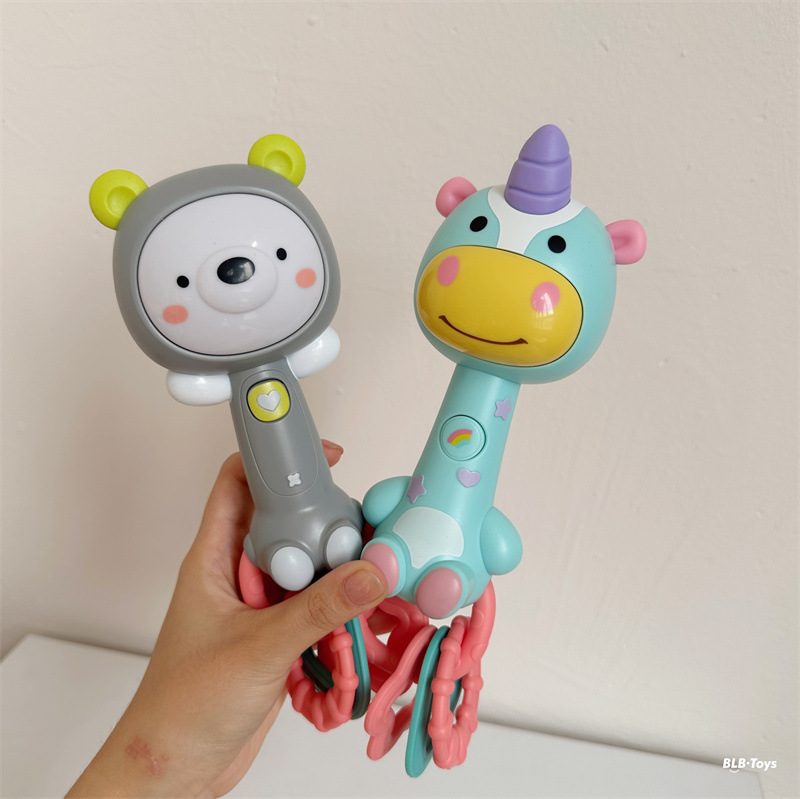 국경 간 아기 딸랑이 음악 스틱 동물 치아 껌 리듬 스틱 손 그립 진정 bb 스틱 라이트 딸랑이 장난감스토어 가기