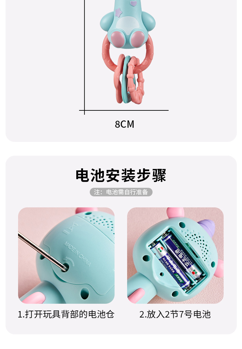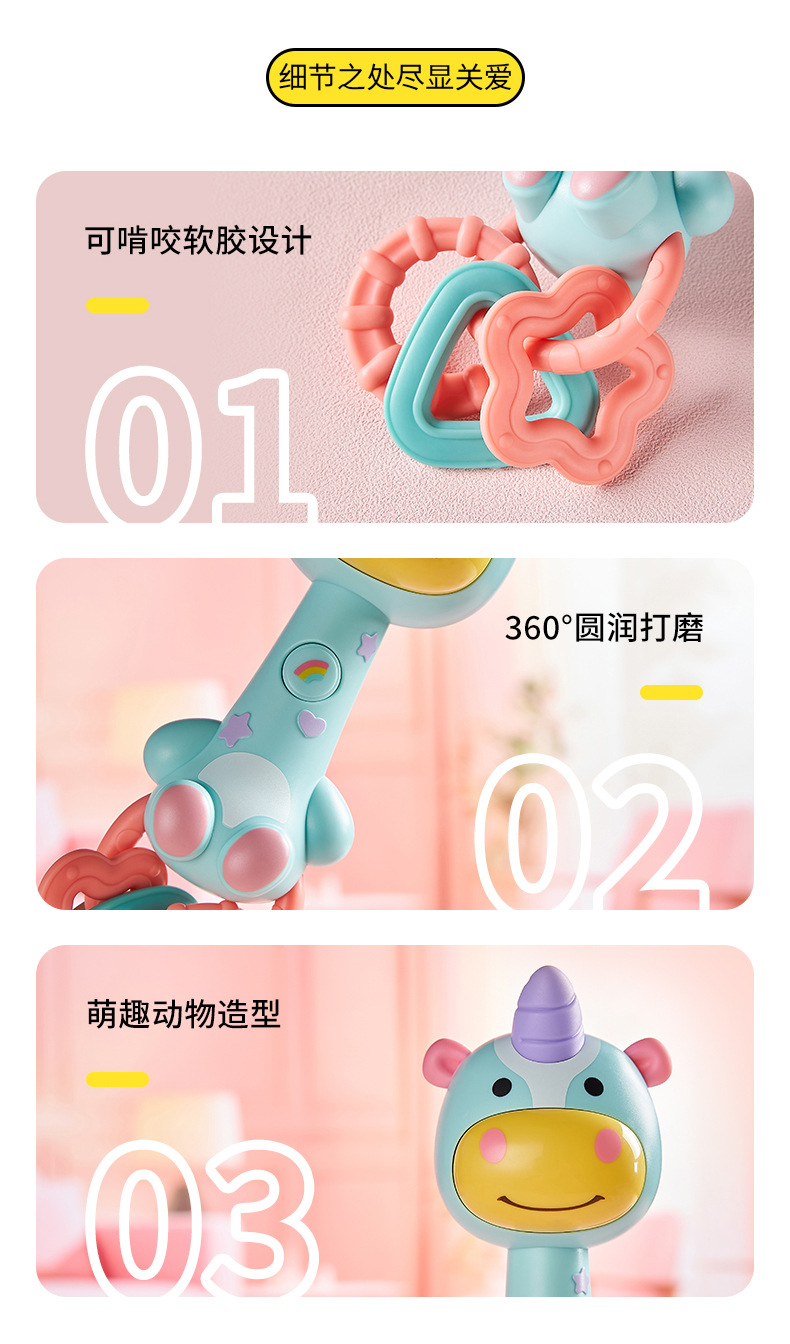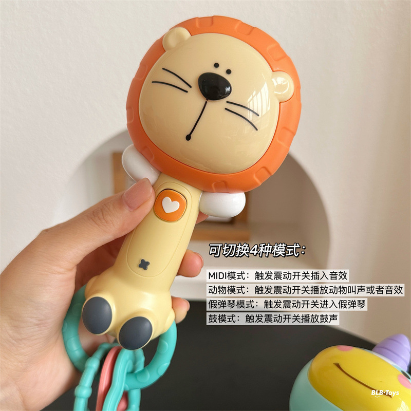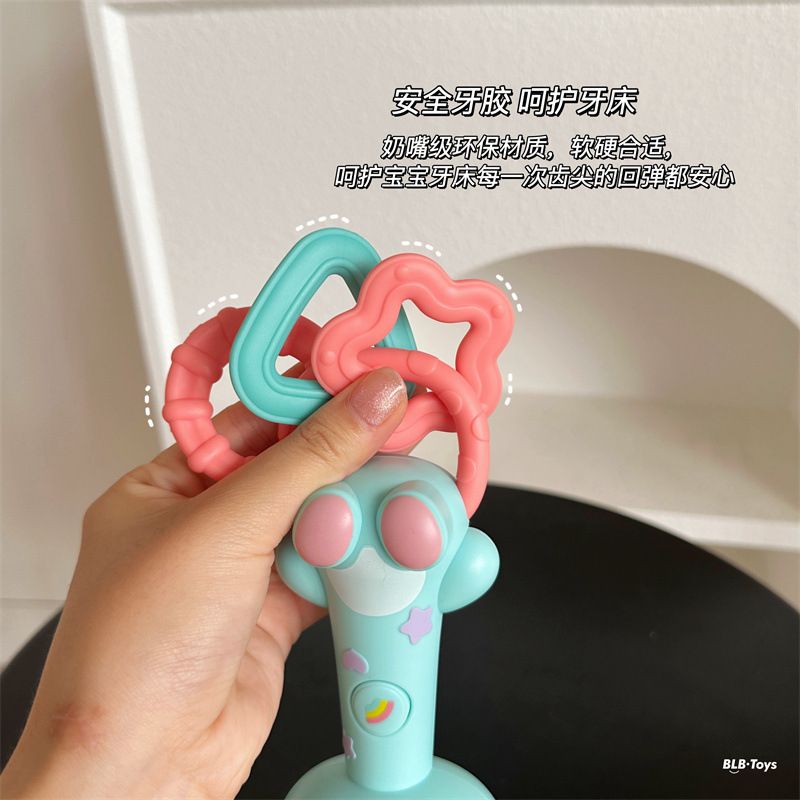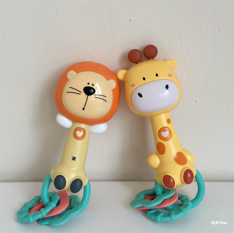 국경 간 아기 딸랑이 음악 스틱 동물 치아 껌 리듬 스틱 손 그립 진정 bb 스틱 라이트 딸랑이 장난감스토어 가기