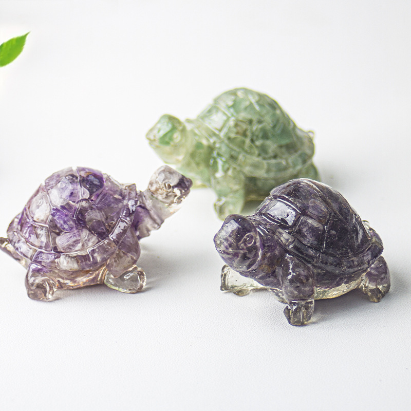 자연 크리스탈 자갈 접착제 방울 귀여운 작은 거북이 물고기 탱크 장식 데스크탑 액세서리 자동차 장식