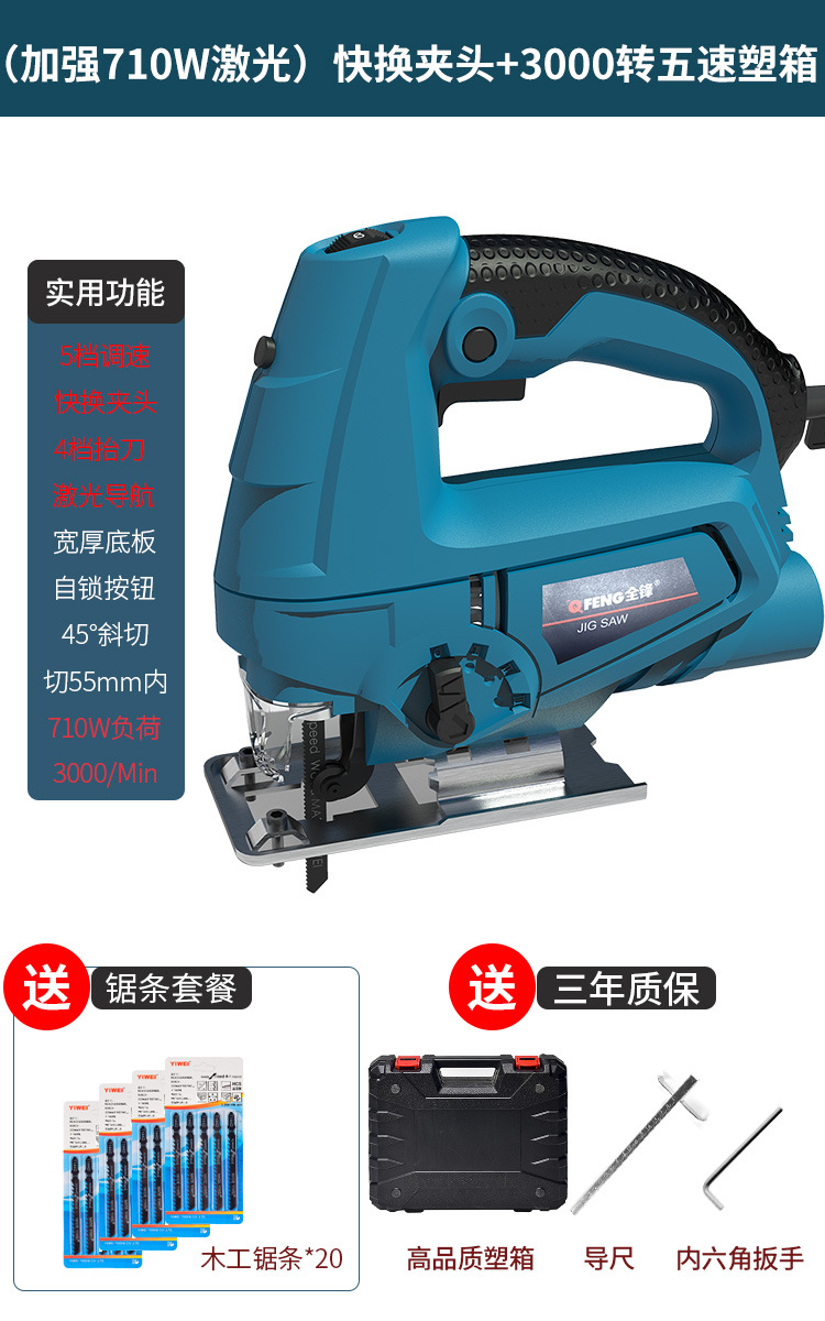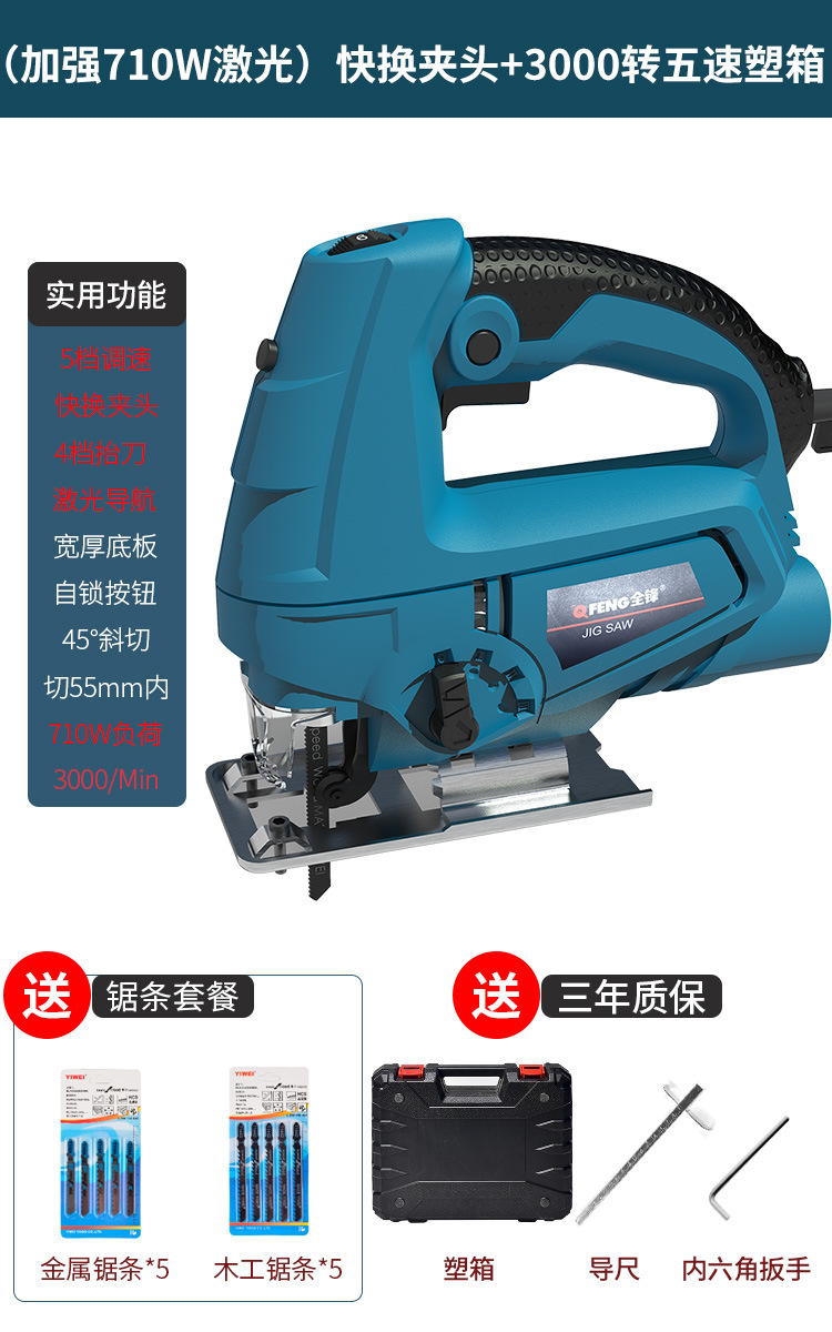 • (710W 레이저 강화) 퀵 체인지 척 + 3000rpm 5단 플라스틱 상자 + 목공 톱날 10개 + 금속 톱날 10개