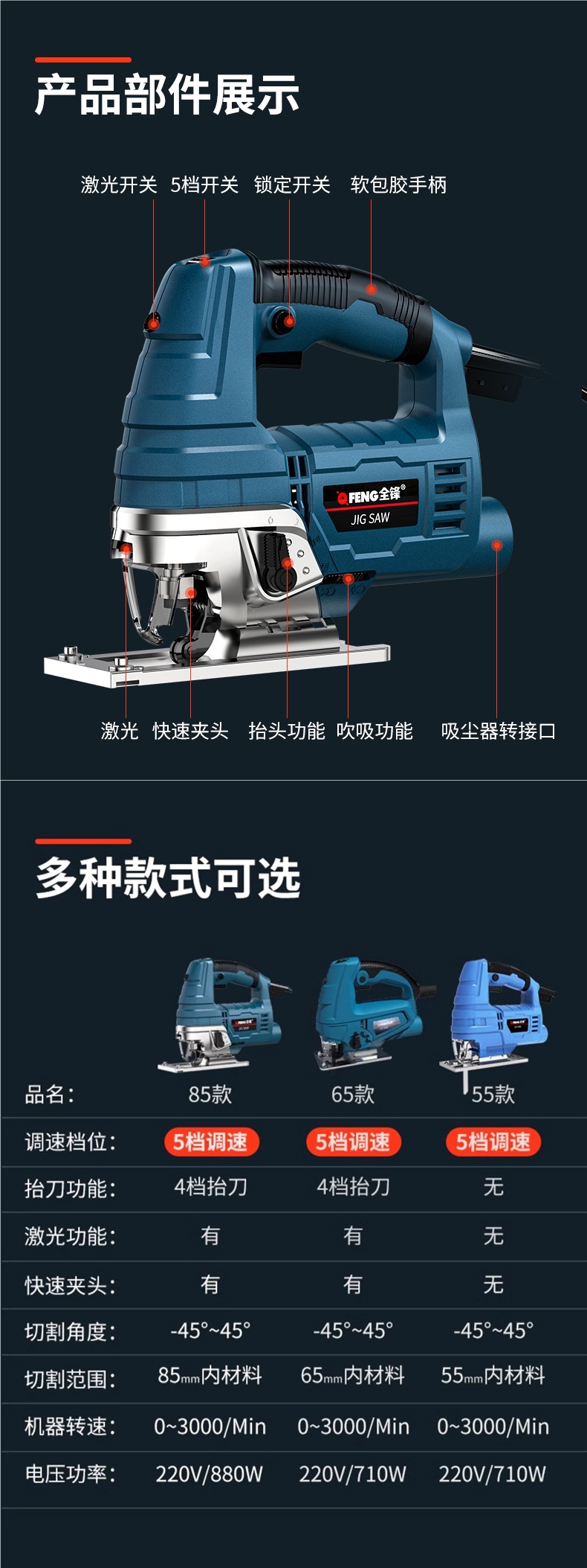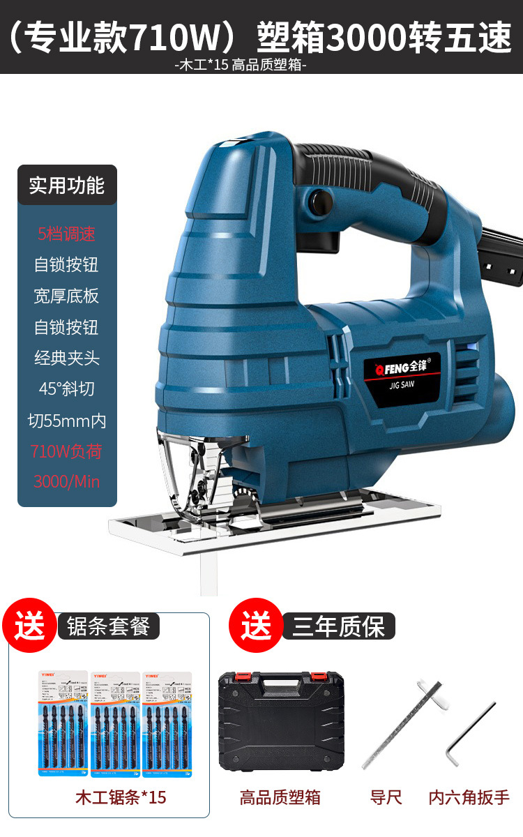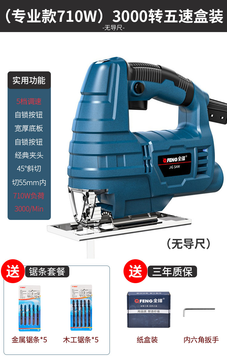 • (전문 모델 710W) 3000rpm 5단 + 목공 톱날 10개 + 금속 톱날 10개 + 고품질 플라스틱 상자