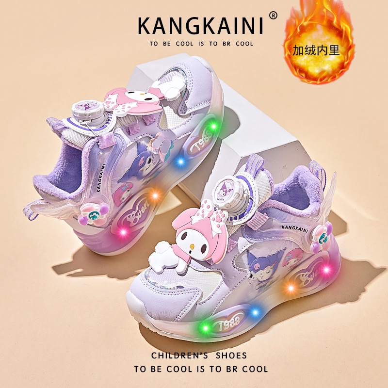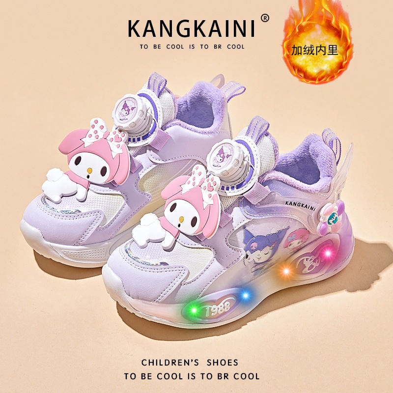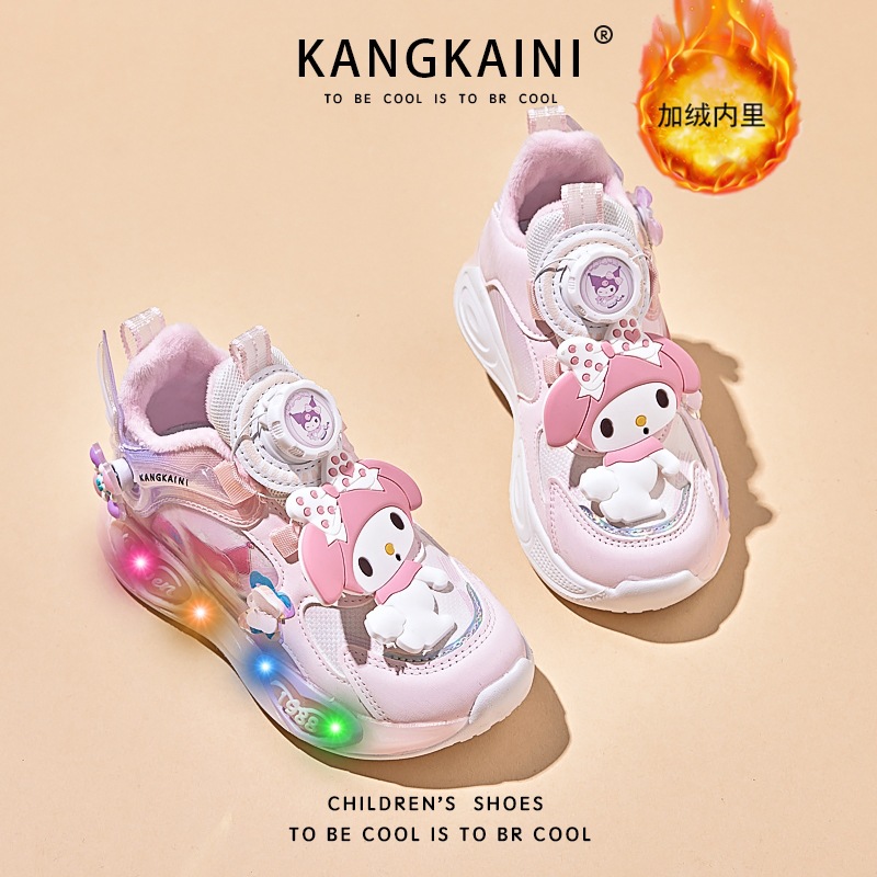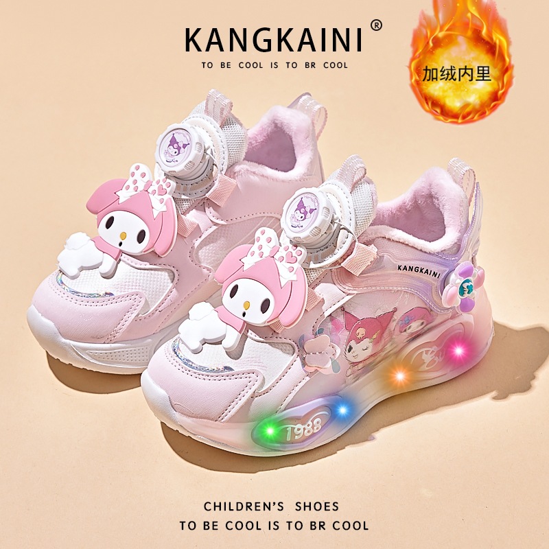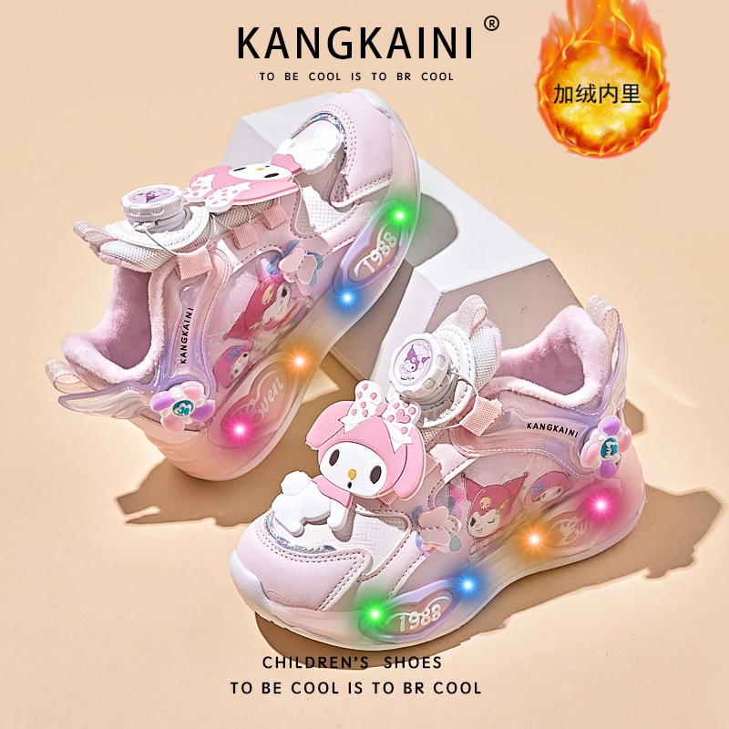여아용 멜로디 플러스 벨벳 운동화 2025 겨울 신상 한국 스타일 발광 신발 어린이 회전 버튼 아빠 신발스토어 가기