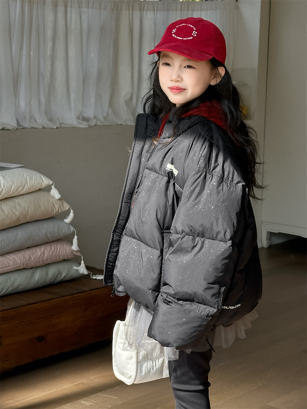 꽃과 어린이 의류 소녀 다운 재킷 2024 겨울 한국식 두꺼운 짧은 따뜻한 어린이 빵 의류 조수스토어 가기