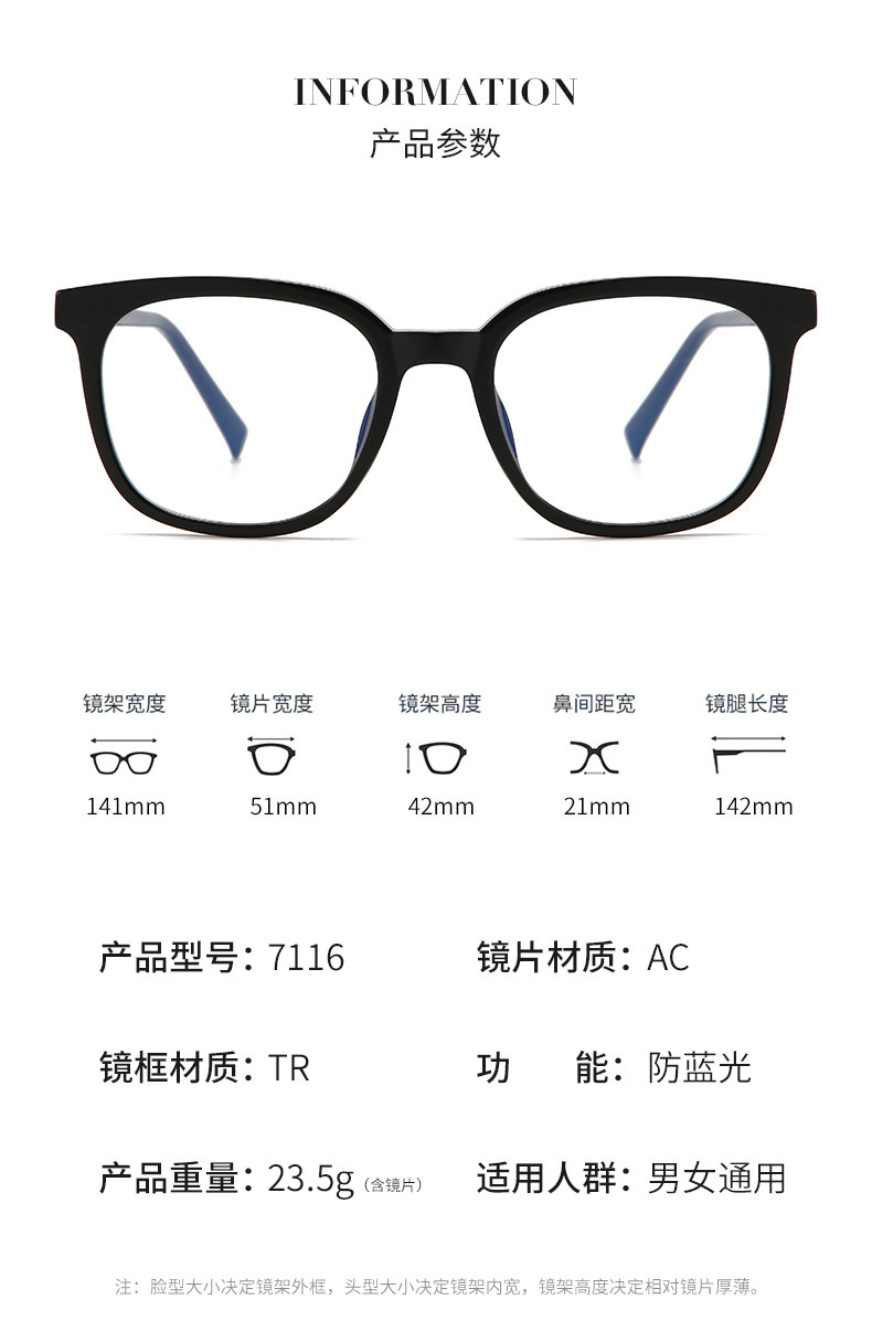Fangyuan 큰 얼굴 패션 안티 블루 라이트 플랫 미러 간단한 대기 TR90 울트라 라이트 플레인 프레임 금속 핀 플레이트스토어 가기