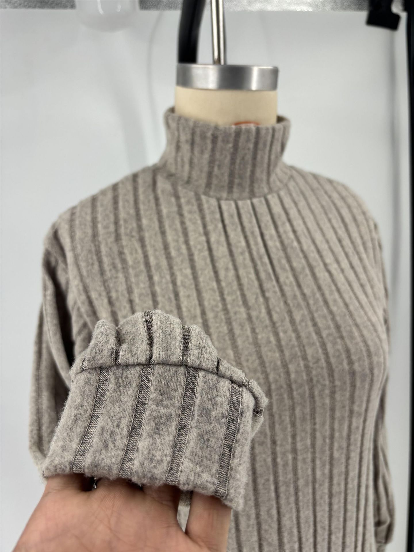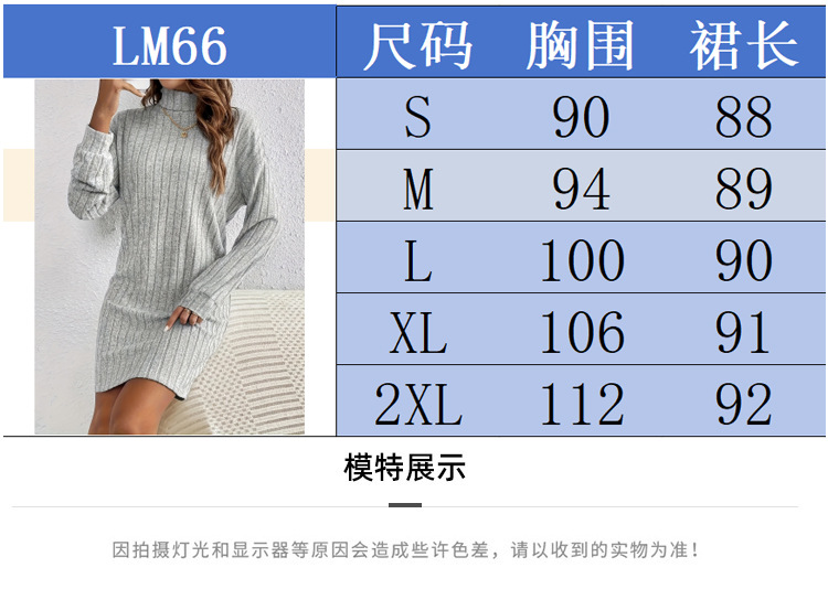 2024 유럽과 미국의 국경 독립 스테이션 가을, 겨울 새로운 여성 캐주얼 패션 솔리드 컬러 하이 넥 긴팔 니트 드레스스토어 가기
