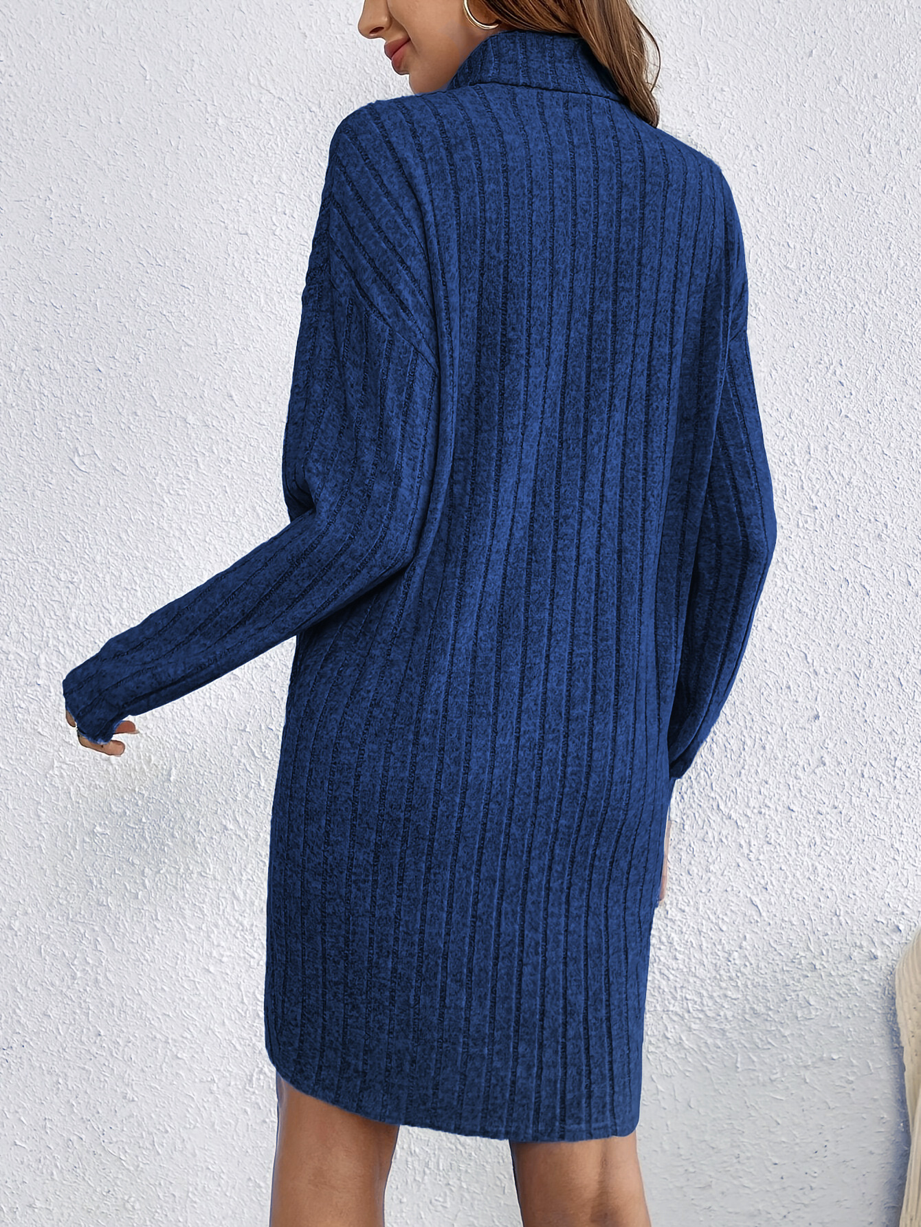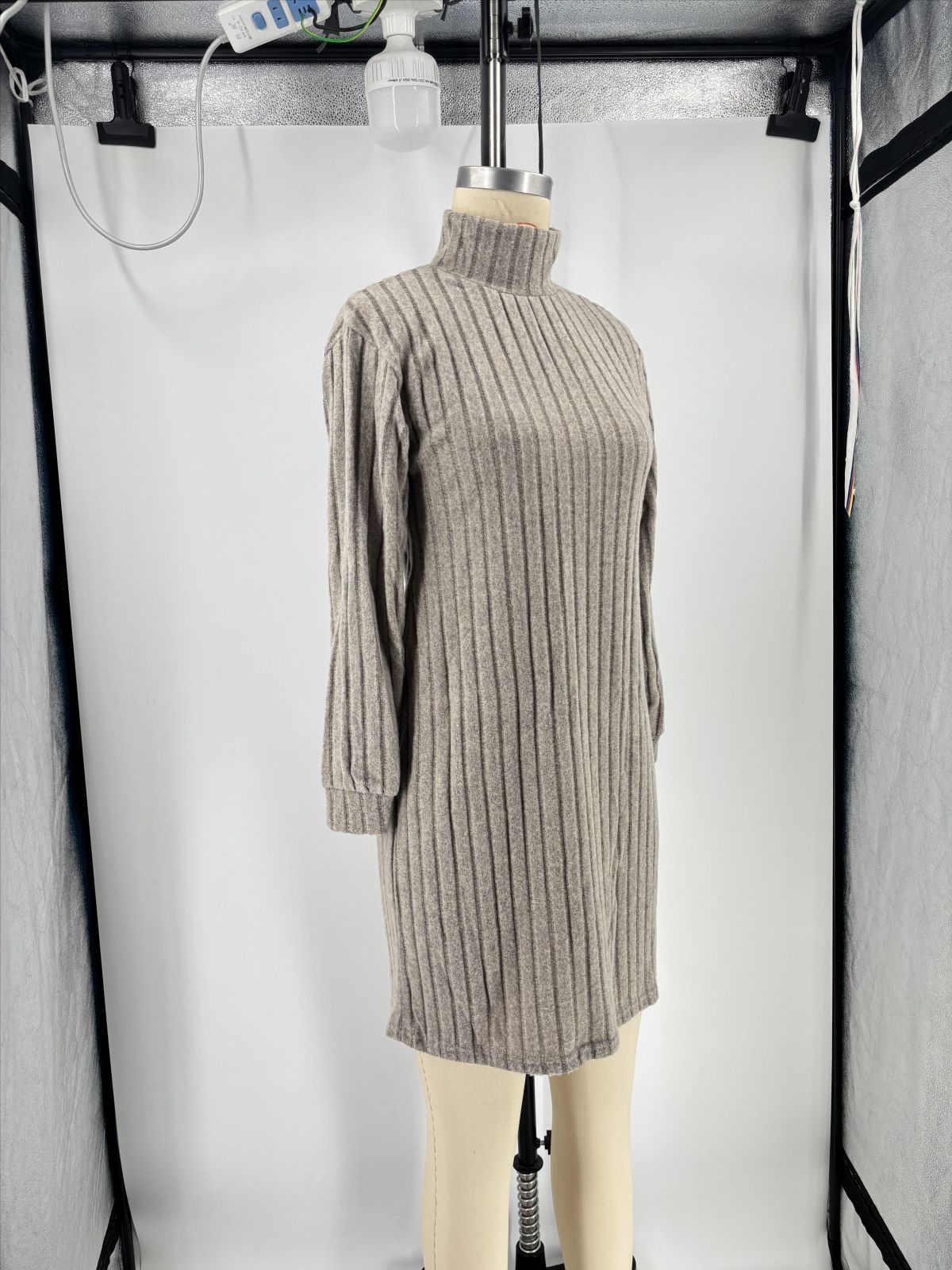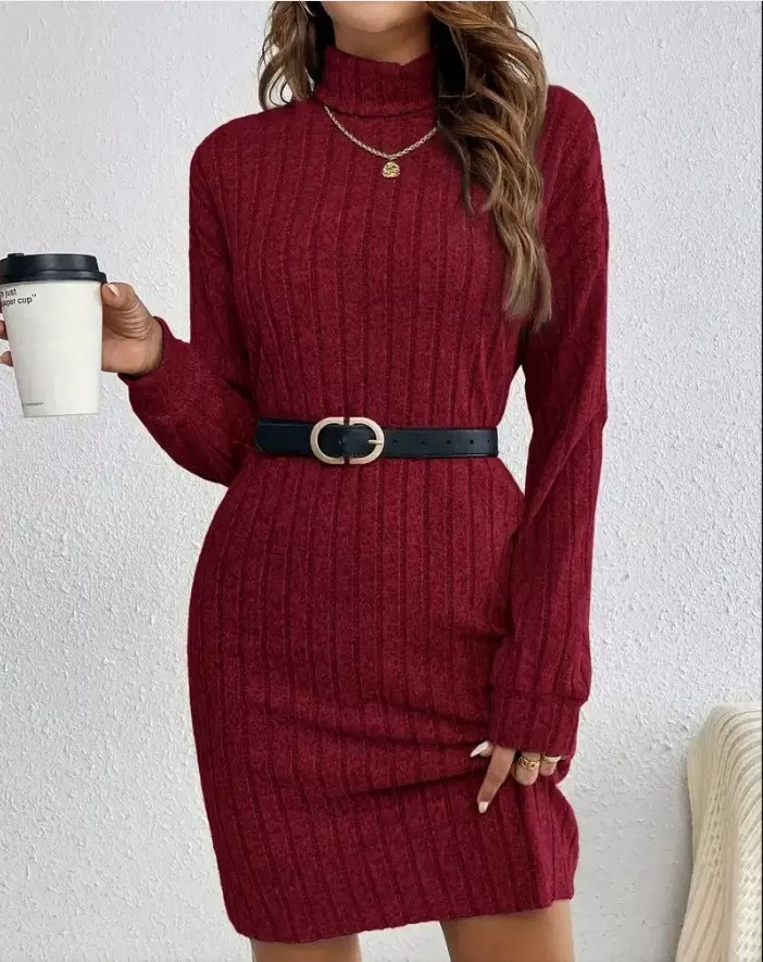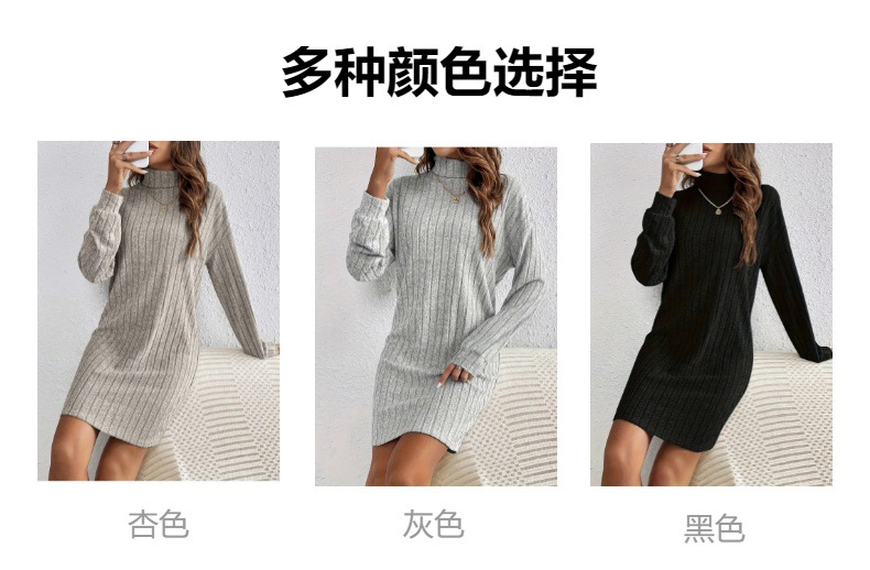 2024 유럽과 미국의 국경 독립 스테이션 가을, 겨울 새로운 여성 캐주얼 패션 솔리드 컬러 하이 넥 긴팔 니트 드레스