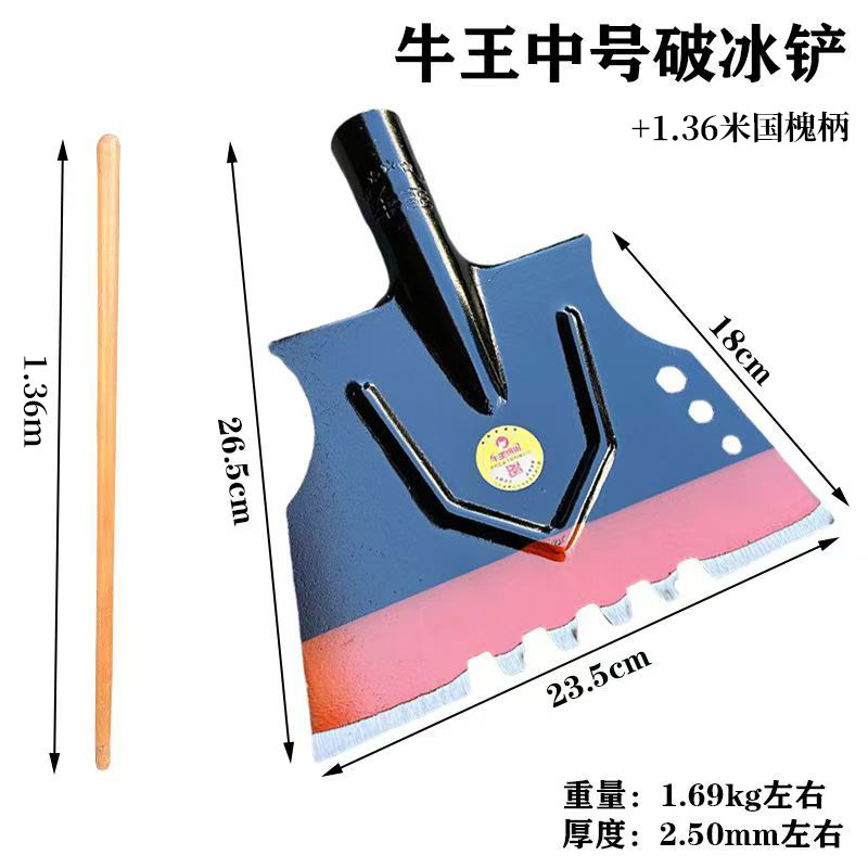 • 망간강 초두꺼운 황소 왕 대형 얼음 깨는 삽( 1.36m ) 나무 손잡이