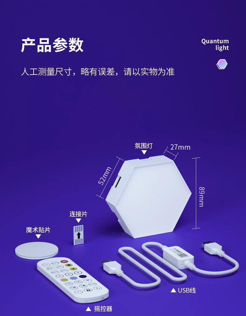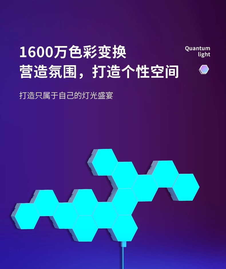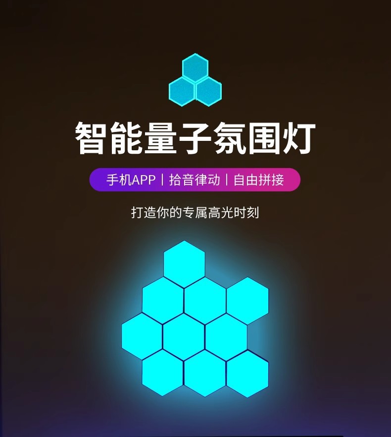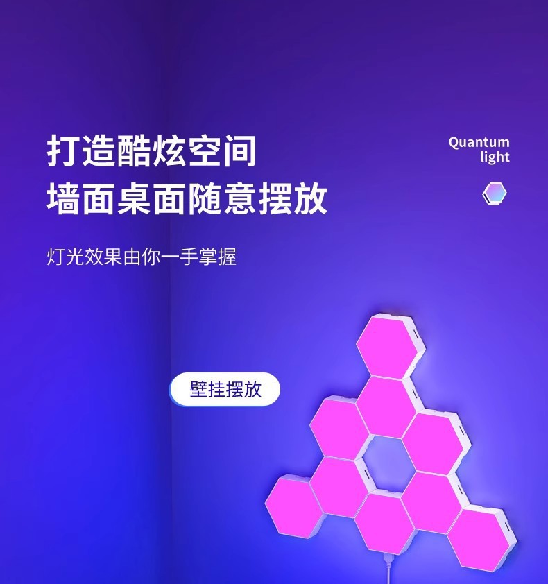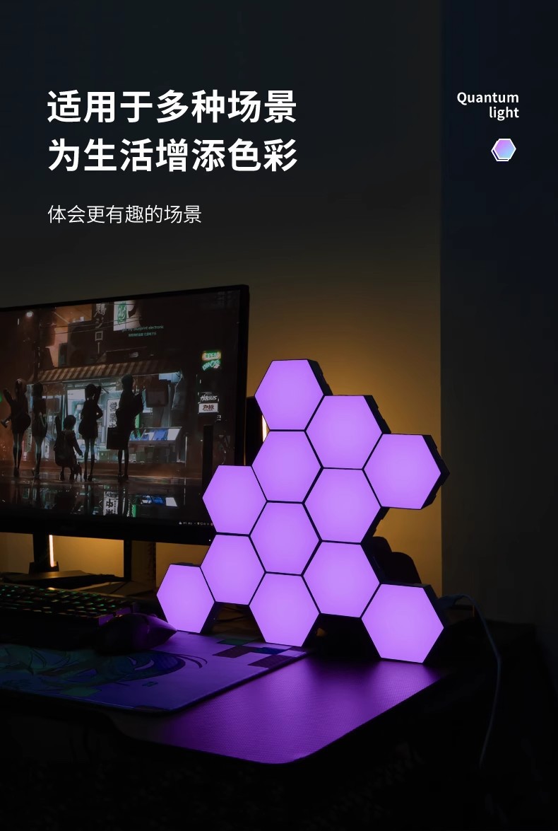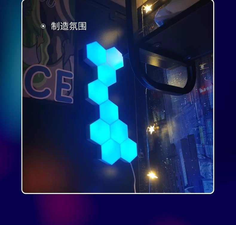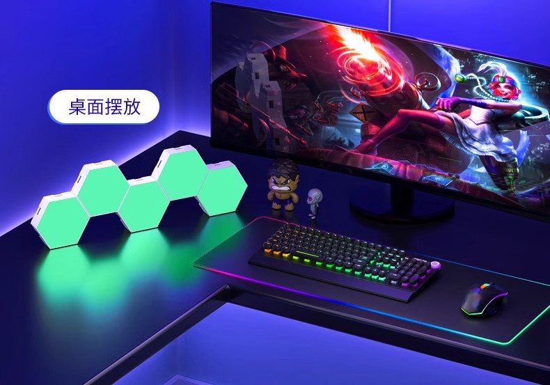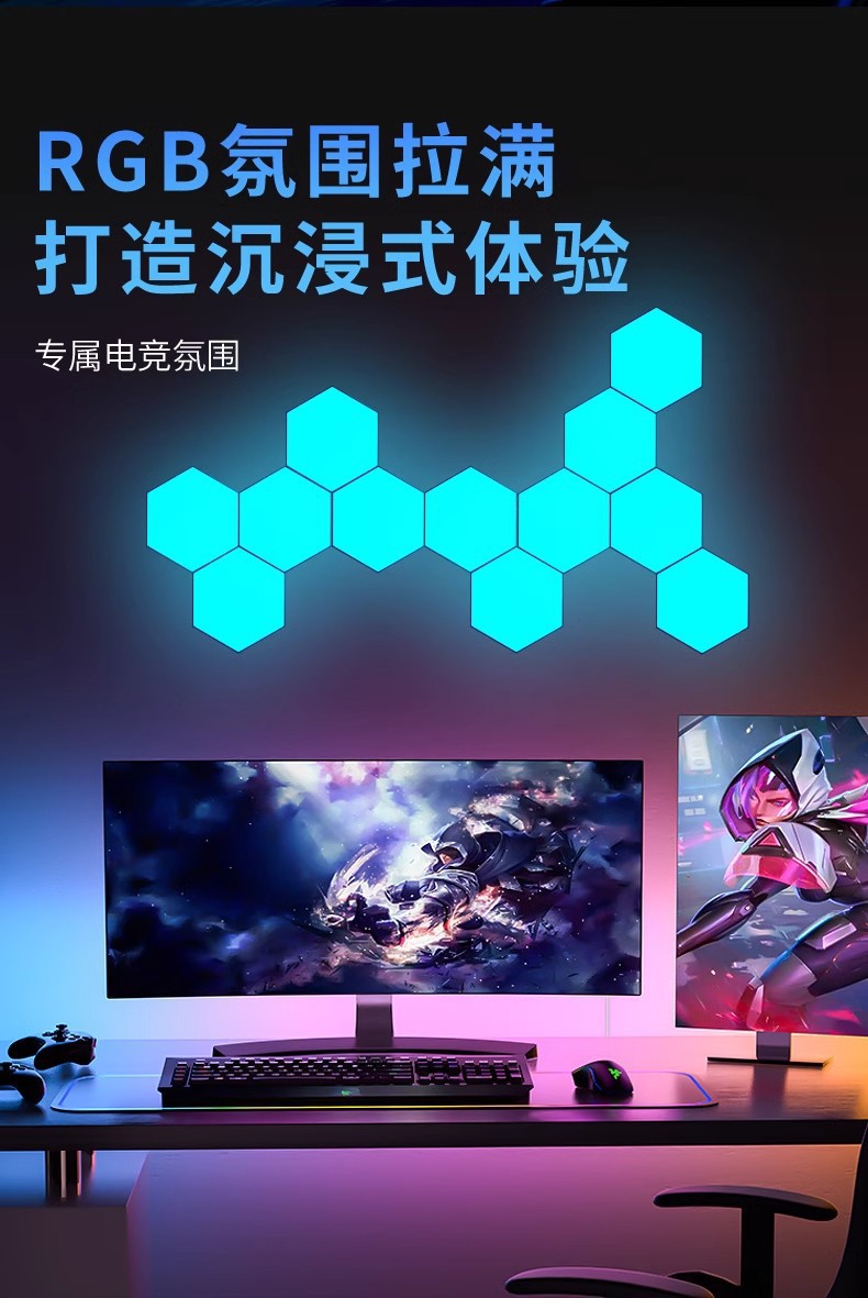 전자 스포츠 게임 분위기 램프 RGB 라이브 룸 장식 벽 램프 픽업 양자 벌집 육각형 배경 벽 램프