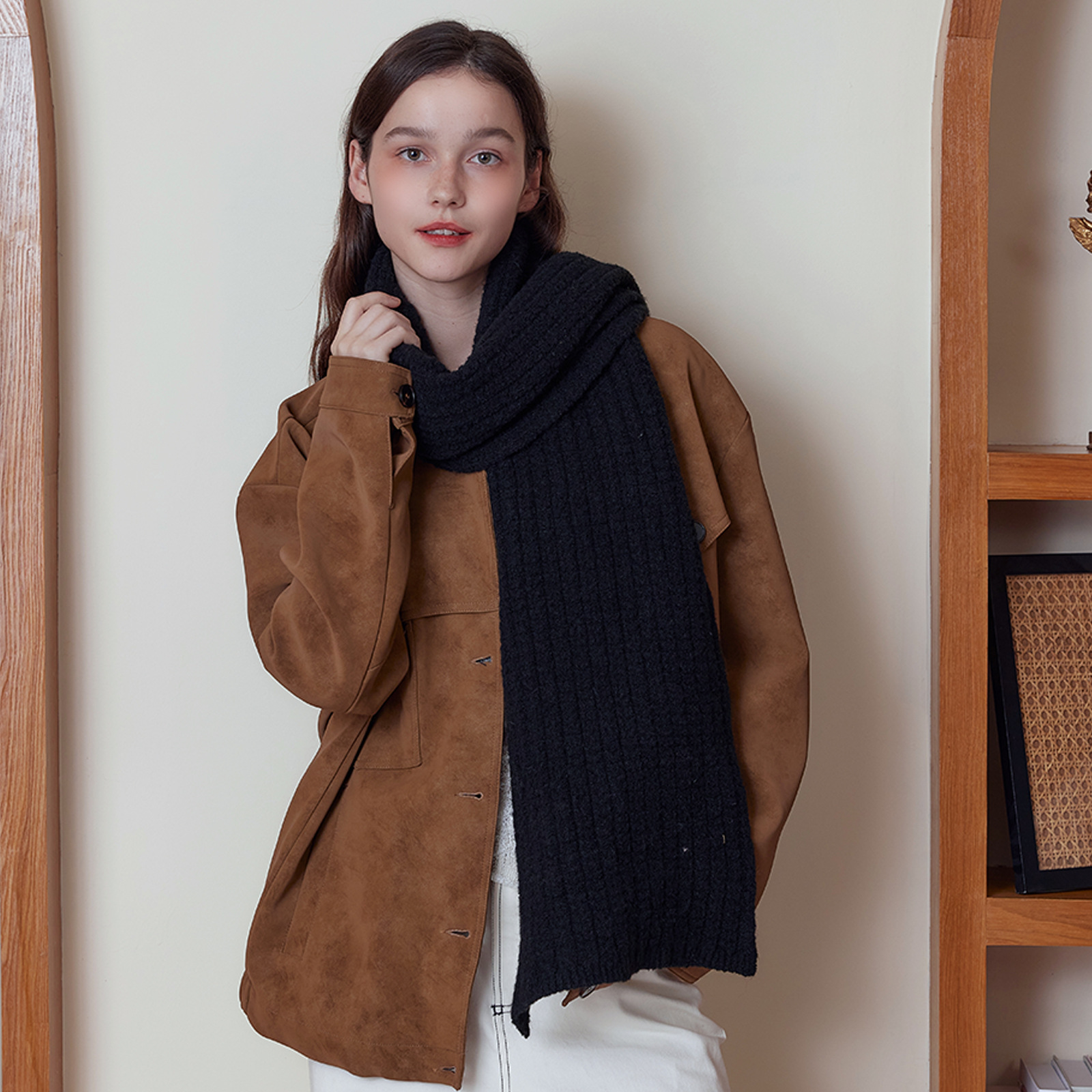2024 제조 업체 새로운 분위기 스카프 가을과 겨울 조커 일본 하이 엔드 니트 울 스카프 트렌드스토어 가기