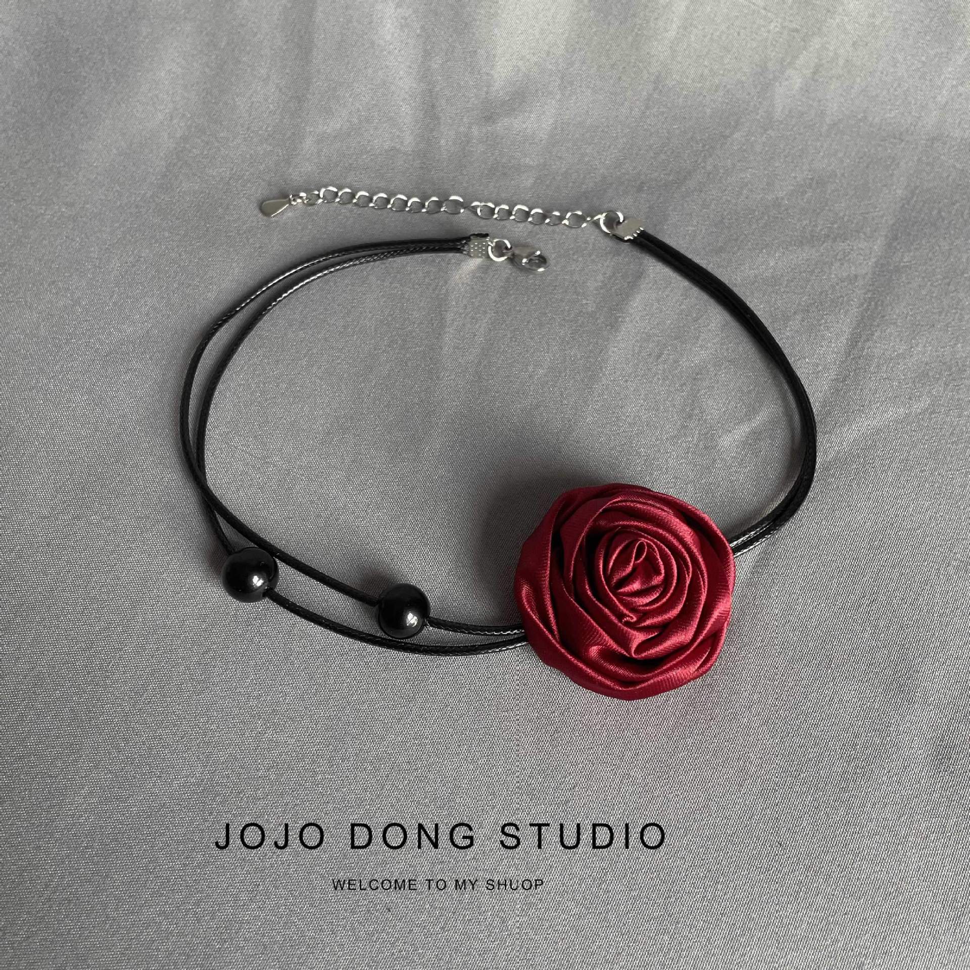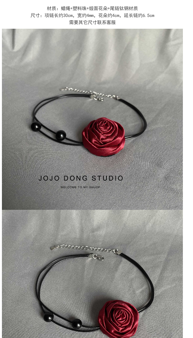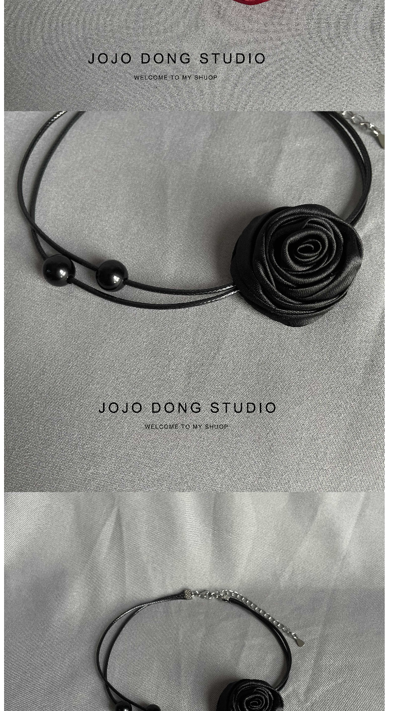 • 부르고뉴 꽃 + 블랙 비즈 초커