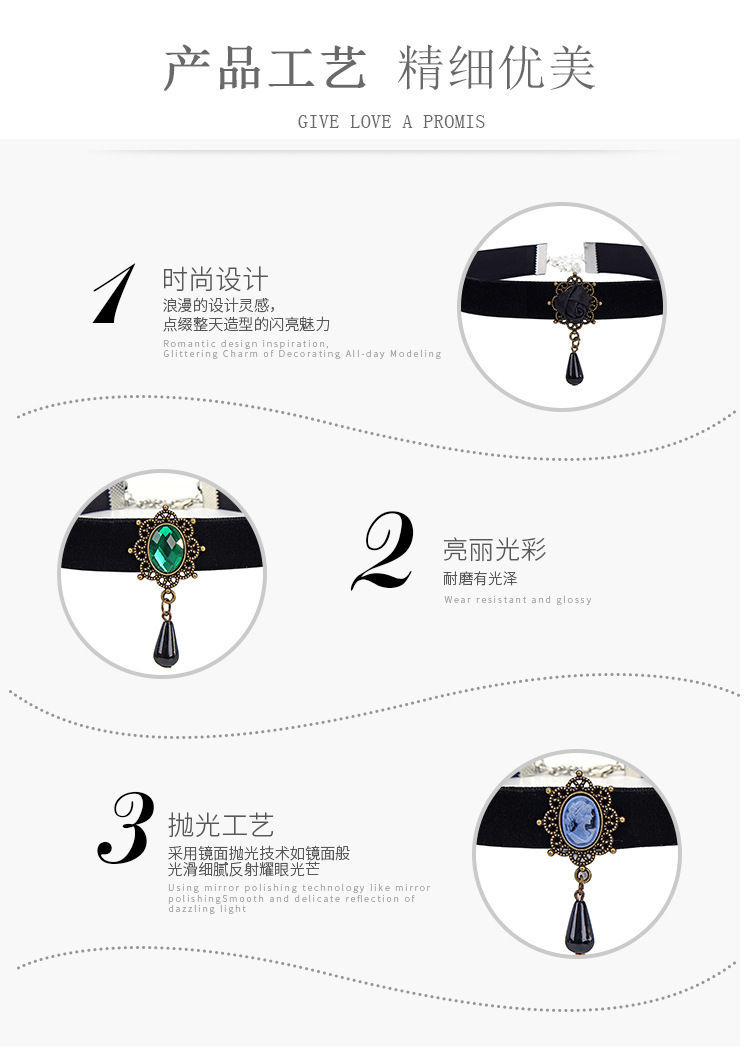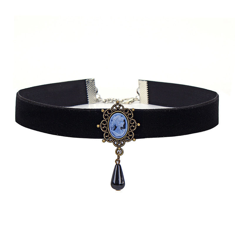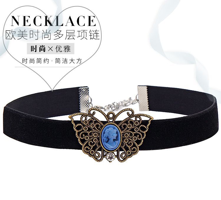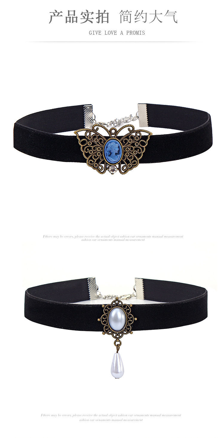 유럽과 미국의 성격 코트 빈티지 크리스탈 목걸이 블랙 벨벳 벨트 나비 뷰티 헤드 워터 드롭 합금 펜던트스토어 가기