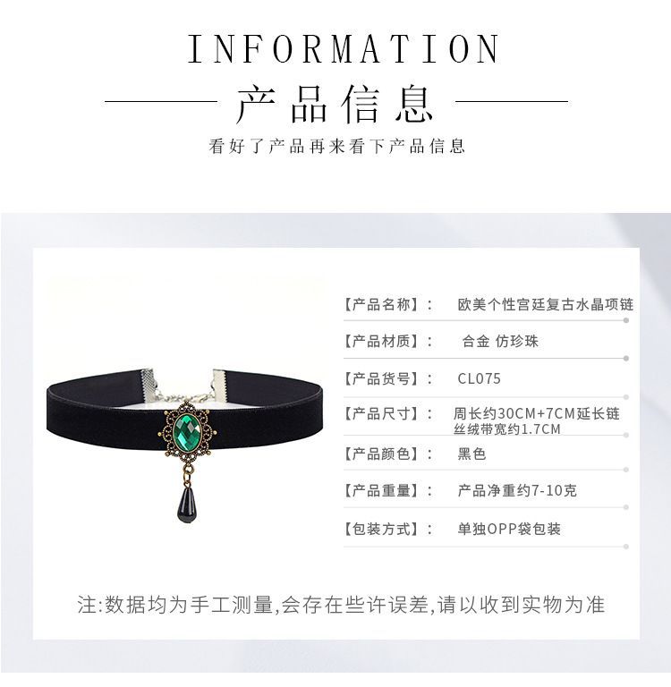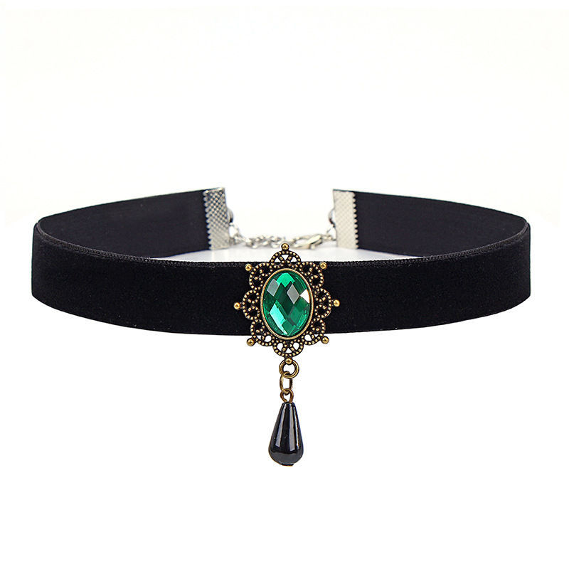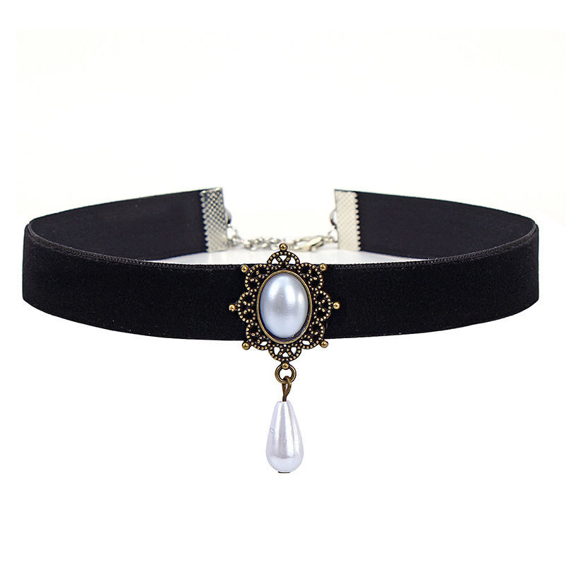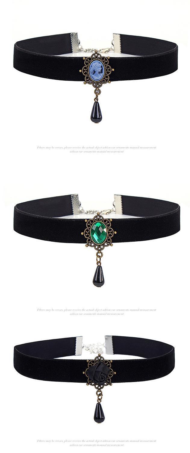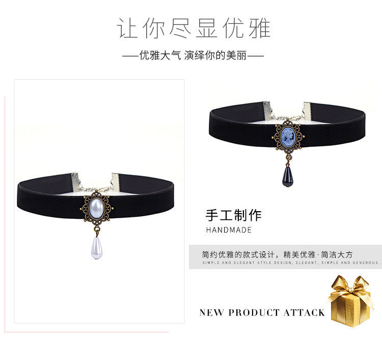 유럽과 미국의 성격 코트 빈티지 크리스탈 목걸이 블랙 벨벳 벨트 나비 뷰티 헤드 워터 드롭 합금 펜던트스토어 가기