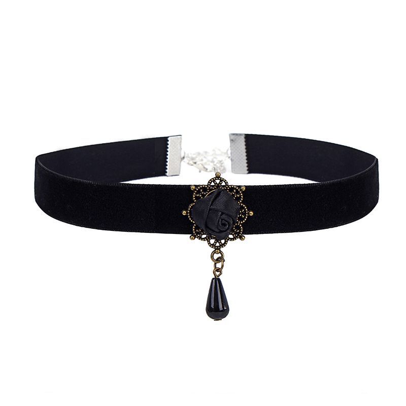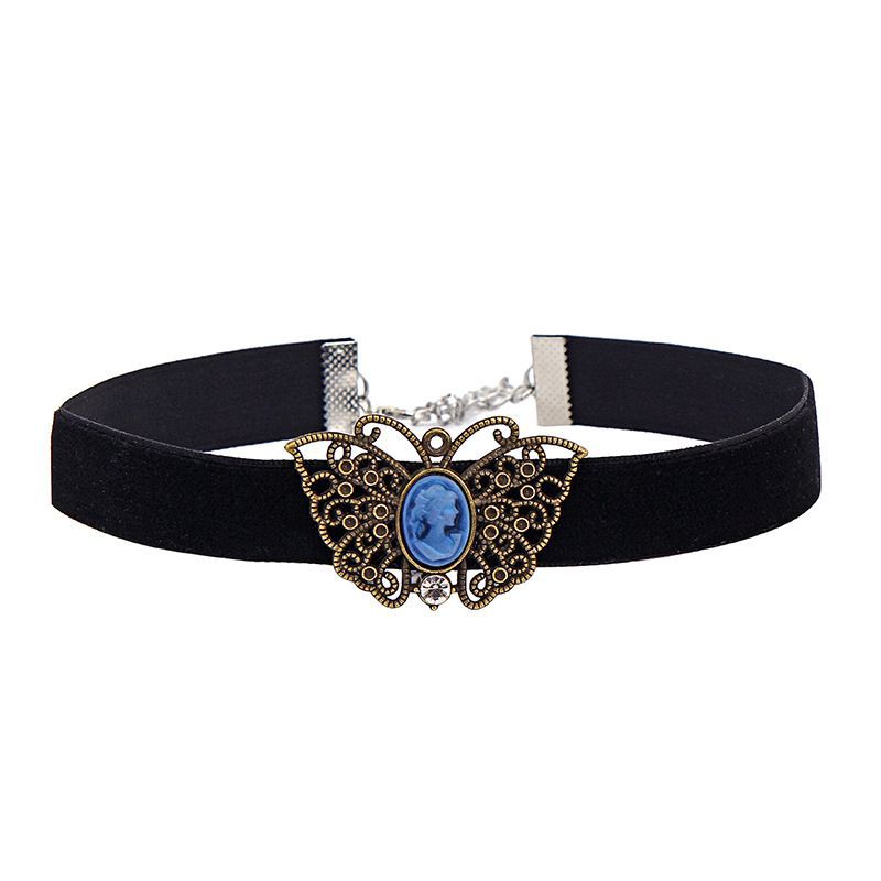 유럽과 미국의 성격 코트 빈티지 크리스탈 목걸이 블랙 벨벳 벨트 나비 뷰티 헤드 워터 드롭 합금 펜던트