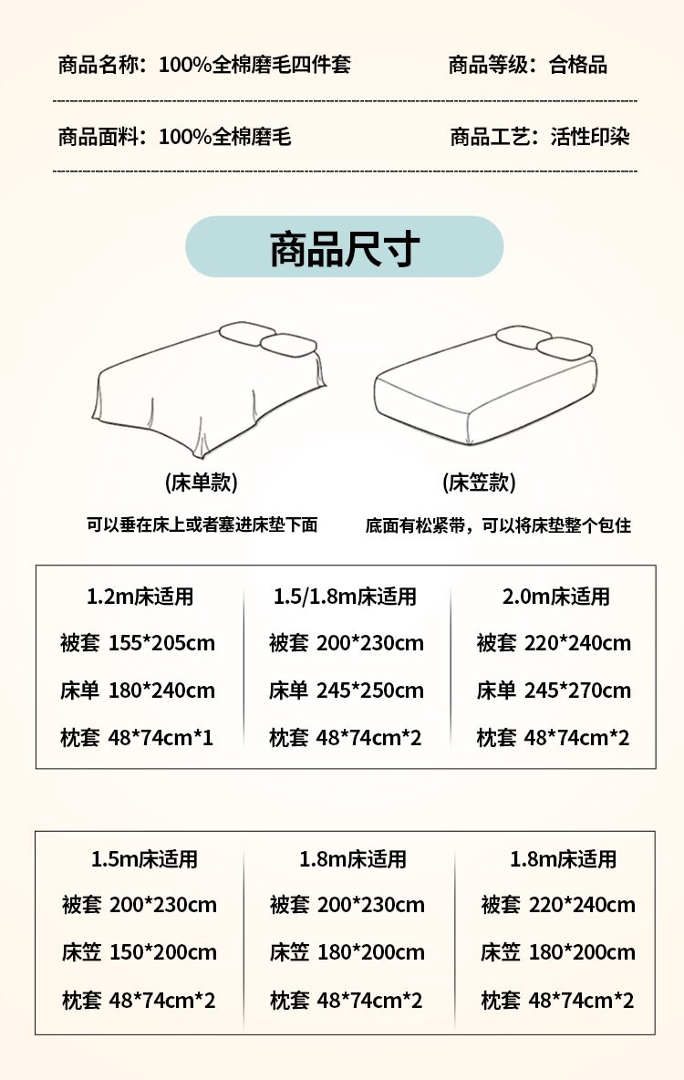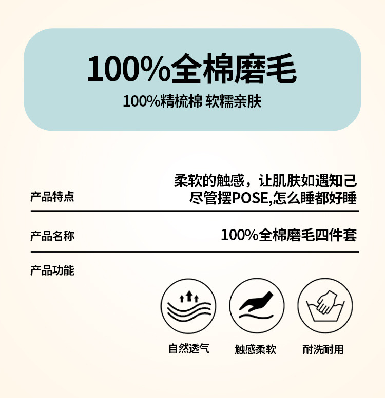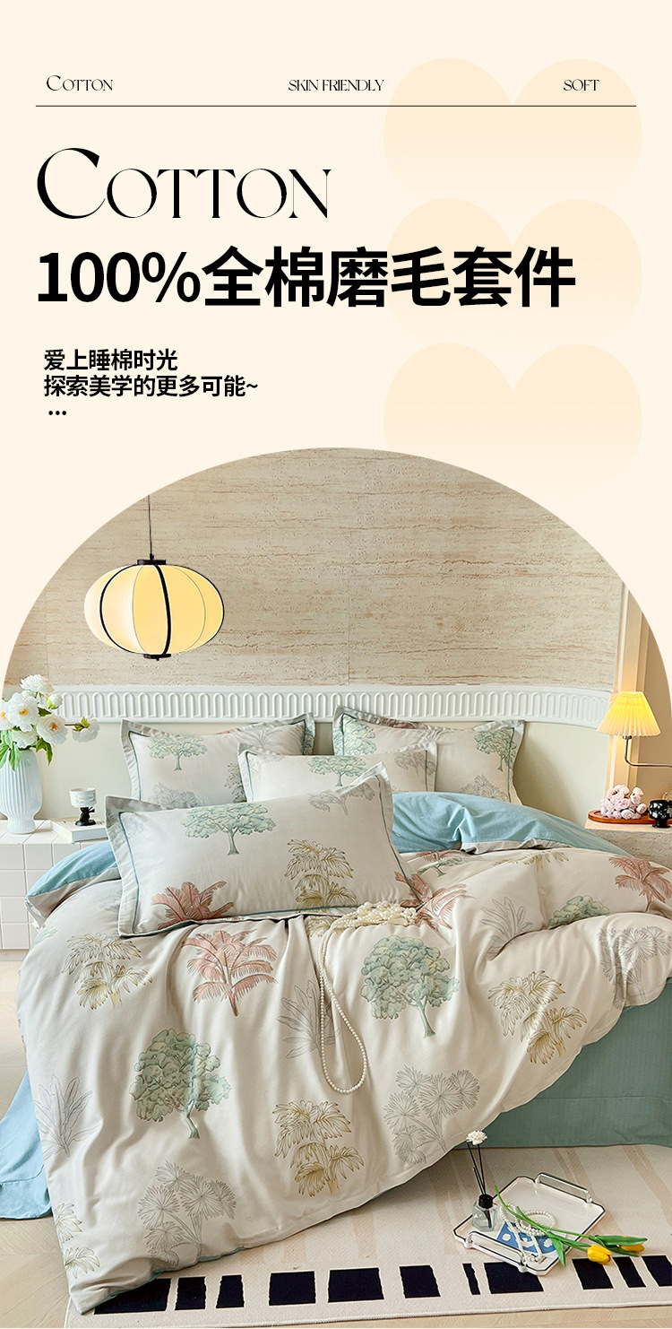 • 1.5m 침대 시트 [이불 커버 200*230cm + 침대 시트 245*250cm + 베개 커버 2개] 4종 세트