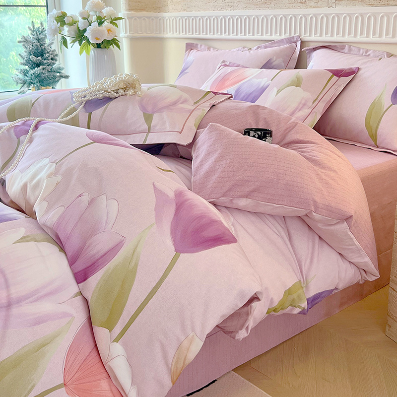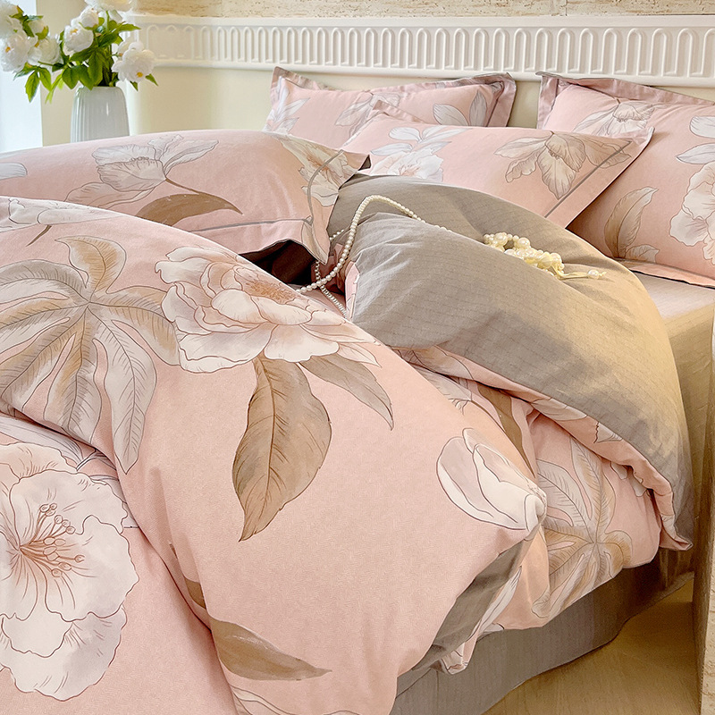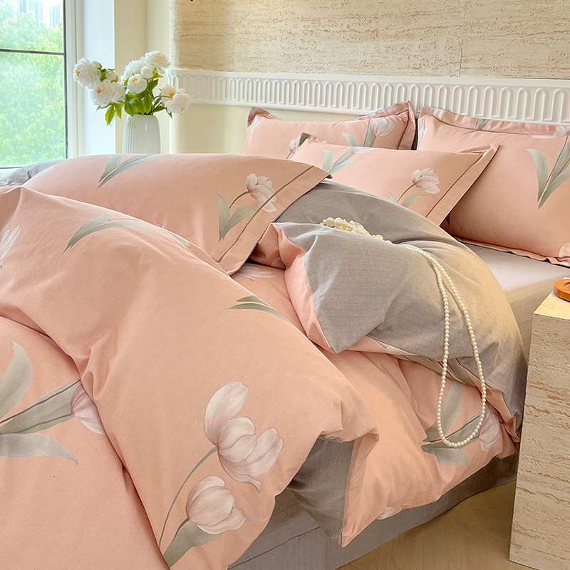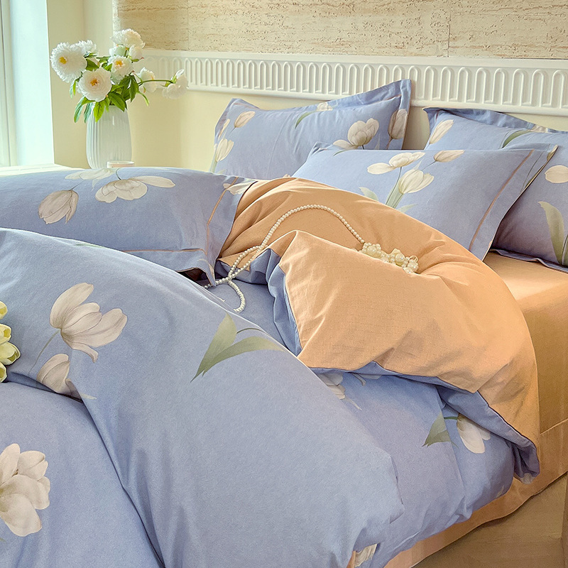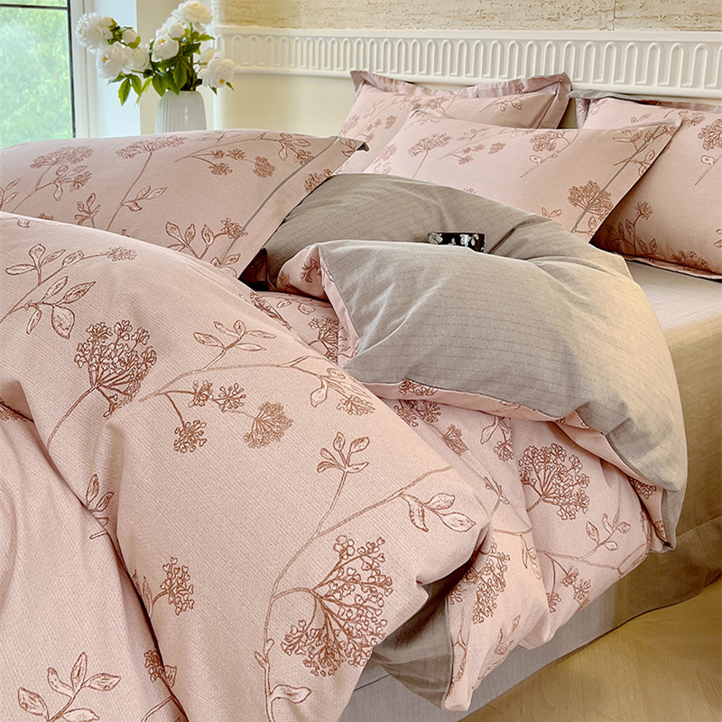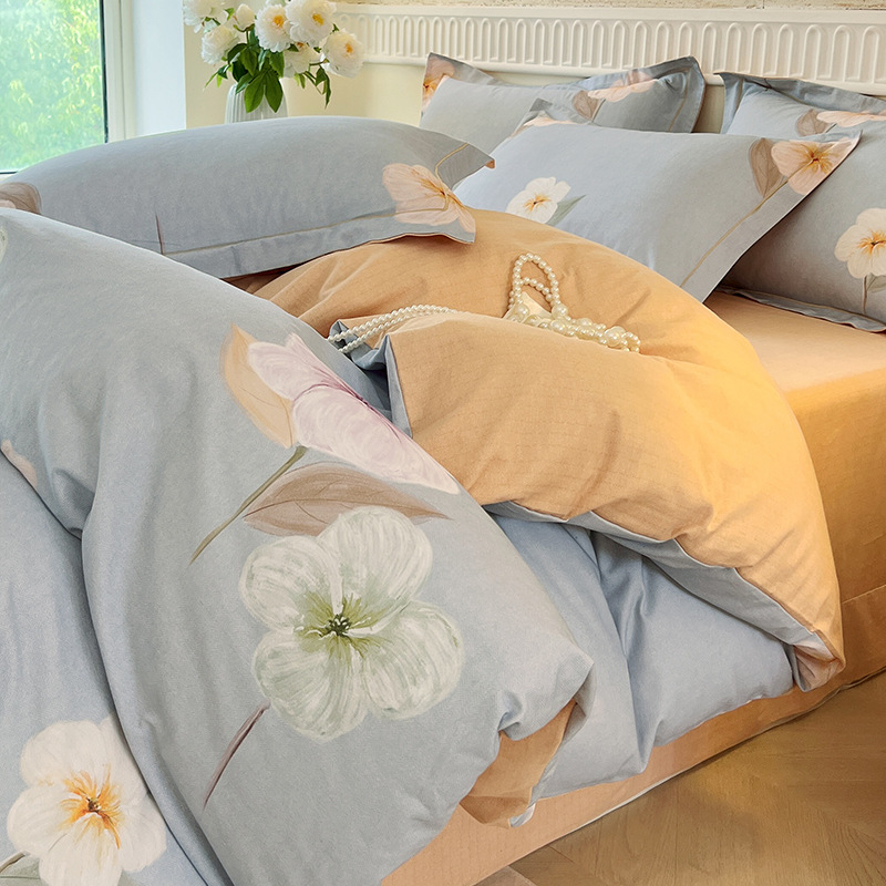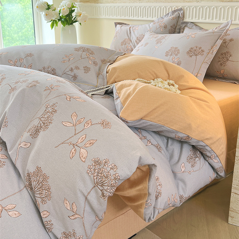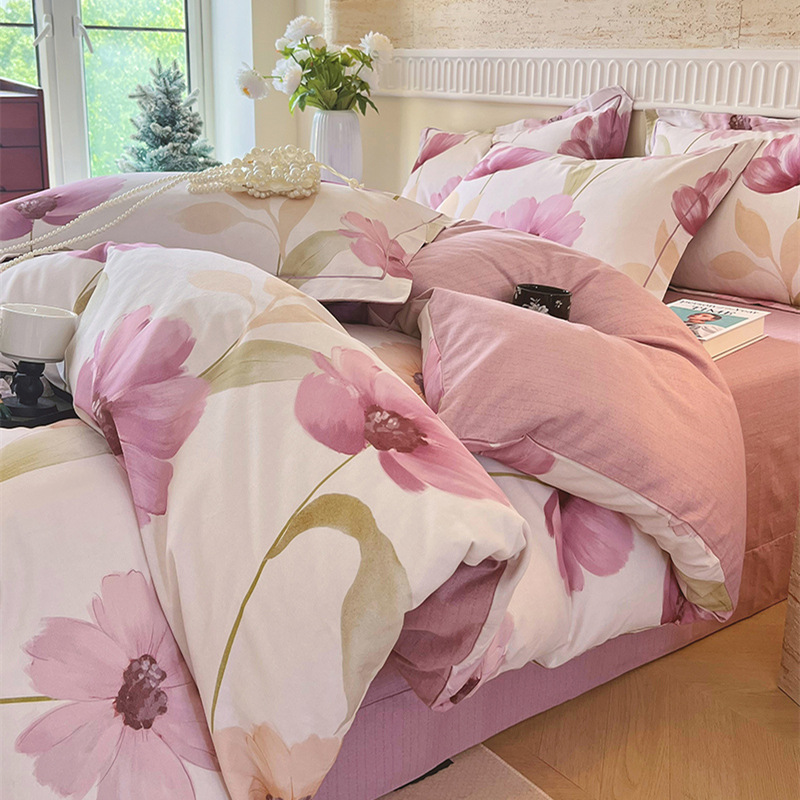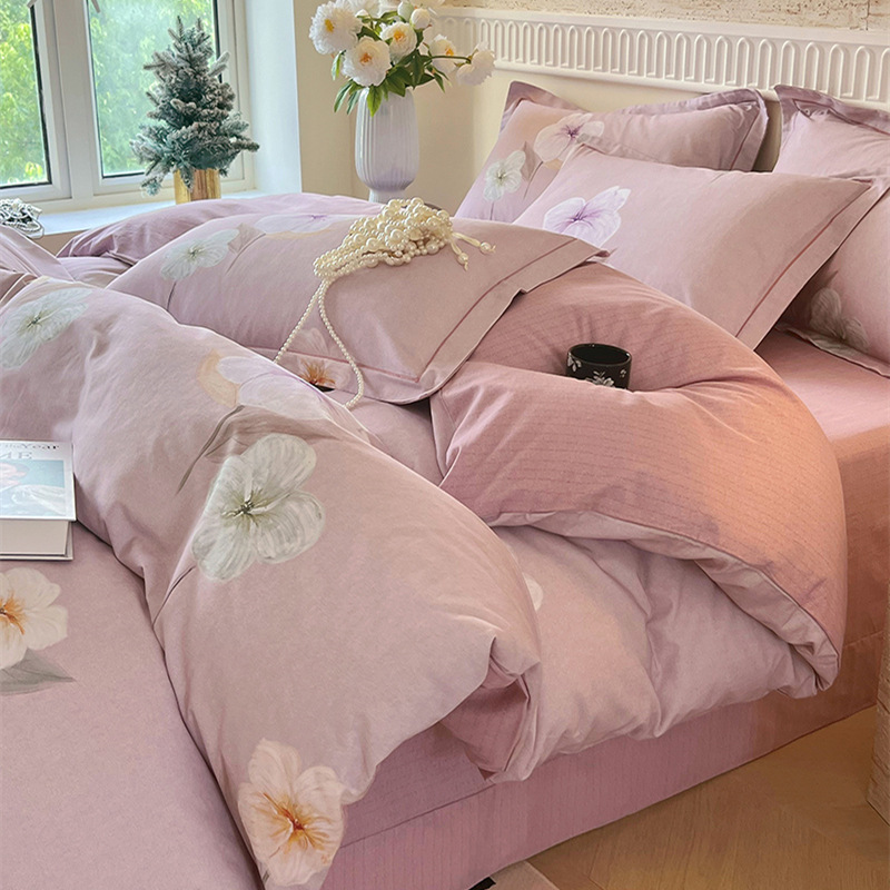 면 신강 면화 침대 4 피스 세트 100 면 두꺼운 샌딩 퀼트 커버 목가적 스타일의 침대 시트 도매