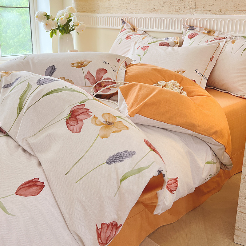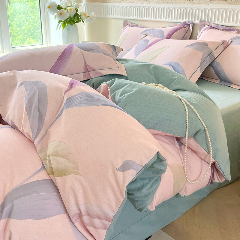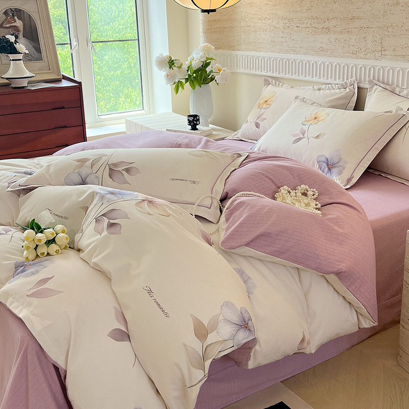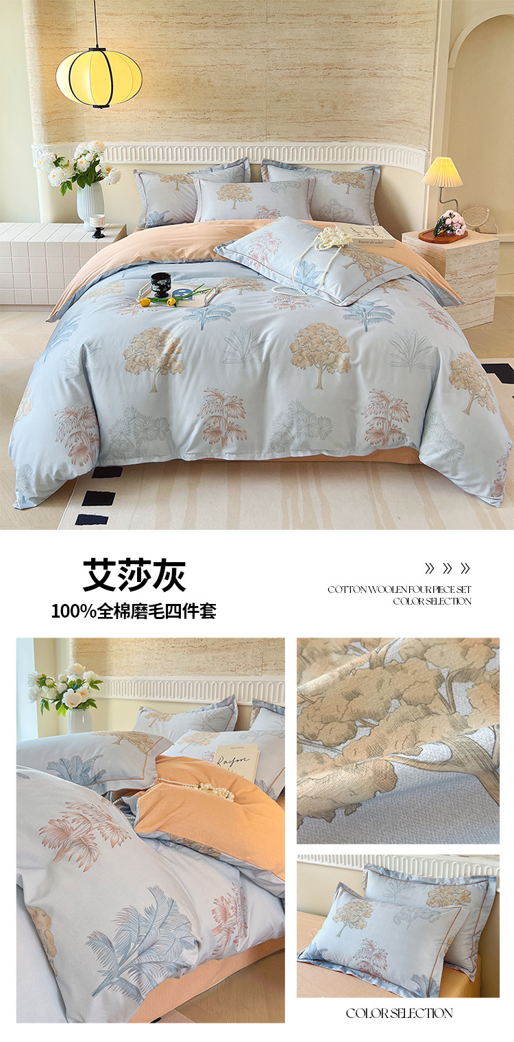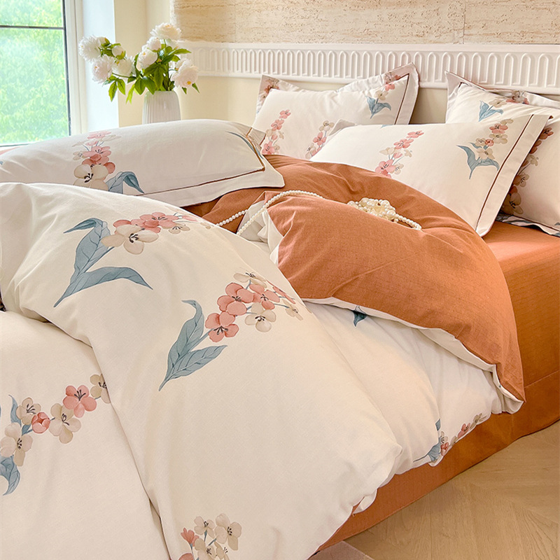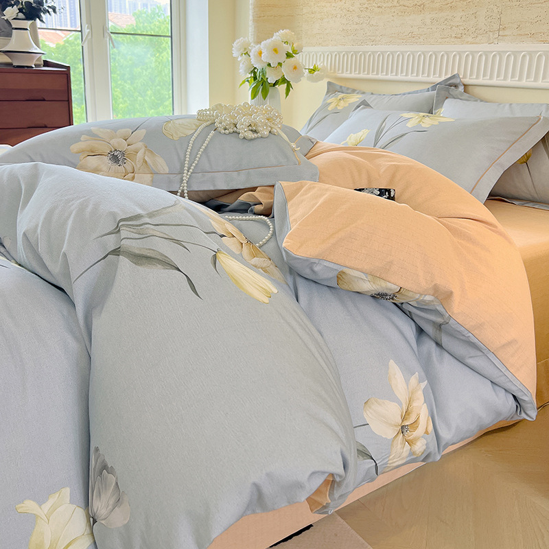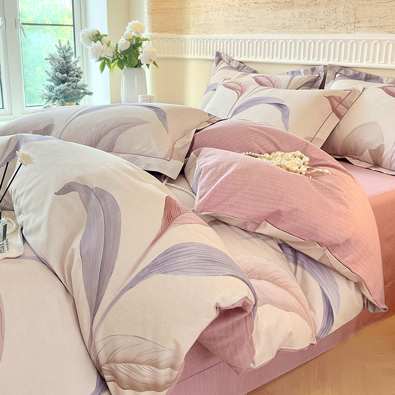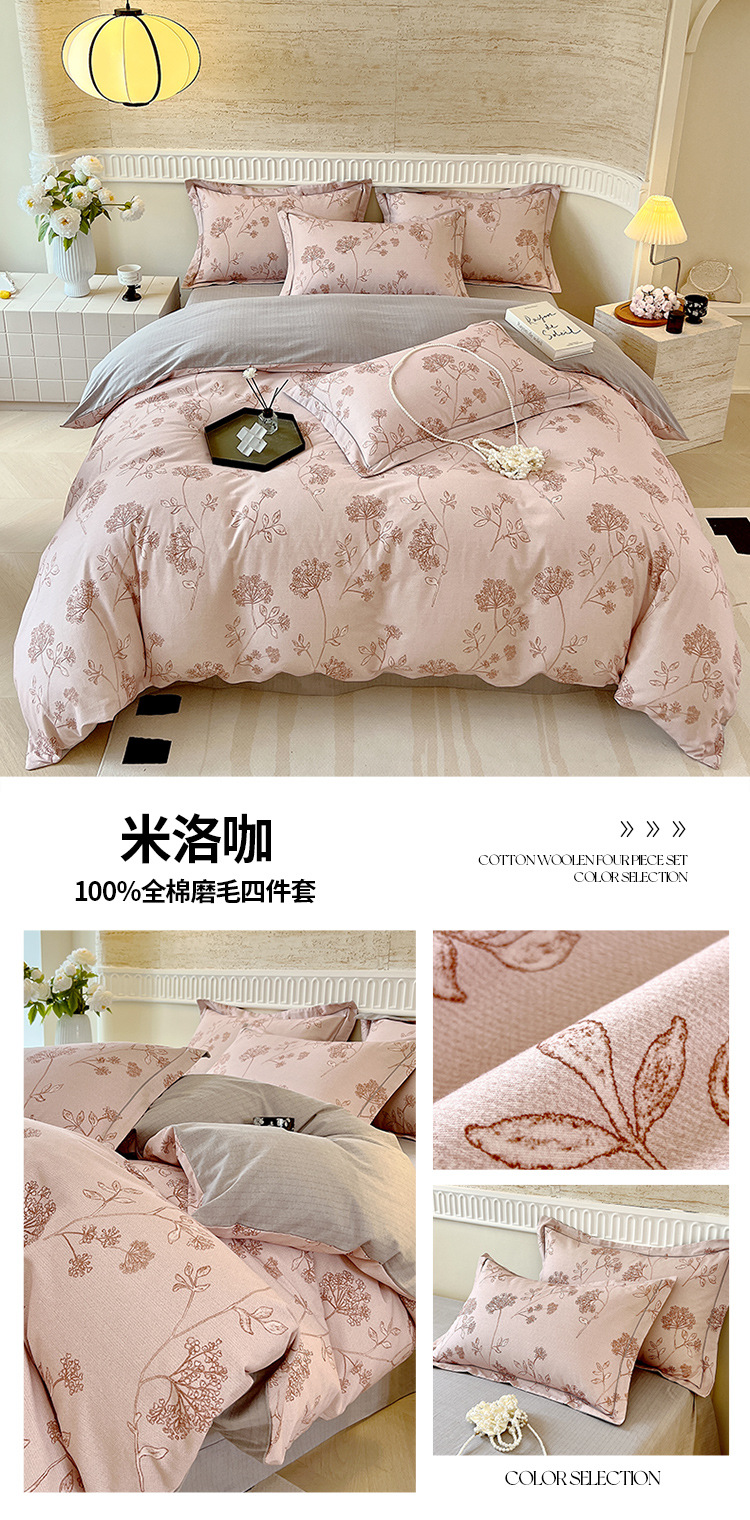 면 신강 면화 침대 4 피스 세트 100 면 두꺼운 샌딩 퀼트 커버 목가적 스타일의 침대 시트 도매