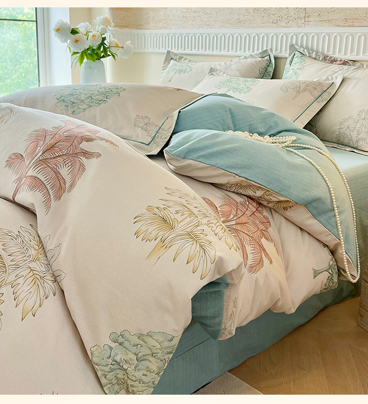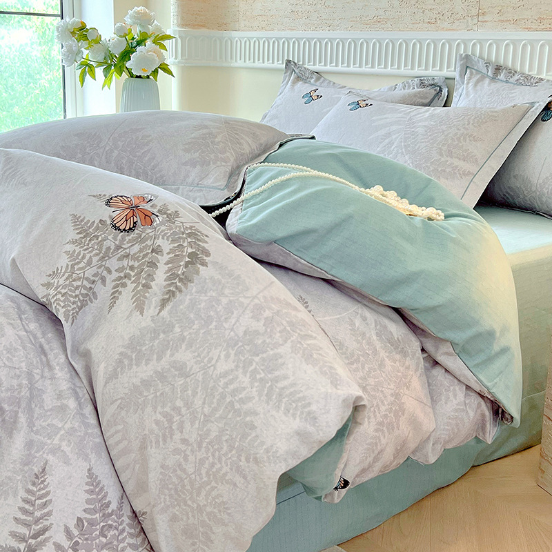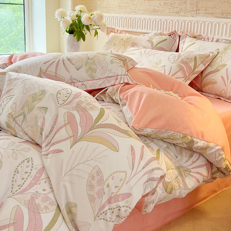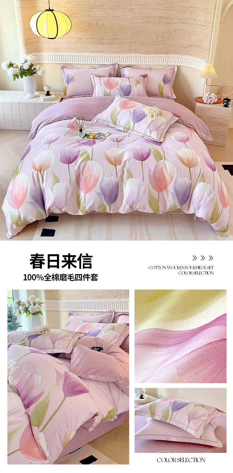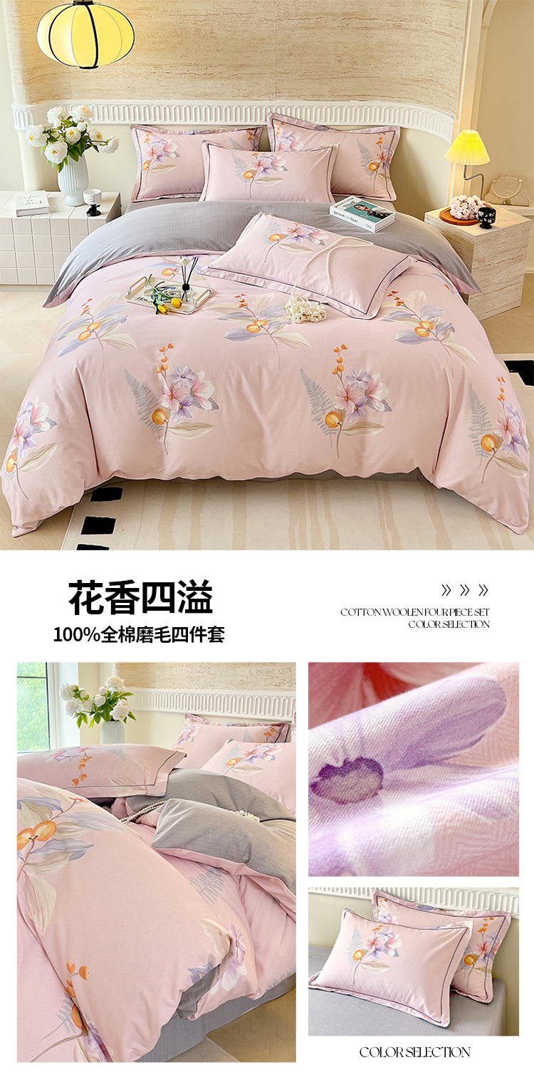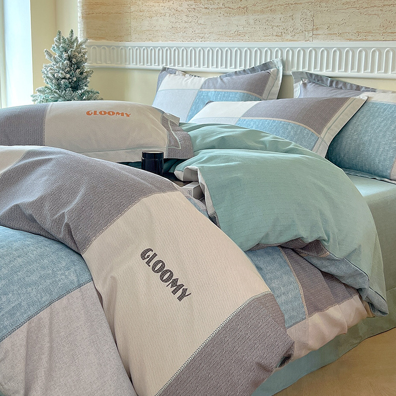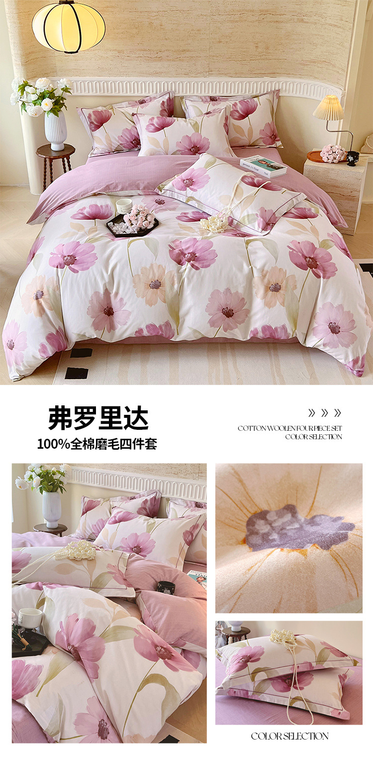 면 신강 면화 침대 4 피스 세트 100 면 두꺼운 샌딩 퀼트 커버 목가적 스타일의 침대 시트 도매