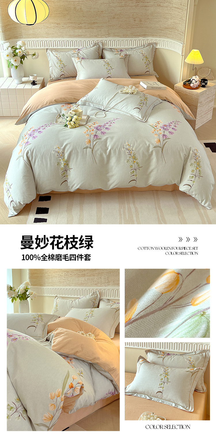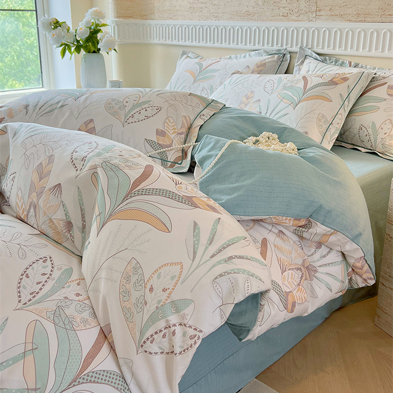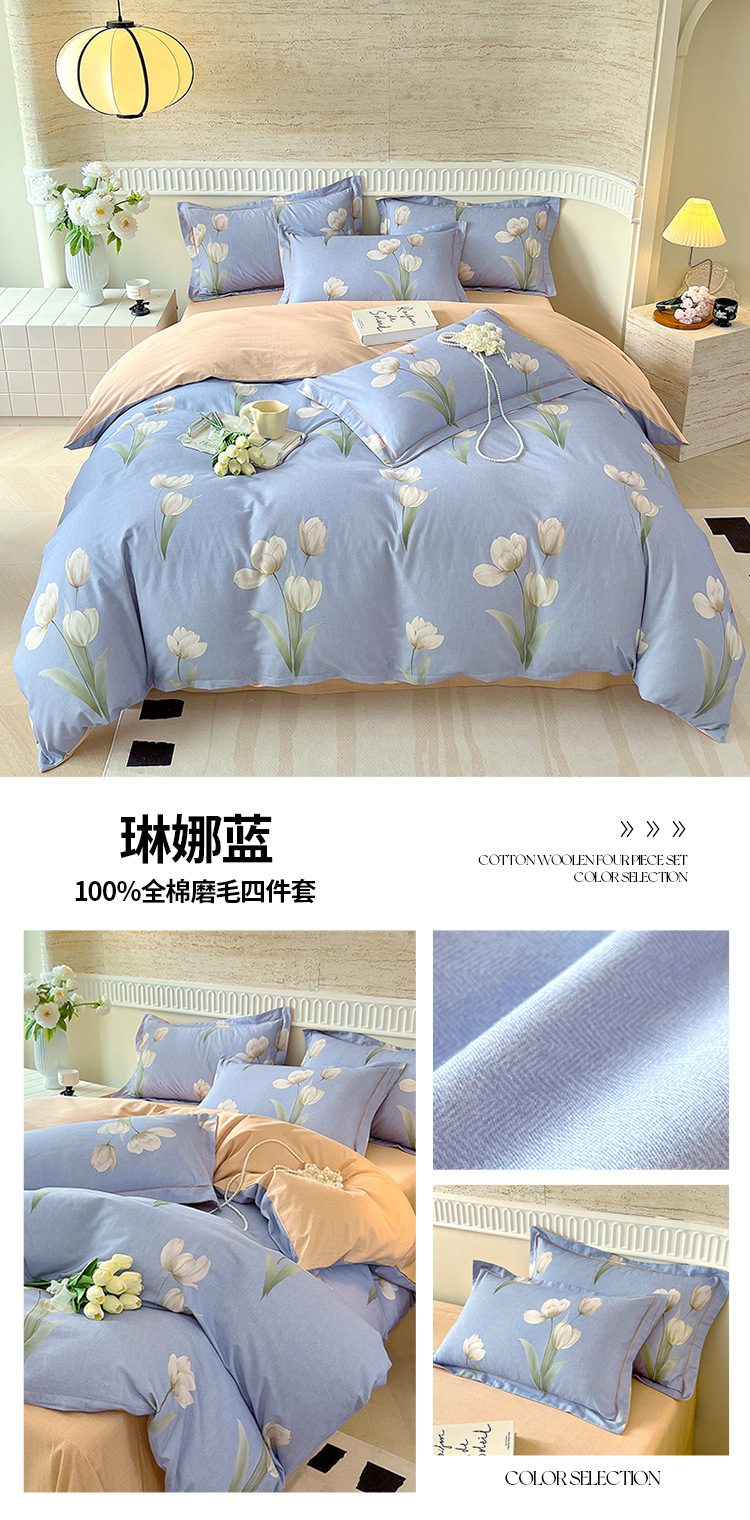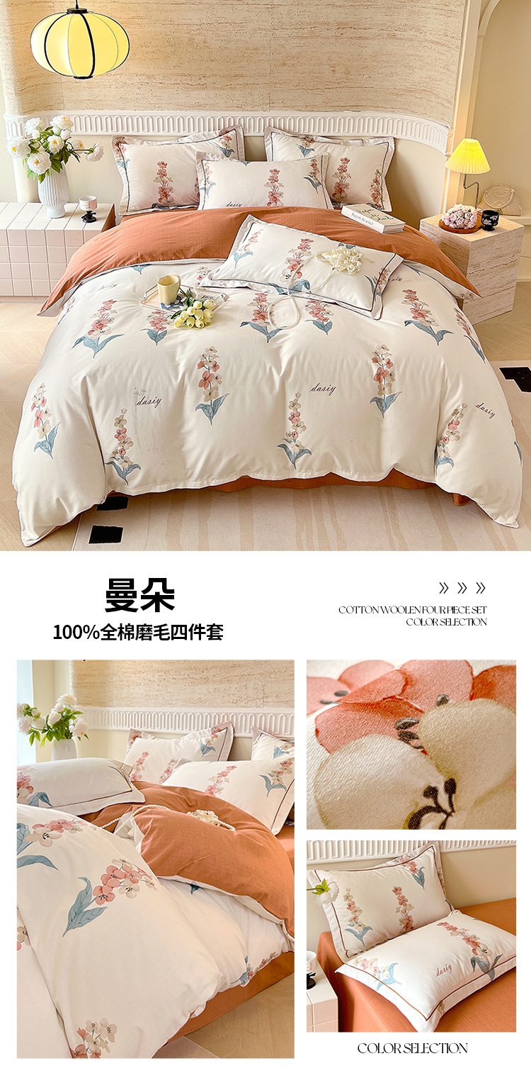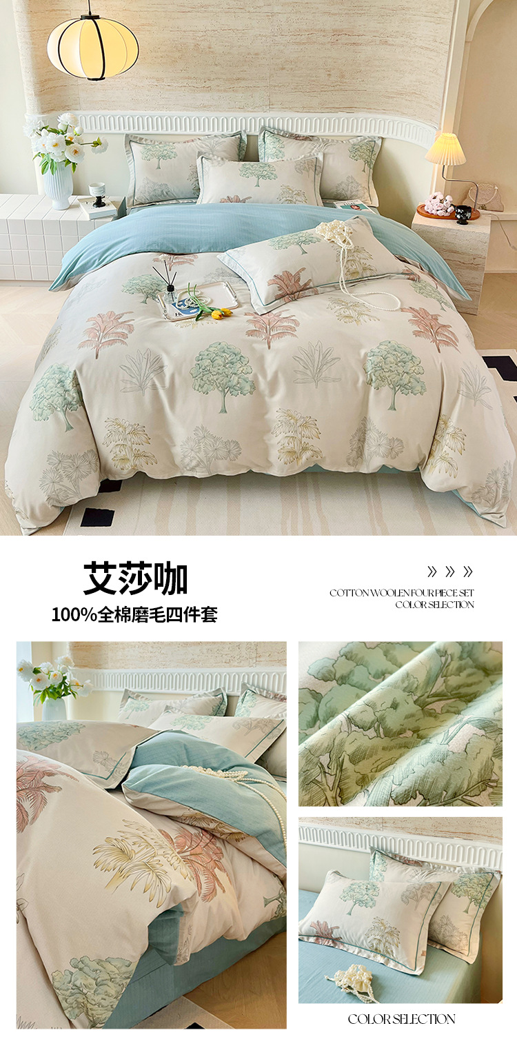 면 신강 면화 침대 4 피스 세트 100 면 두꺼운 샌딩 퀼트 커버 목가적 스타일의 침대 시트 도매스토어 가기