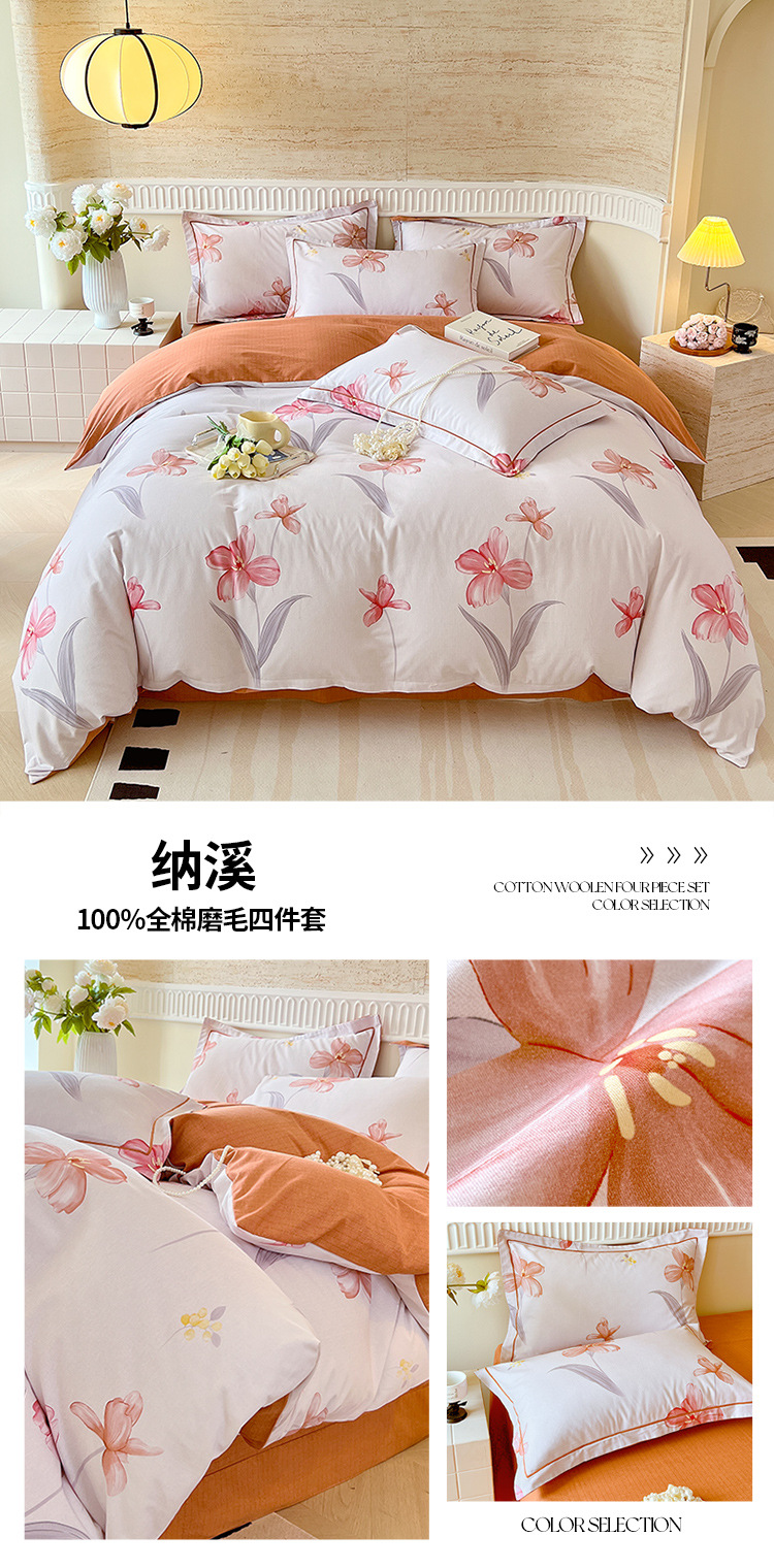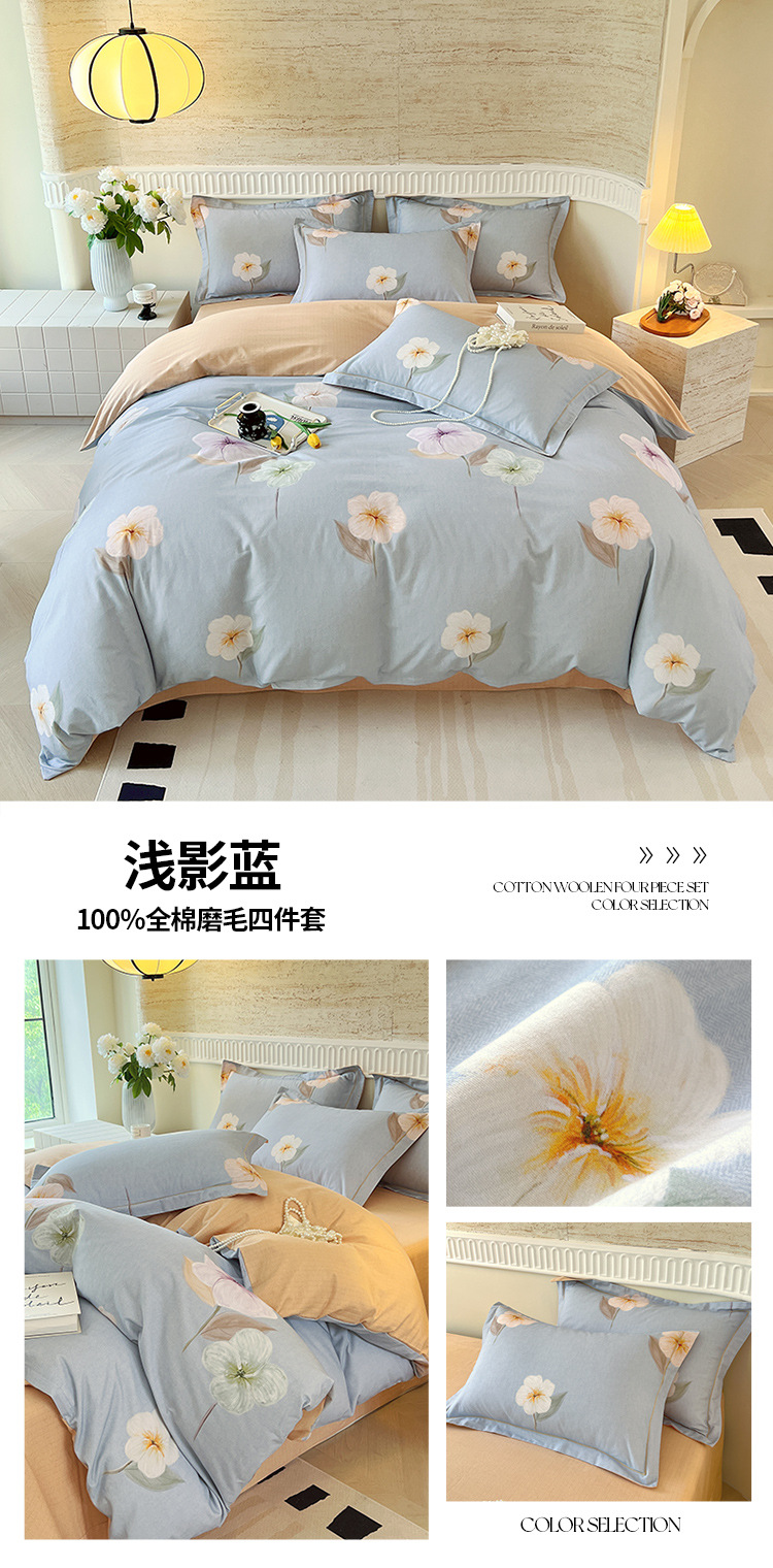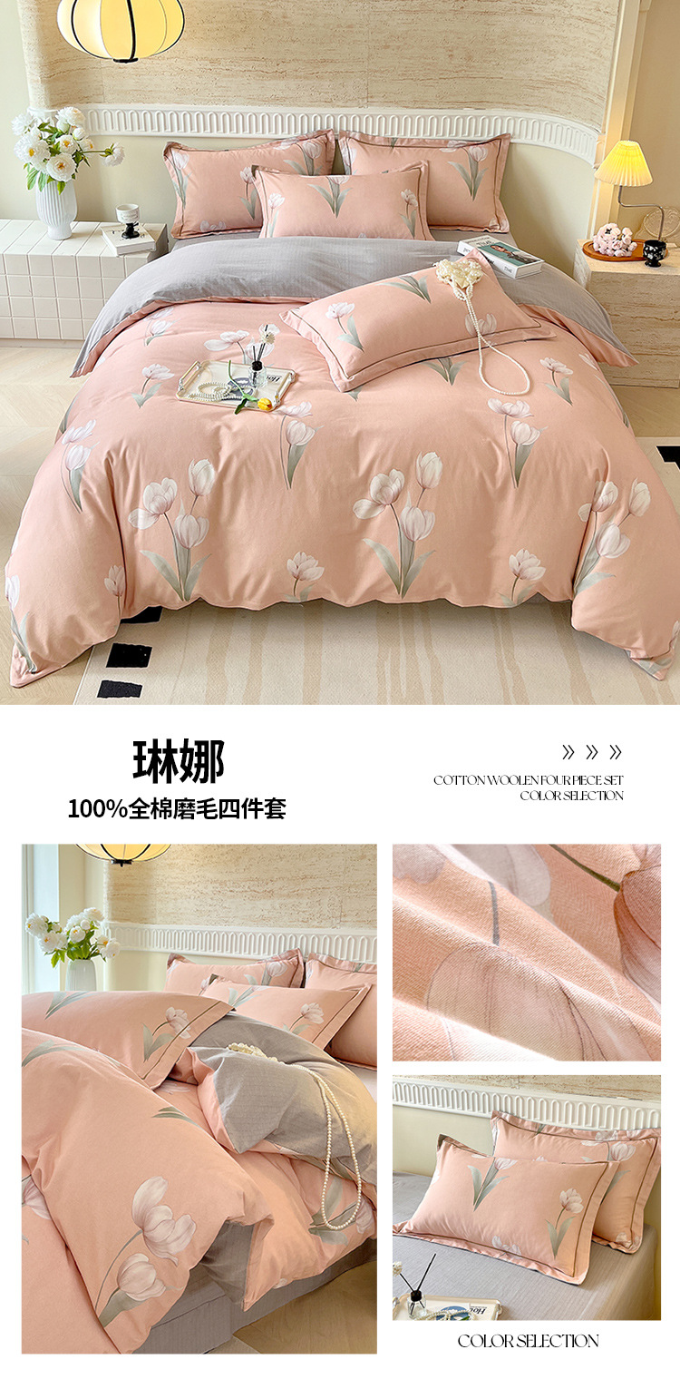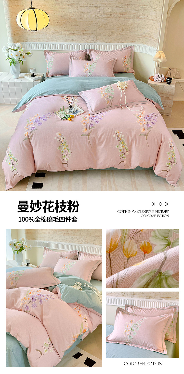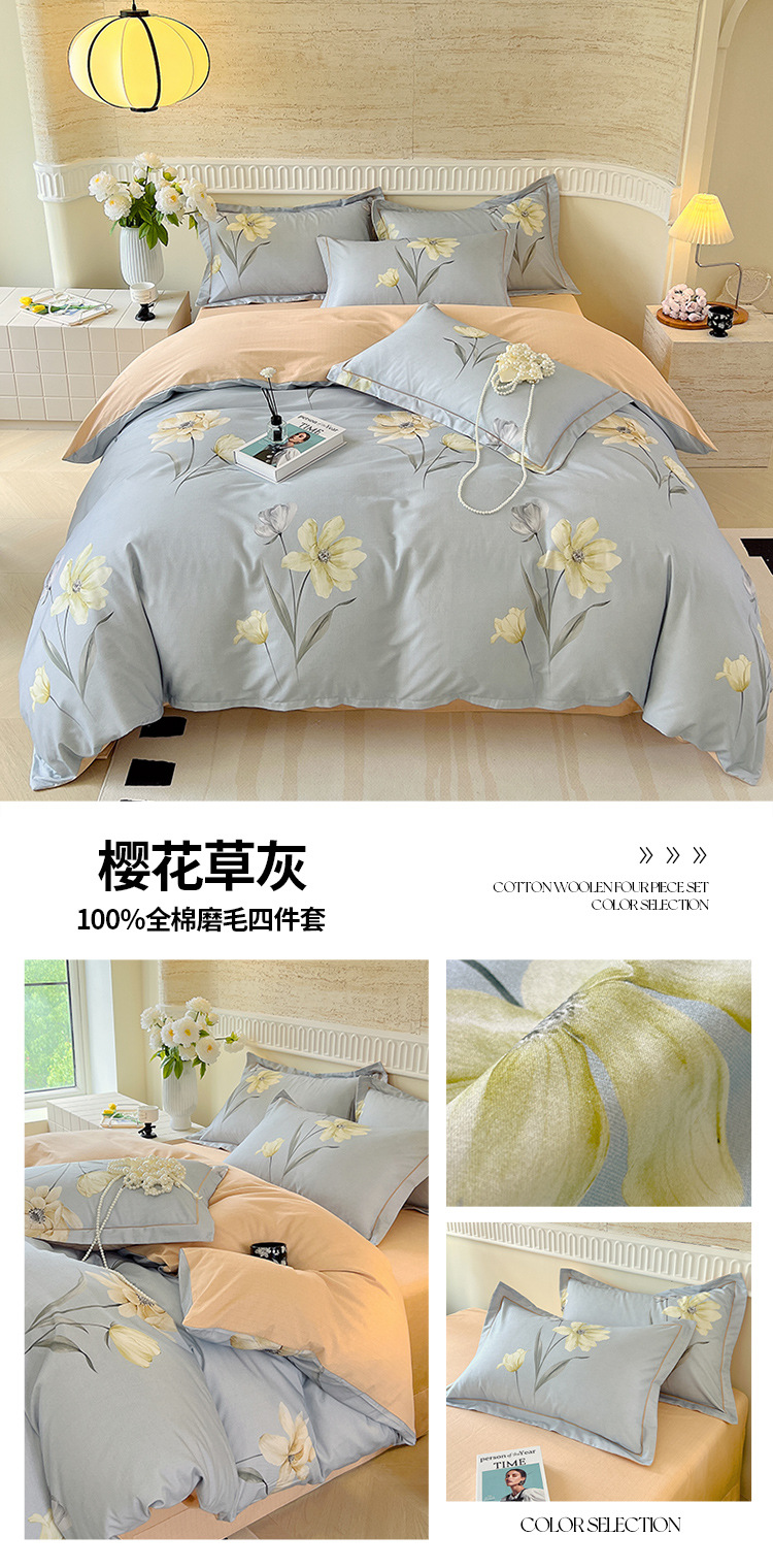 면 신강 면화 침대 4 피스 세트 100 면 두꺼운 샌딩 퀼트 커버 목가적 스타일의 침대 시트 도매스토어 가기