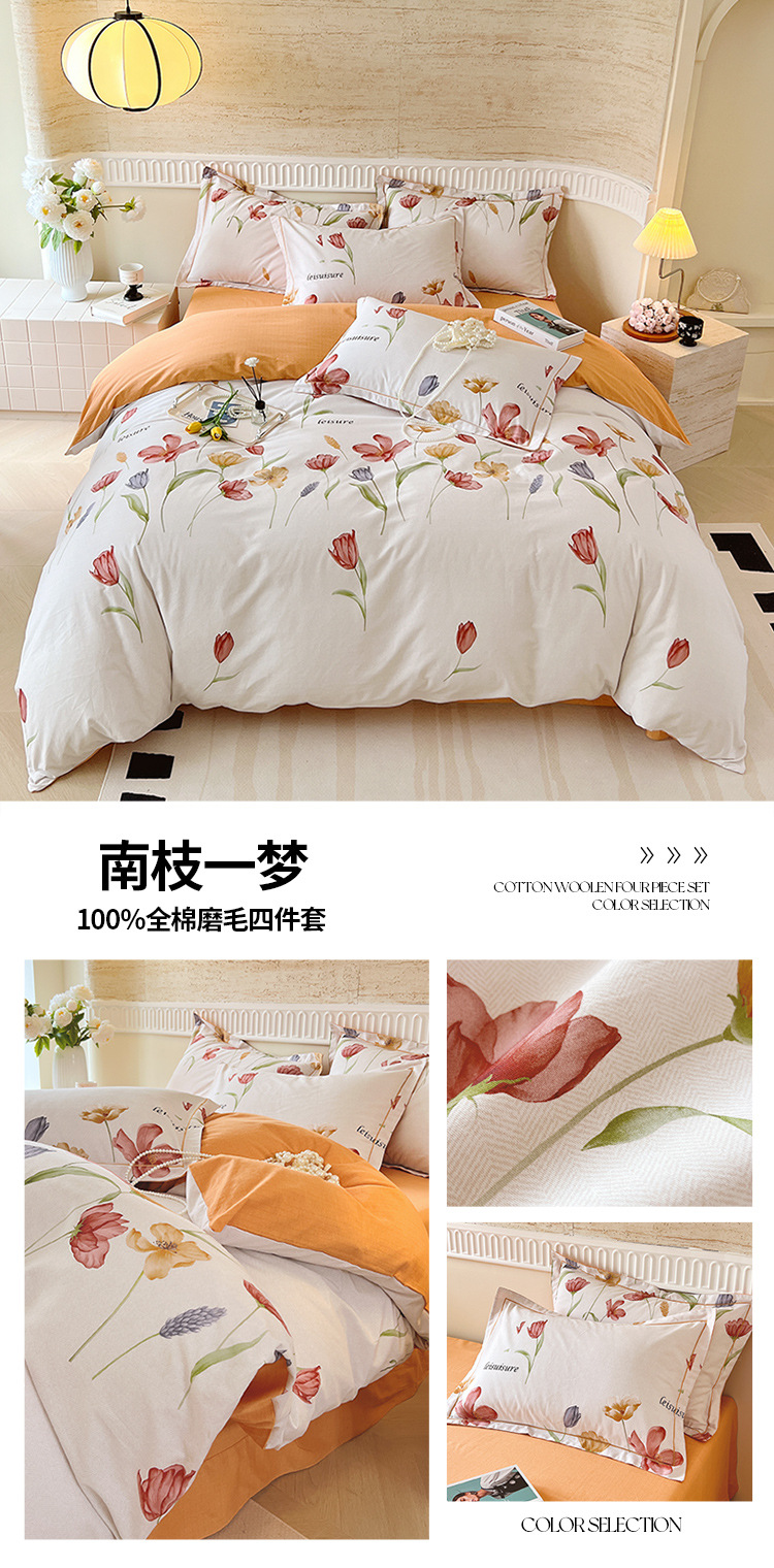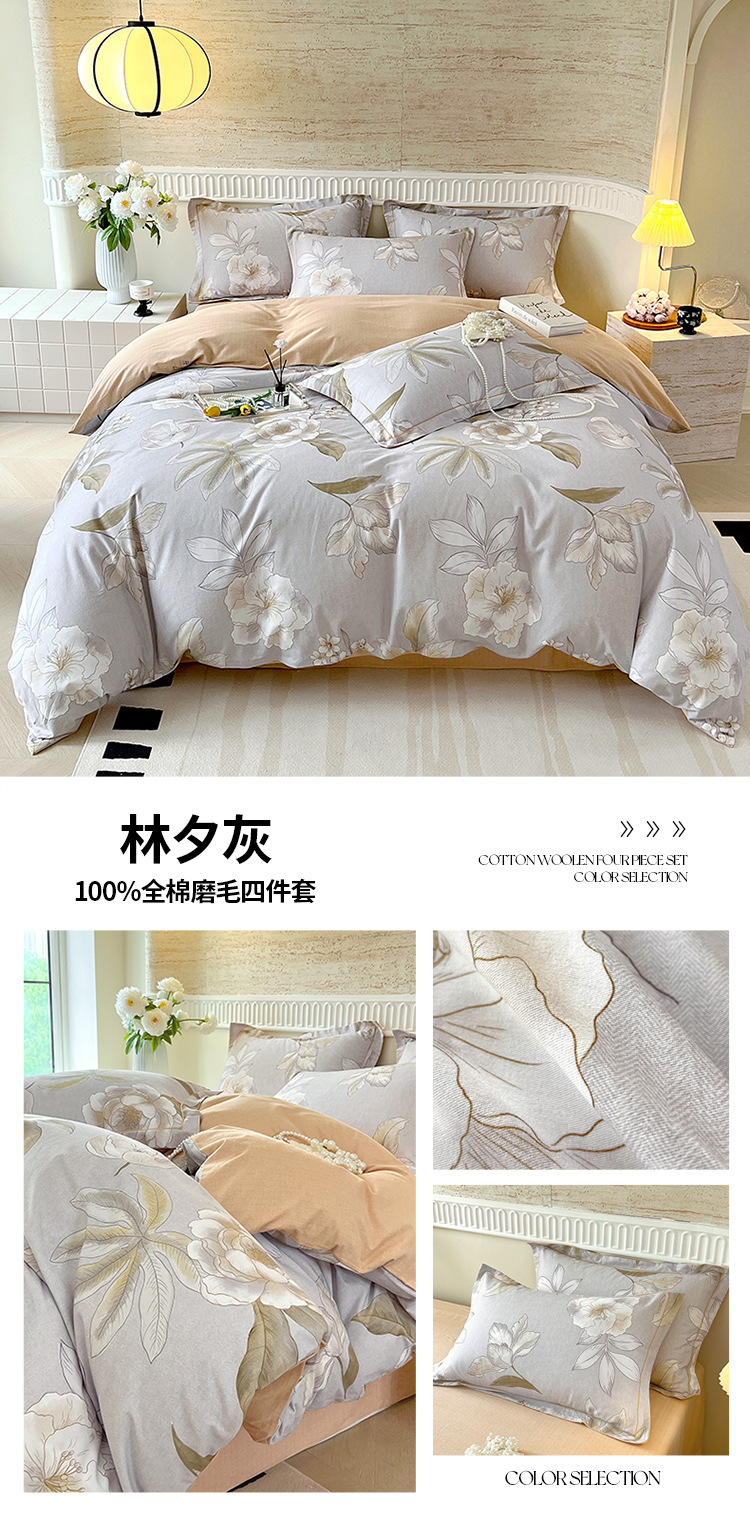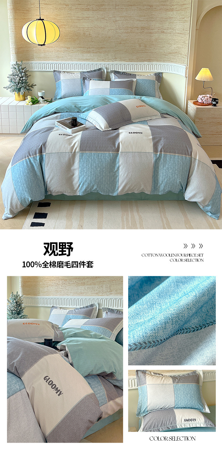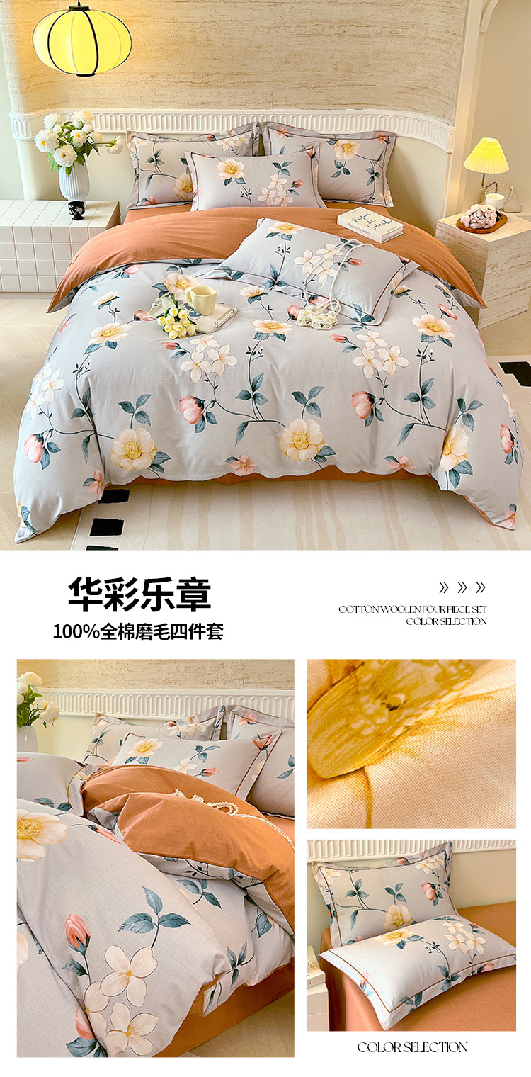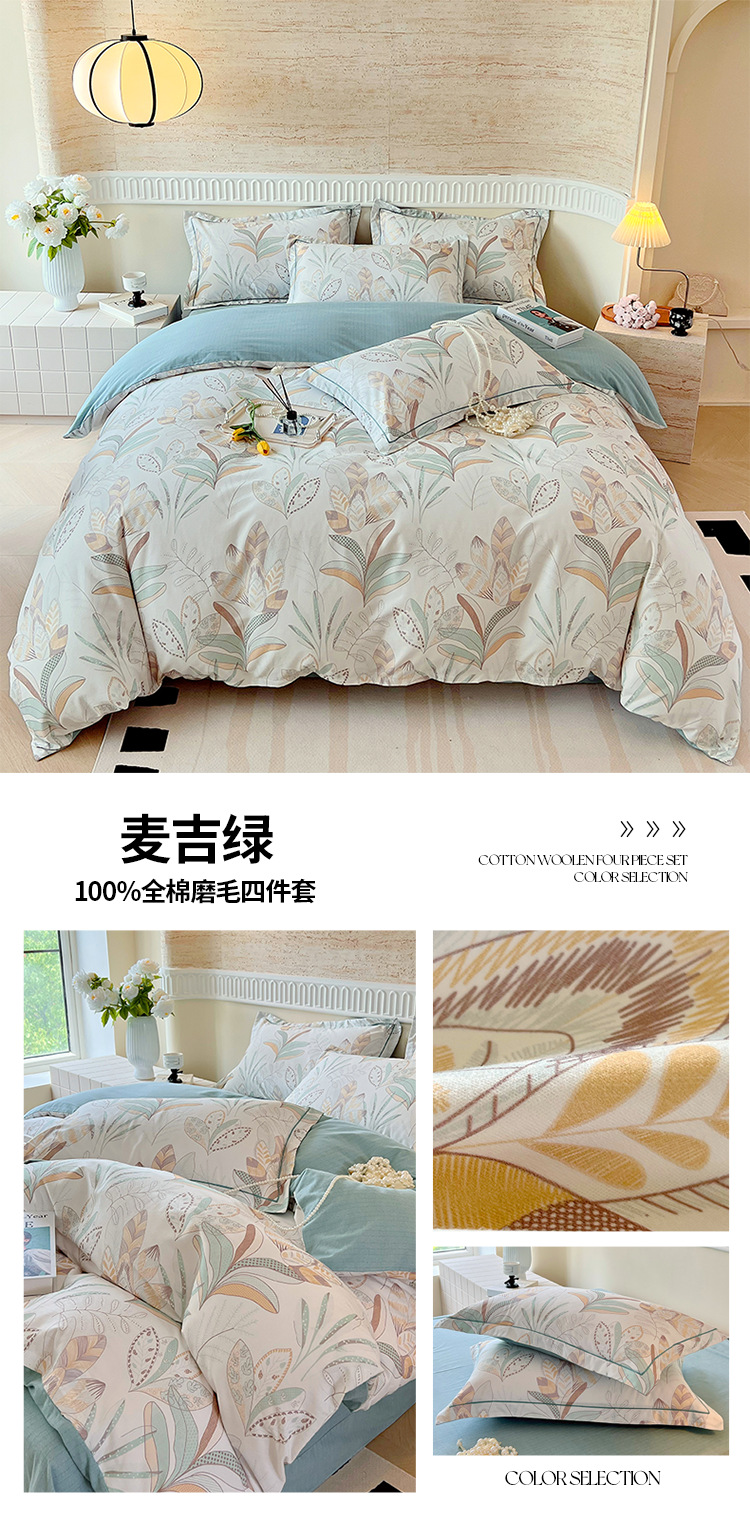 면 신강 면화 침대 4 피스 세트 100 면 두꺼운 샌딩 퀼트 커버 목가적 스타일의 침대 시트 도매스토어 가기