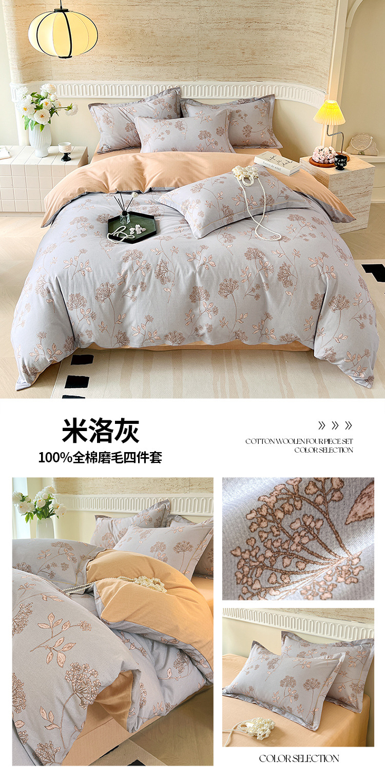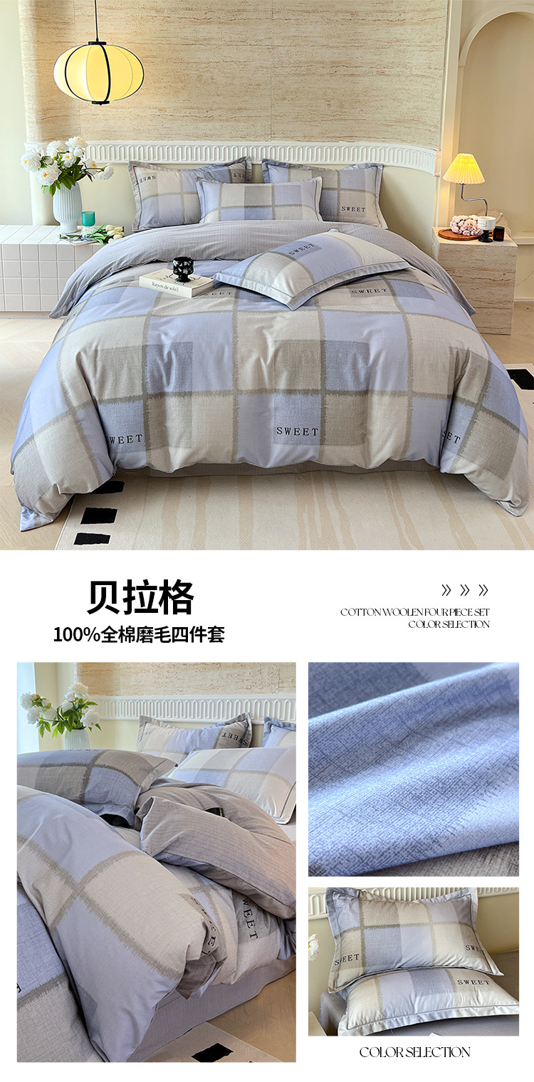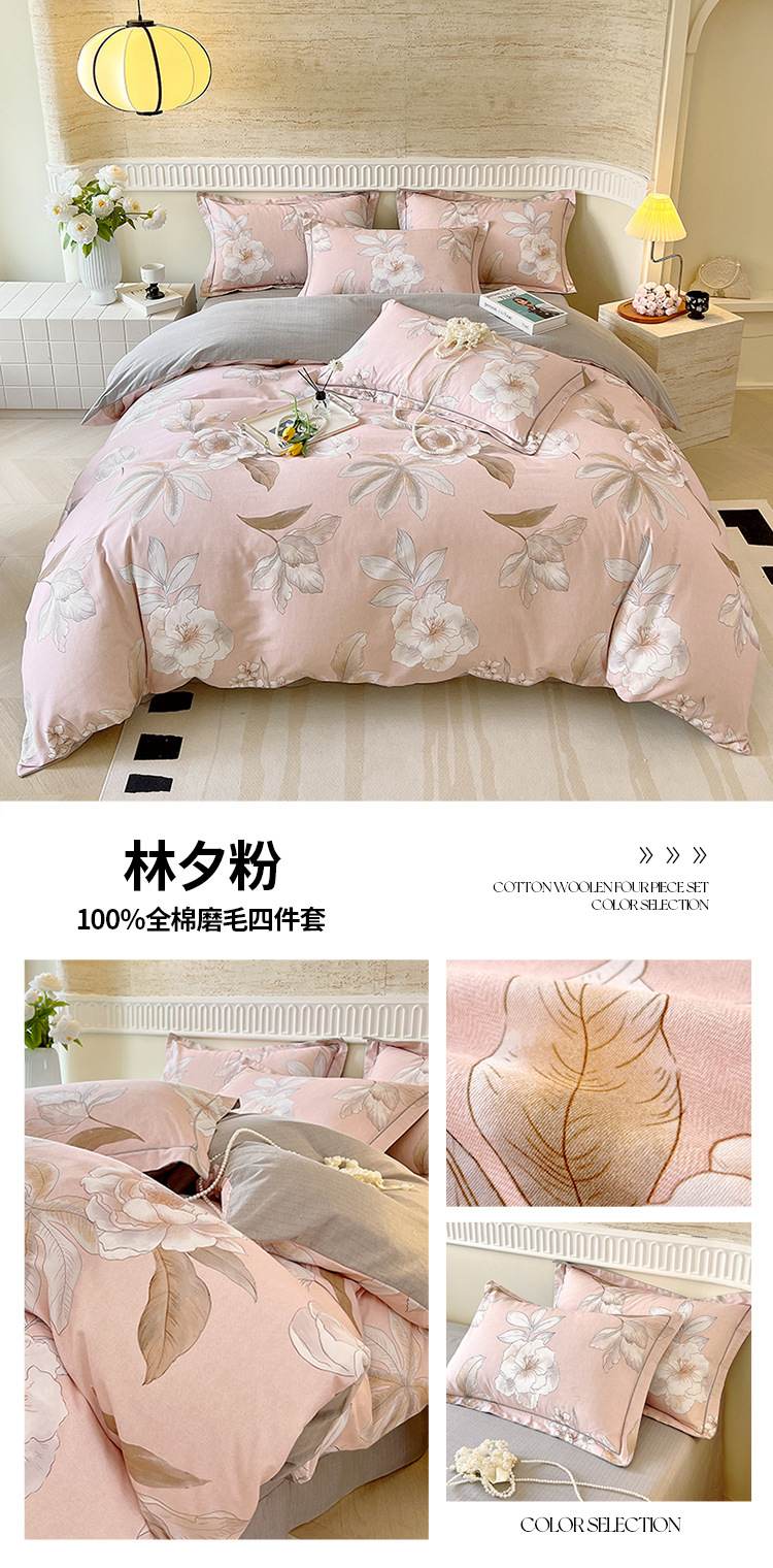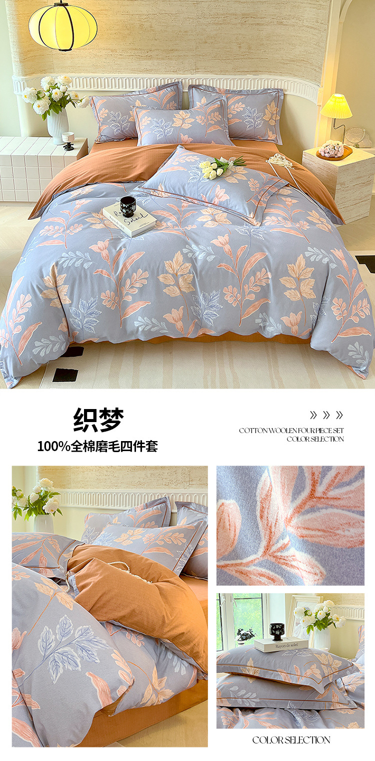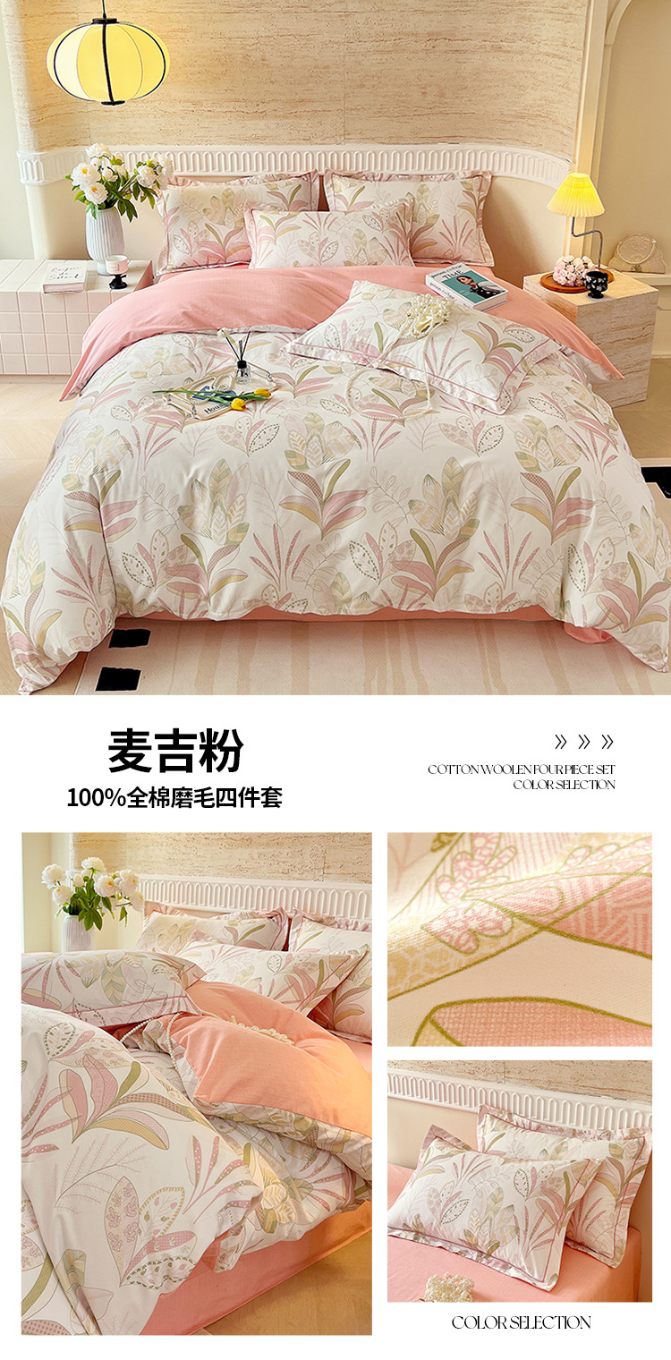 면 신강 면화 침대 4 피스 세트 100 면 두꺼운 샌딩 퀼트 커버 목가적 스타일의 침대 시트 도매스토어 가기