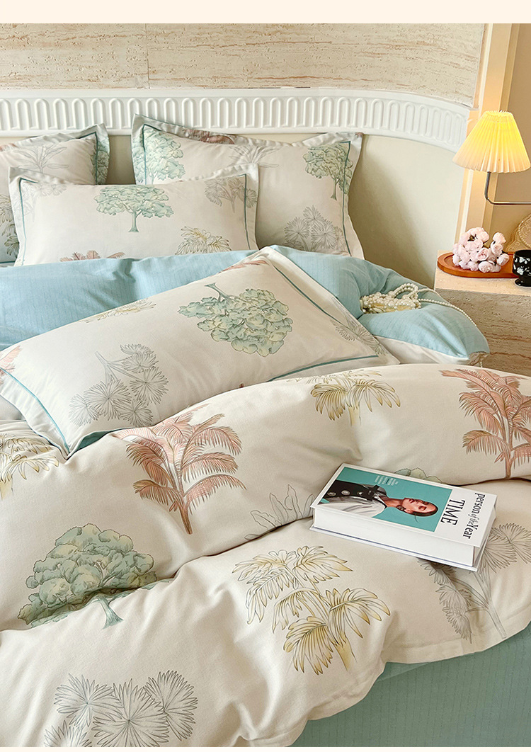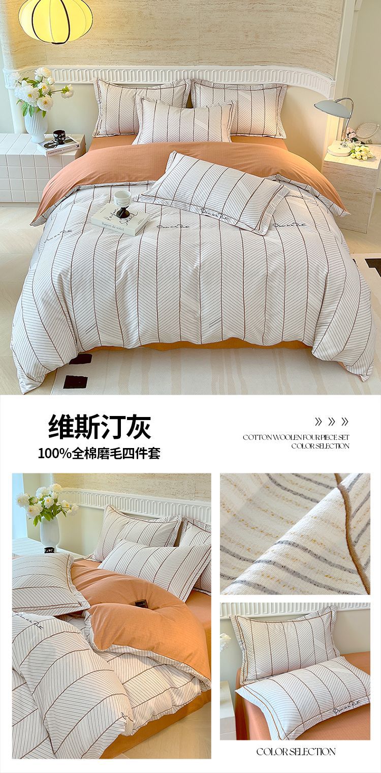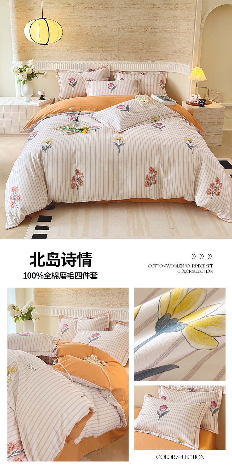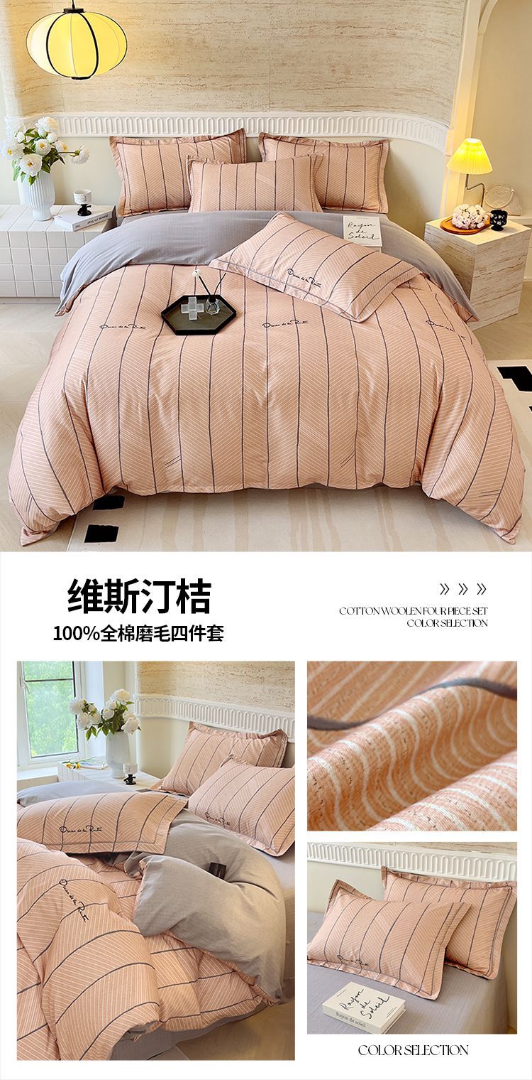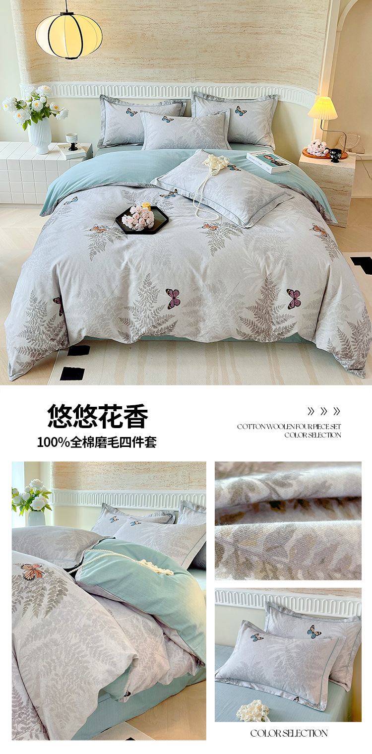 면 신강 면화 침대 4 피스 세트 100 면 두꺼운 샌딩 퀼트 커버 목가적 스타일의 침대 시트 도매스토어 가기