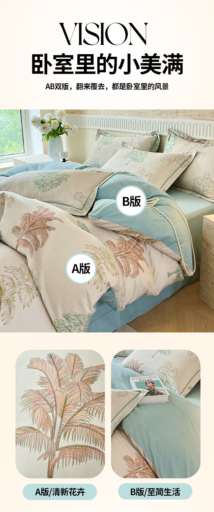 • 1.8m 침대 시트 [이불 커버 200*230cm + 침대 시트 245*250cm + 베개 커버 2개] 4종 세트