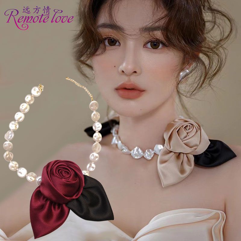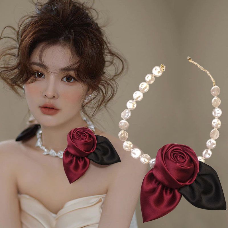 먼 사랑 프랑스 딸 장미 목걸이 우아한 헵번 신부 쇄골 체인 레트로 코트 액세서리 N390