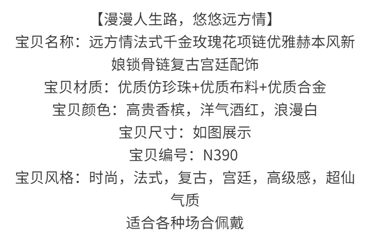 먼 사랑 프랑스 딸 장미 목걸이 우아한 헵번 신부 쇄골 체인 레트로 코트 액세서리 N390스토어 가기