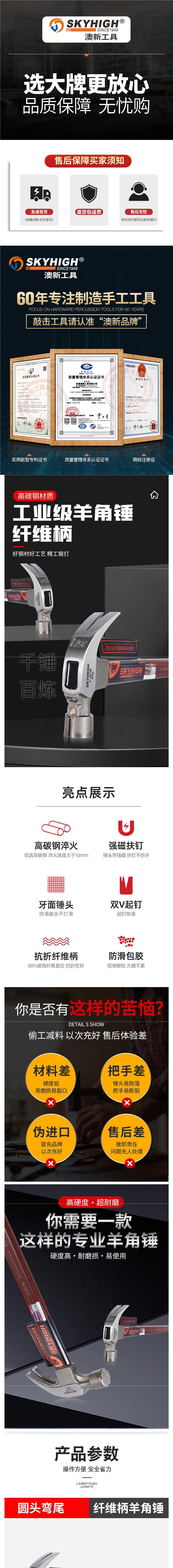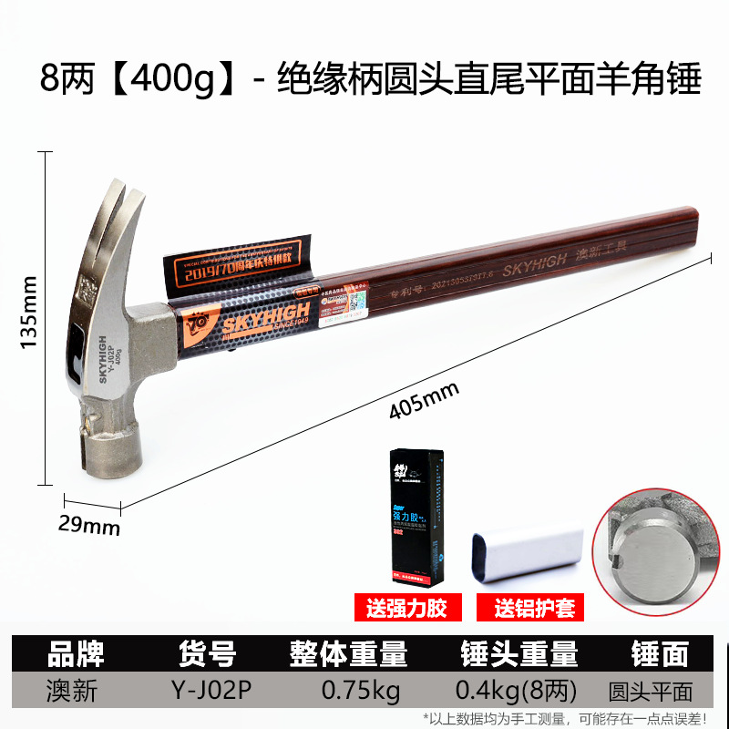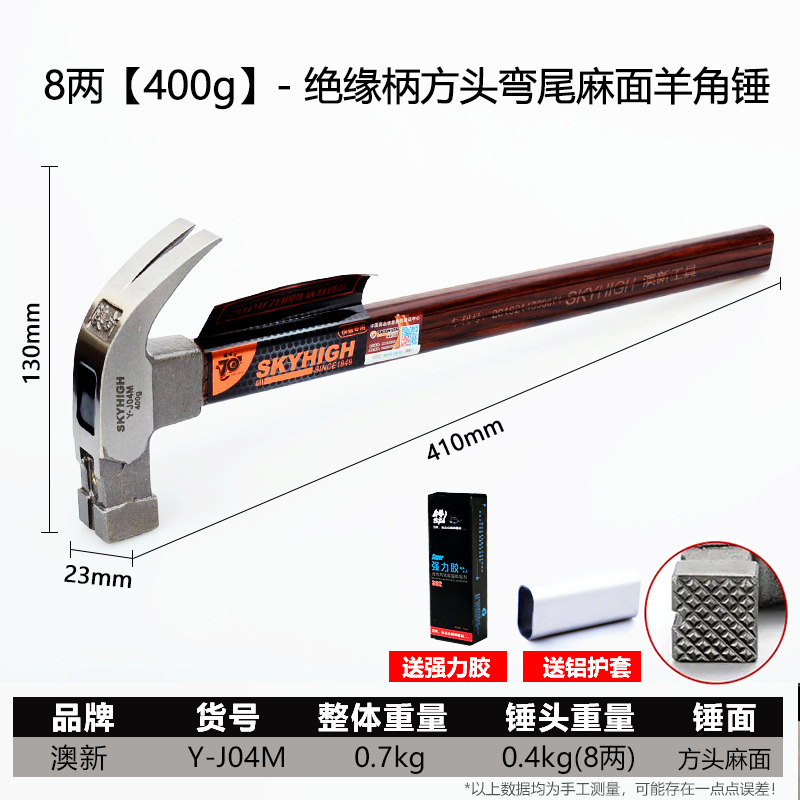 새로운 정품 호주와 뉴질랜드 클로 해머 높은 탄소 강철 사각형 헤드 라운드 헤드 클로 해머 해머 건설 현장스토어 가기