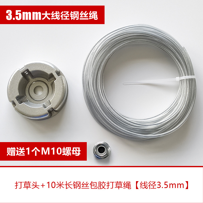 • 강화되고 두꺼워진 보호 커버 트리밍 헤드 + 10m 강철 와이어 트리밍 로프 [와이어 직경 3.5mm] [무료 M10 고정 너트]
