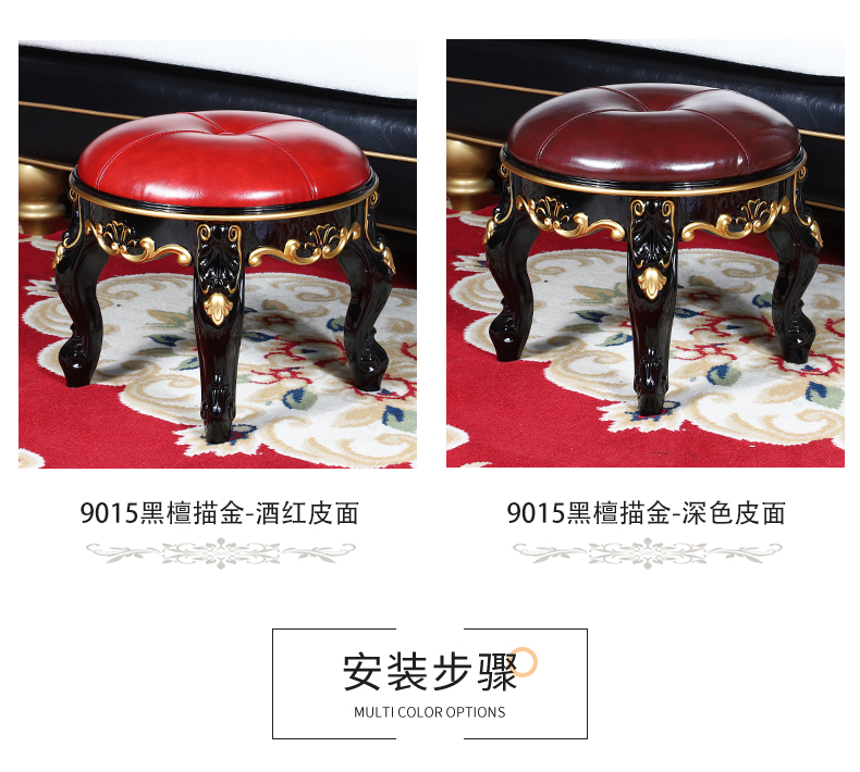 • 【9015】블랙 샌달우드 골드 페인팅 + 다크 가죽 버클이 있는 라운드 스툴