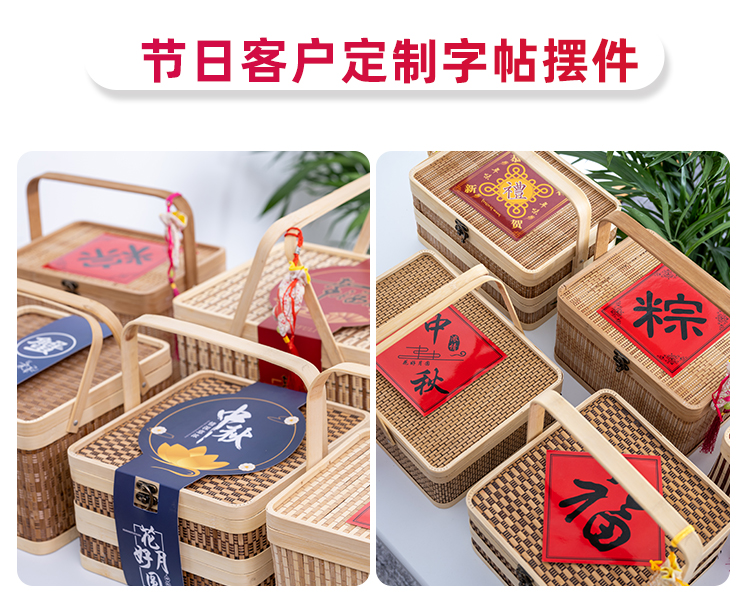 더블 레이어 대나무 바구니 뚜껑 가구 휴대용 바구니 신년 상품 드래곤 보트 축제 중추절 음식 타오 치 (Tao Qi) 와 대나무 짠 선물 보관 바구니스토어 가기