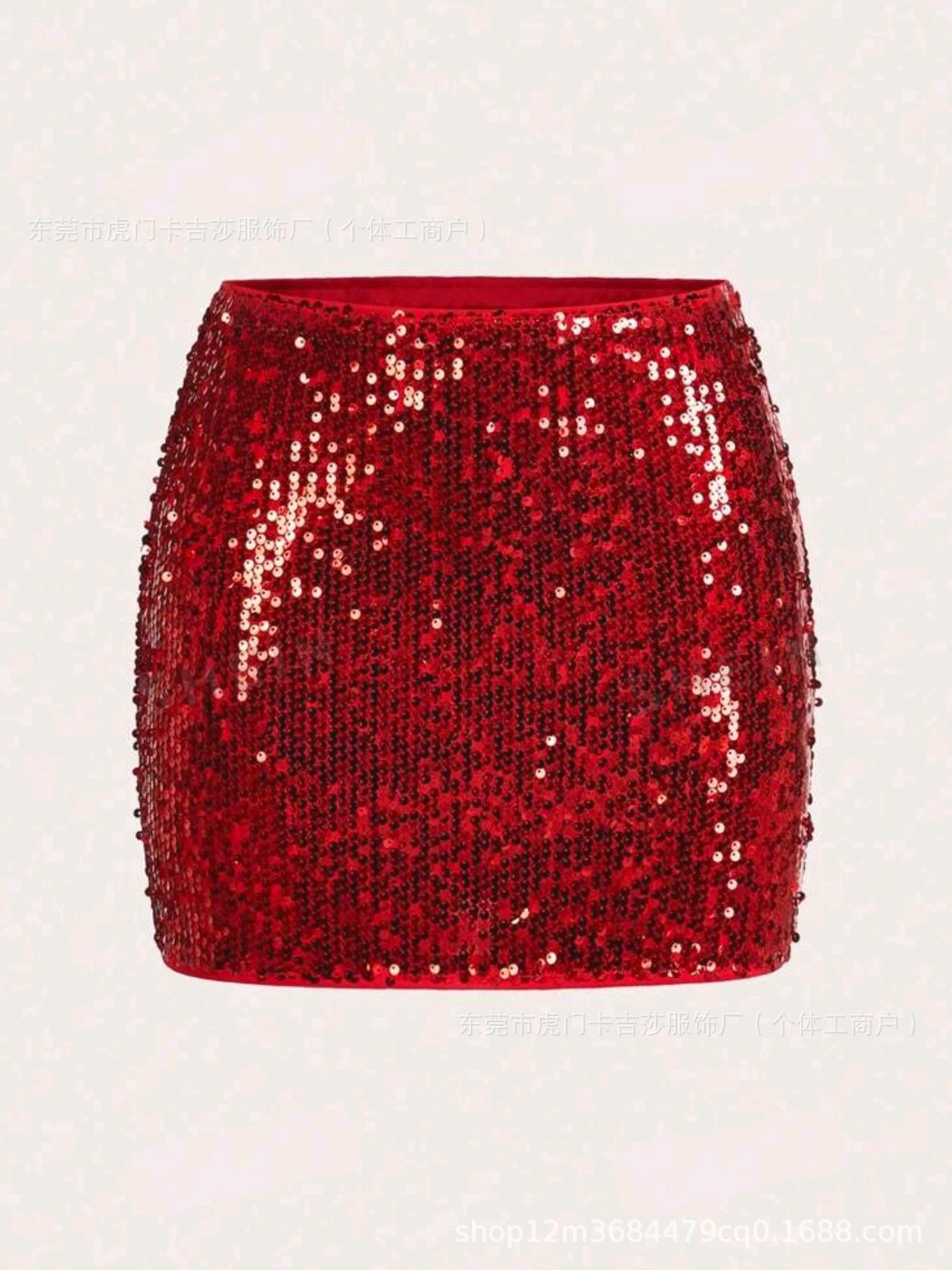 유럽과 미국의 여성 의류 크로스보더 아마존 새로운 반짝이는 스팽글 섹시한 핫 소녀 스커트 짧은 스커트 연회 스커트 여성용 힙 스커트